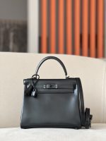 Includes lock, two keys, clochette, clochette dust bag, ribbon, care booklet, raincoat, felt protector, dust bag, and box .