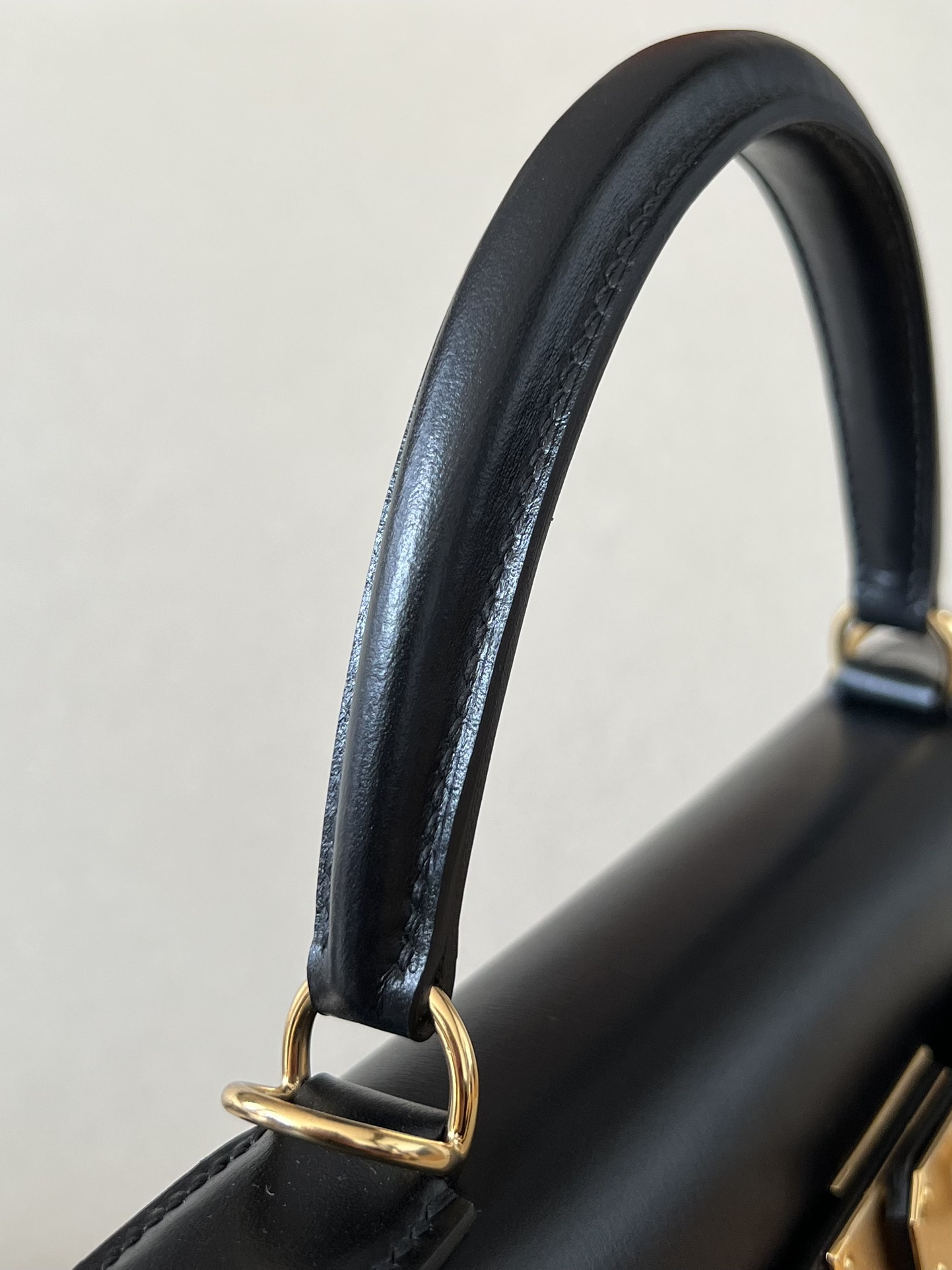 Includes lock, two keys, clochette, clochette dust bag, ribbon, care booklet, raincoat, felt protector, dust bag, and box .