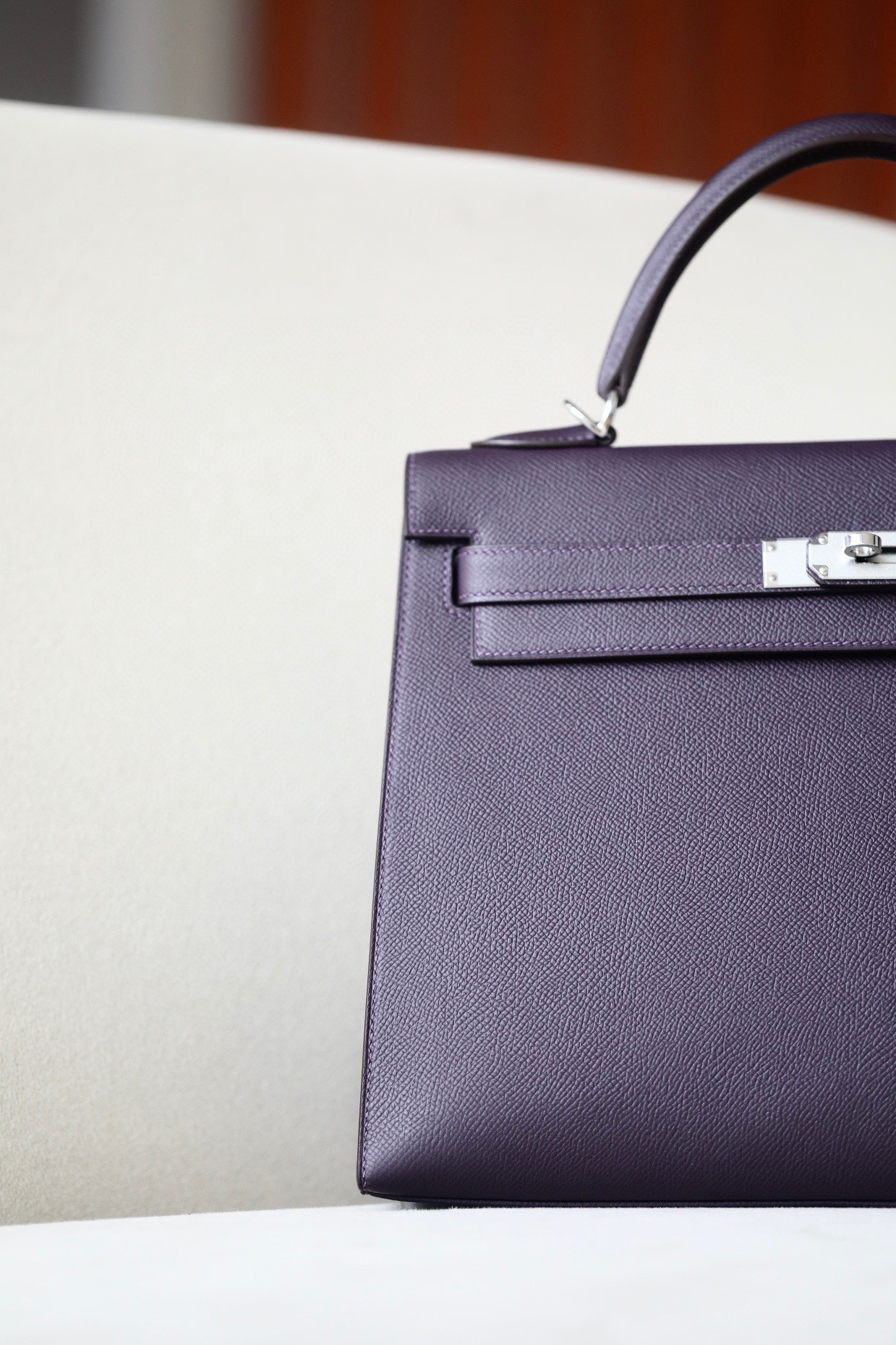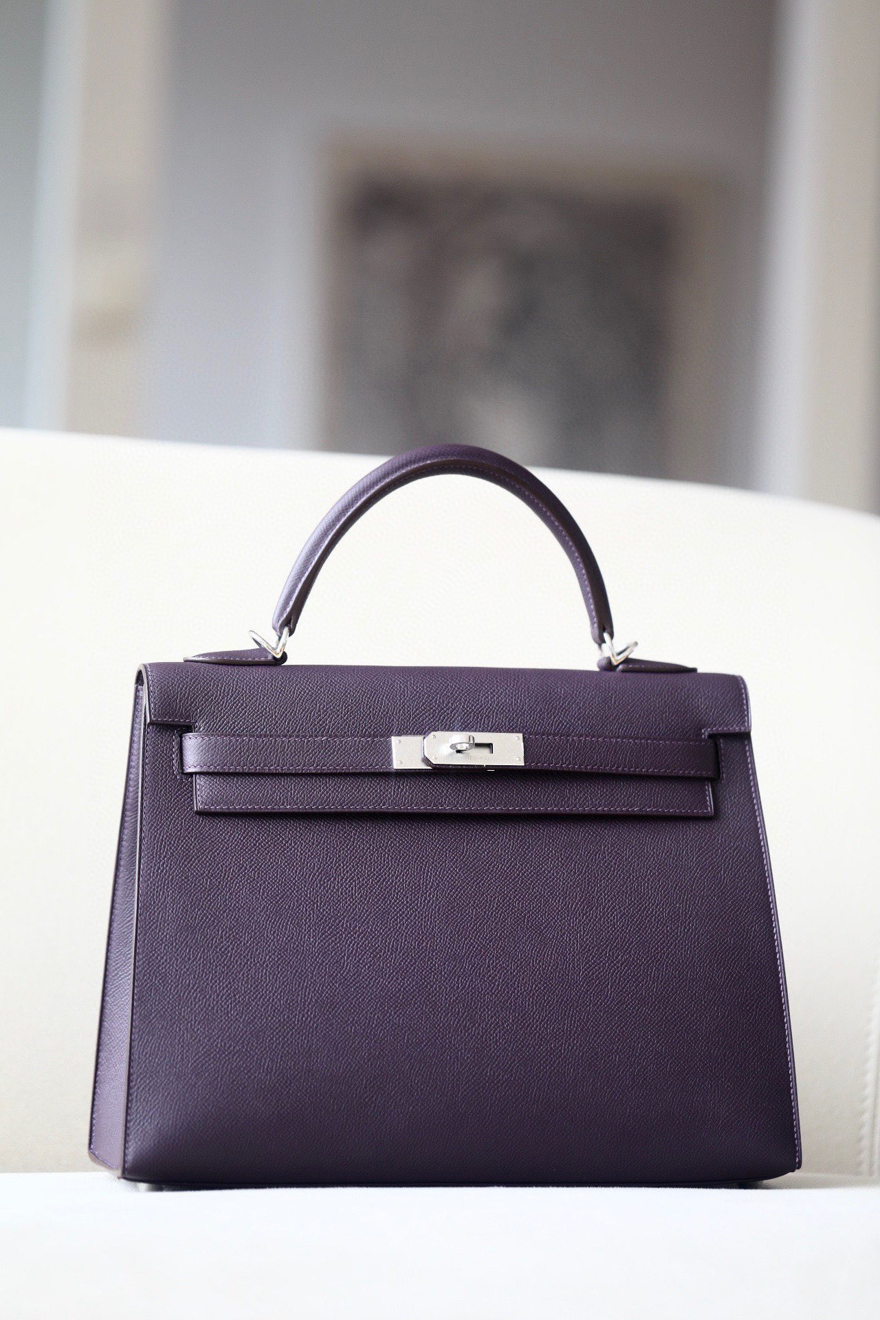 Includes lock, two keys, clochette, clochette dust bag, ribbon, care booklet, raincoat, felt protector, dust bag, and box