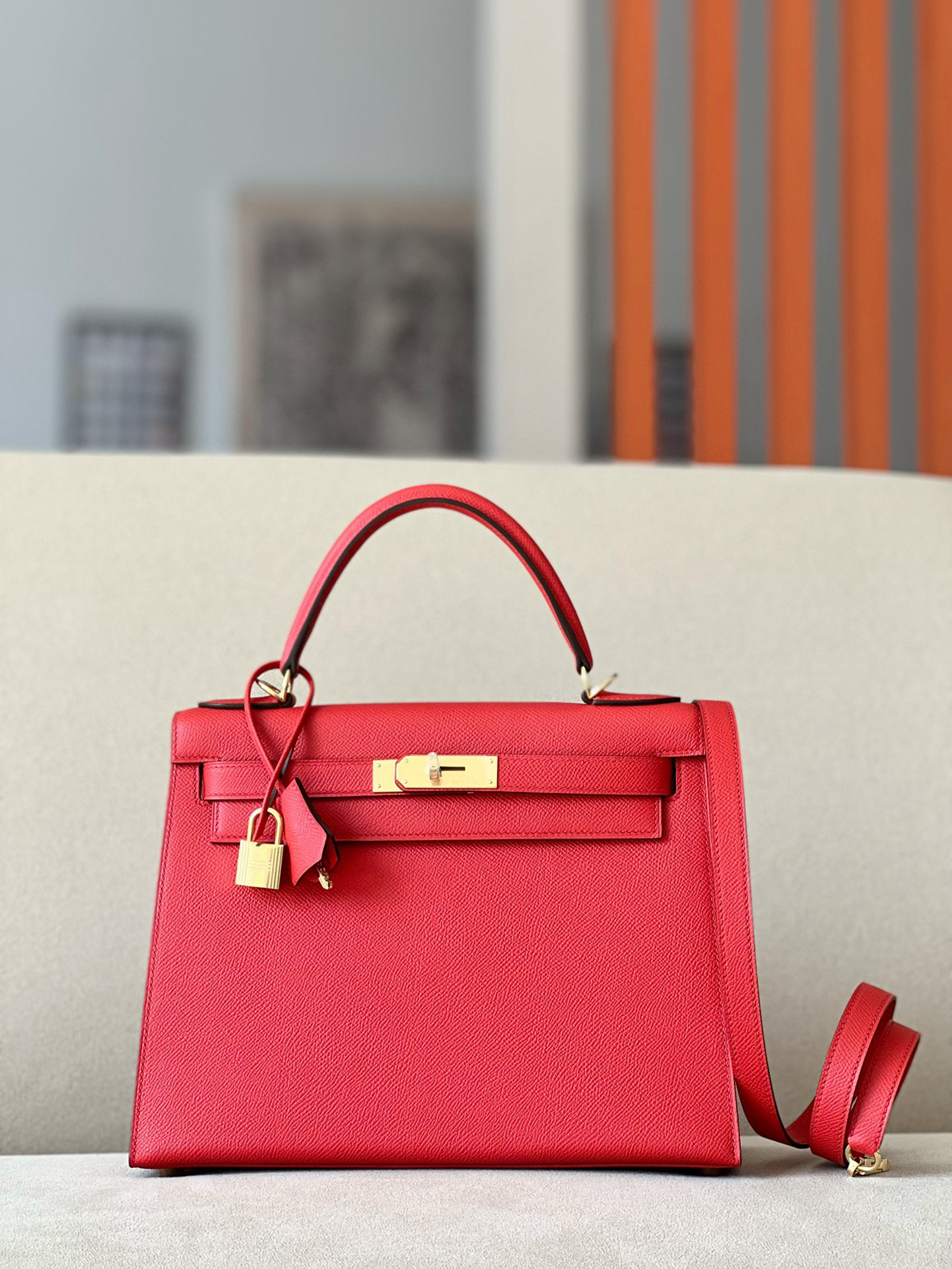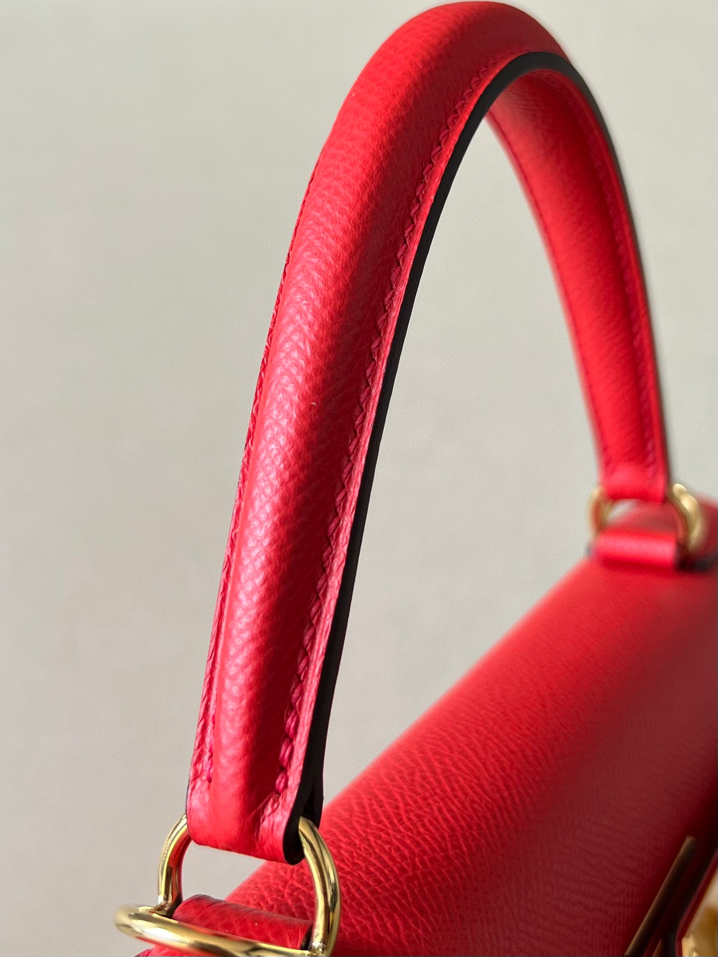 Includes lock, two keys, clochette, clochette dust bag, ribbon, care booklet, raincoat, felt protector, dust bag, and box