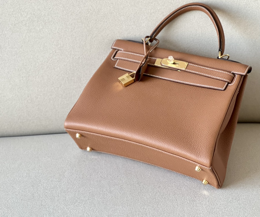 Includes lock, two keys, clochette, clochette dust bag, ribbon, care booklet, raincoat, felt protector, dust bag, and box .