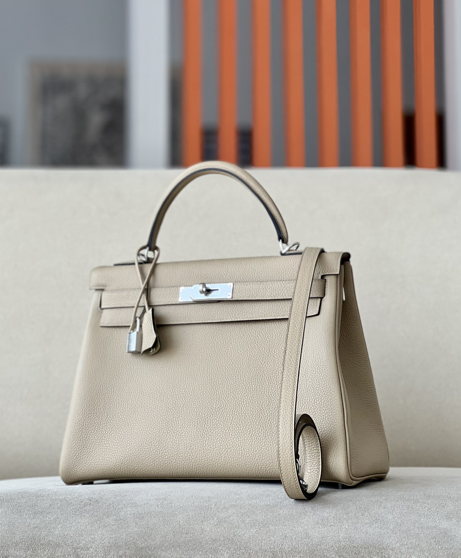 Includes lock, two keys, clochette, clochette dust bag, ribbon, care booklet, raincoat, felt protector, dust bag, and box .