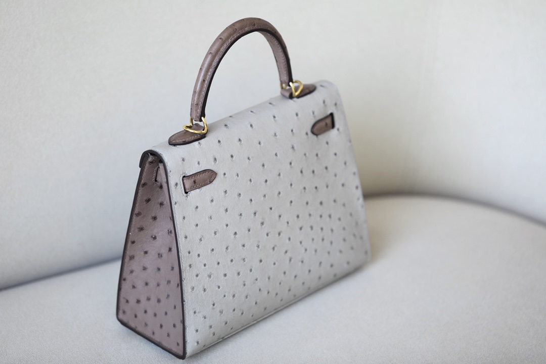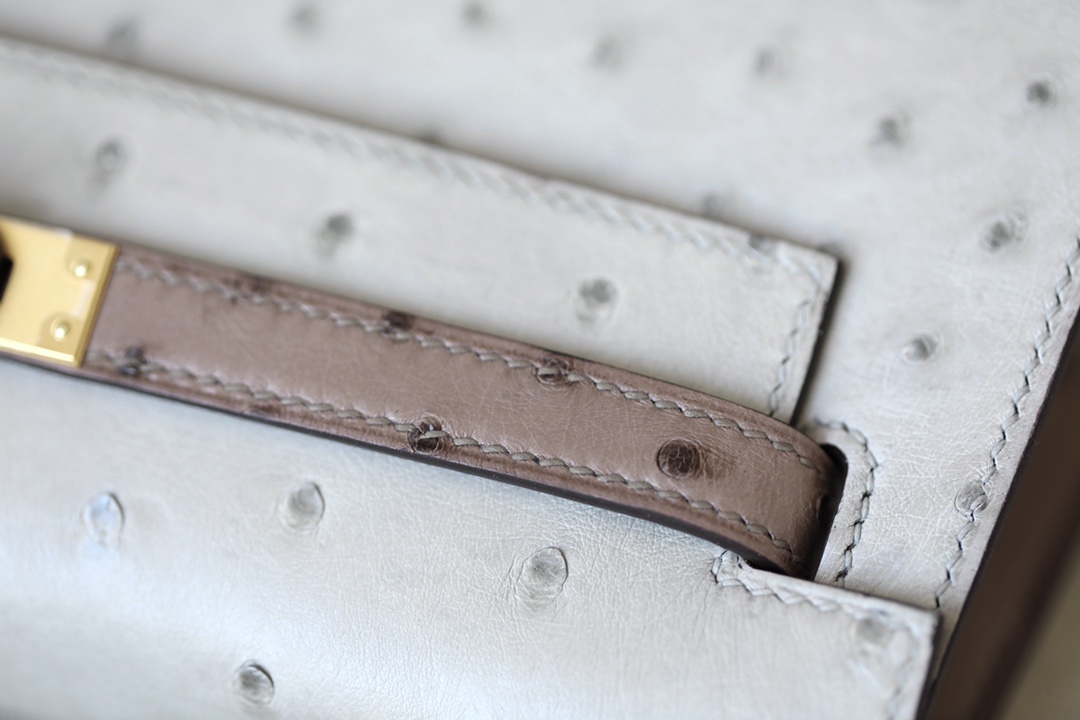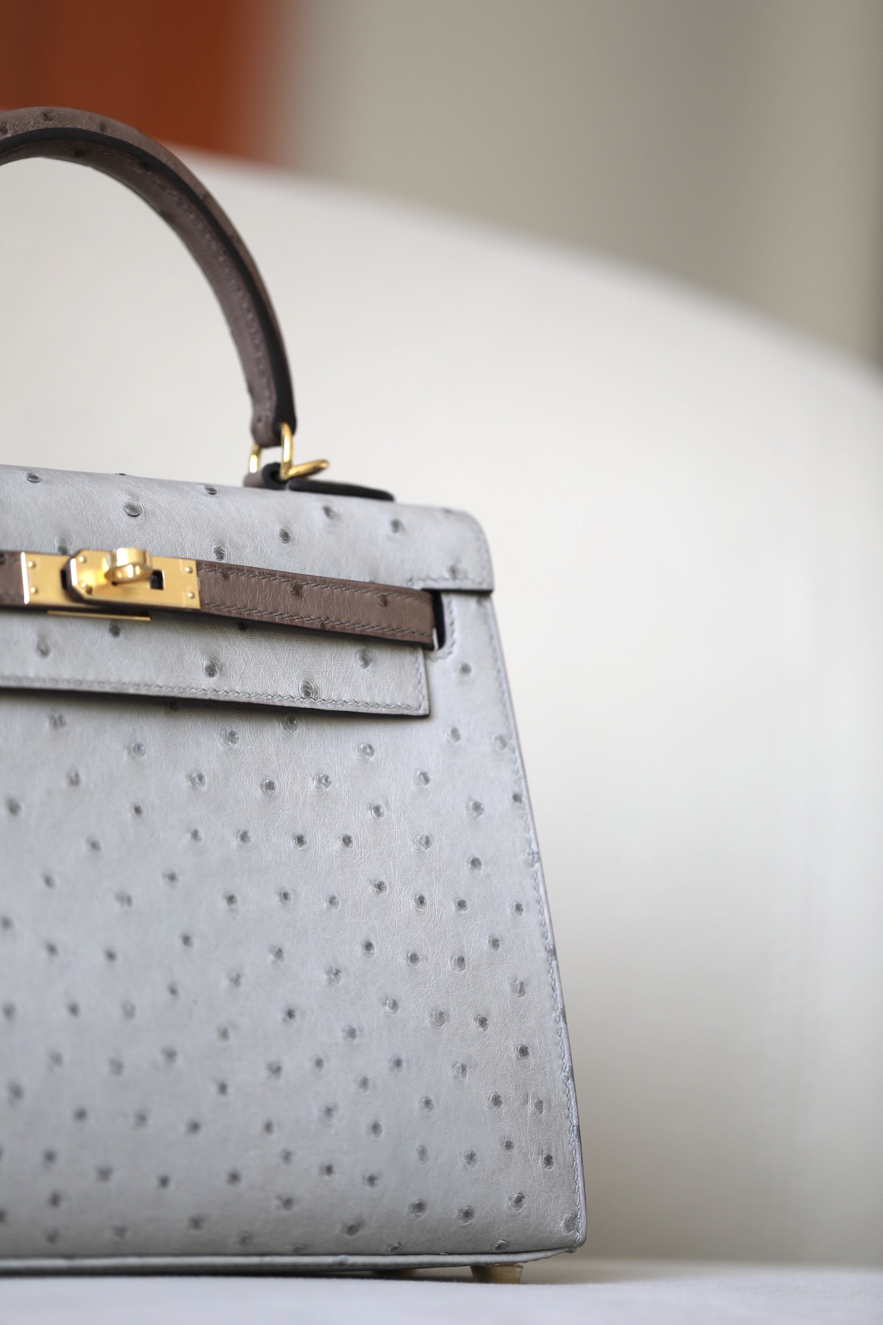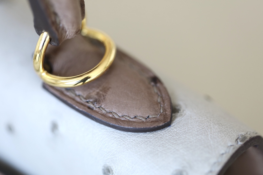 Kelly HSS 25 Ostrich Etoupe(18) and Gris Perle(80) Gold Hardware