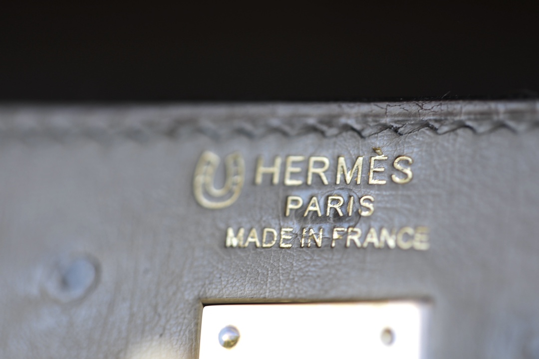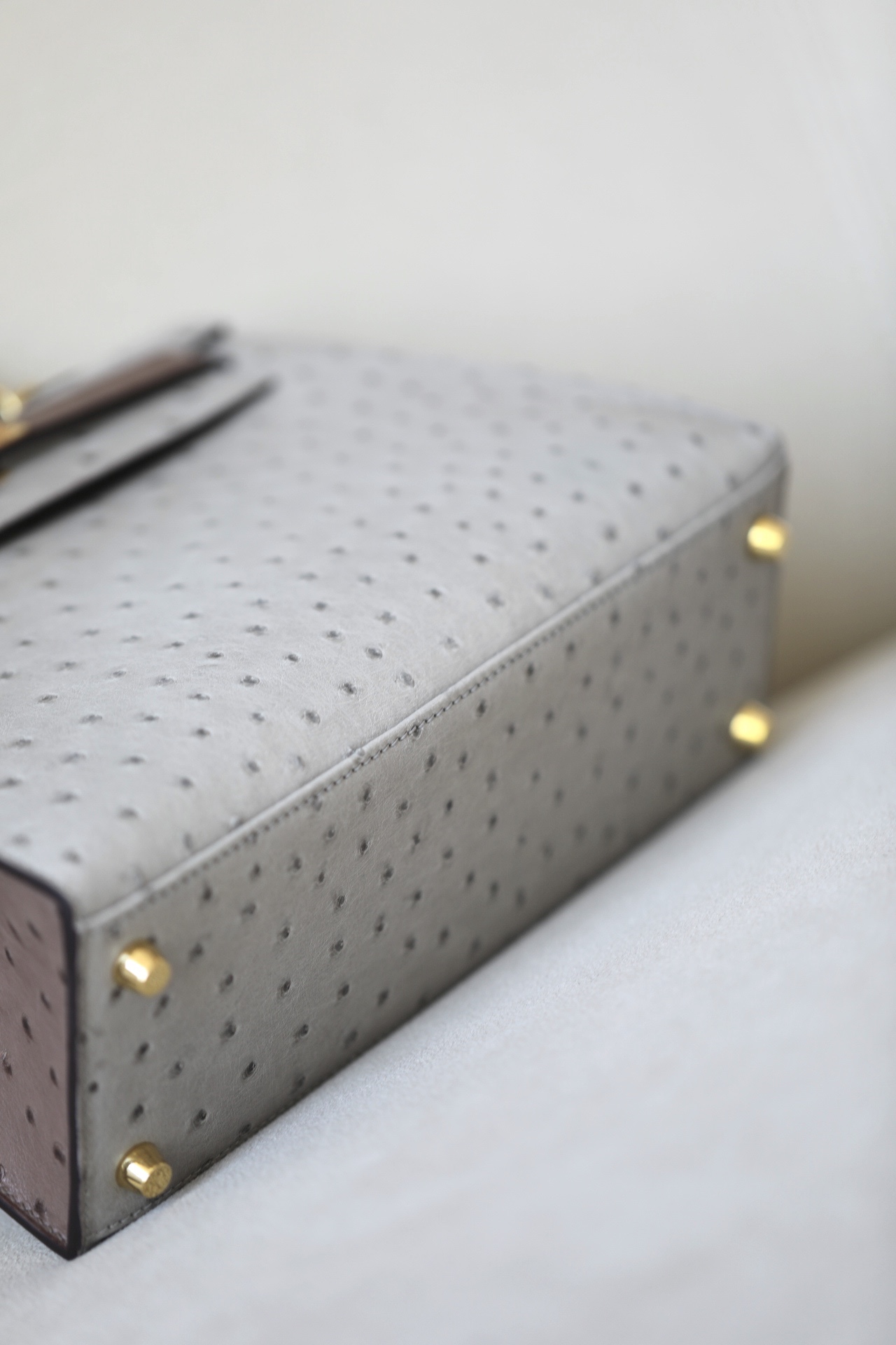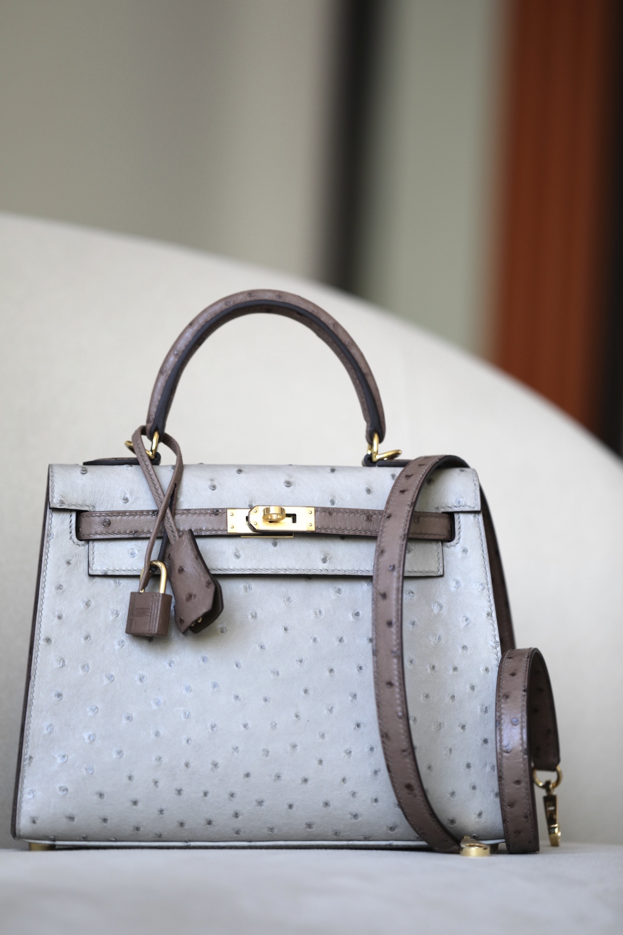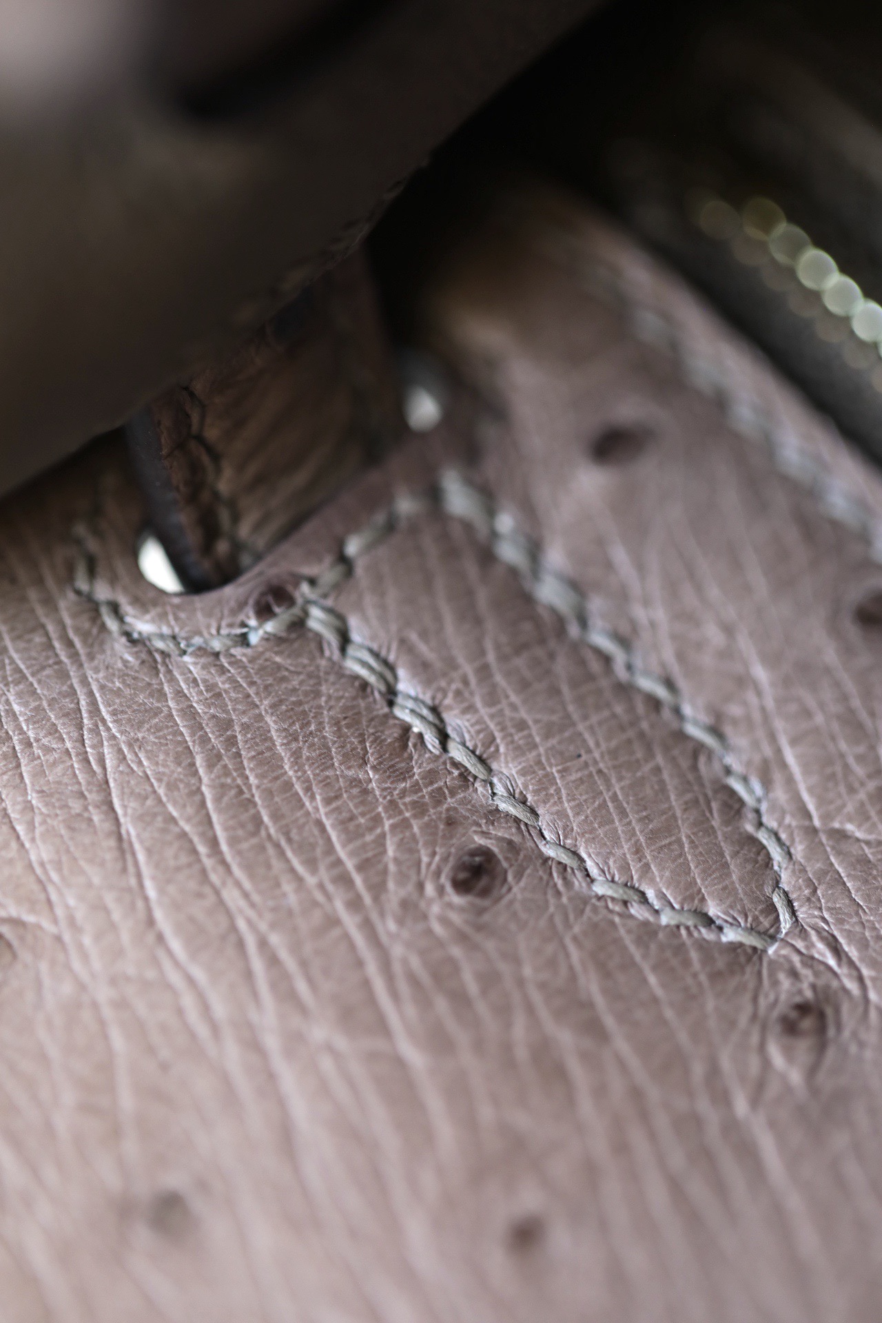 Kelly HSS 25 Ostrich Etoupe(18) and Gris Perle(80) Gold Hardware