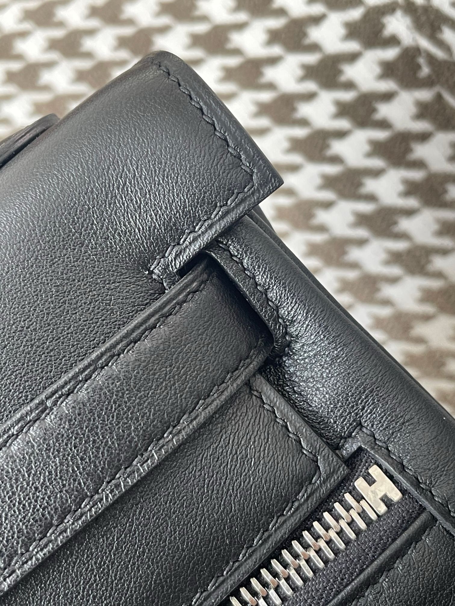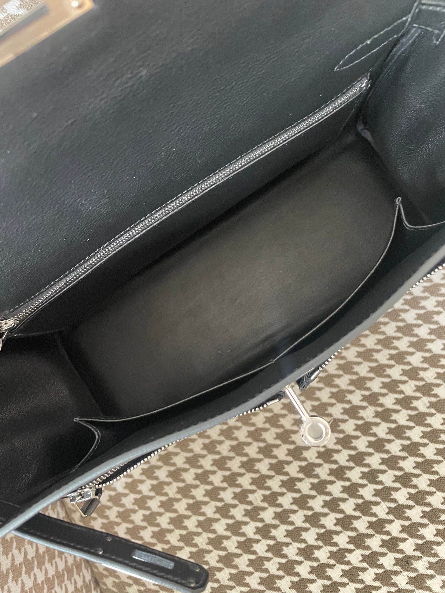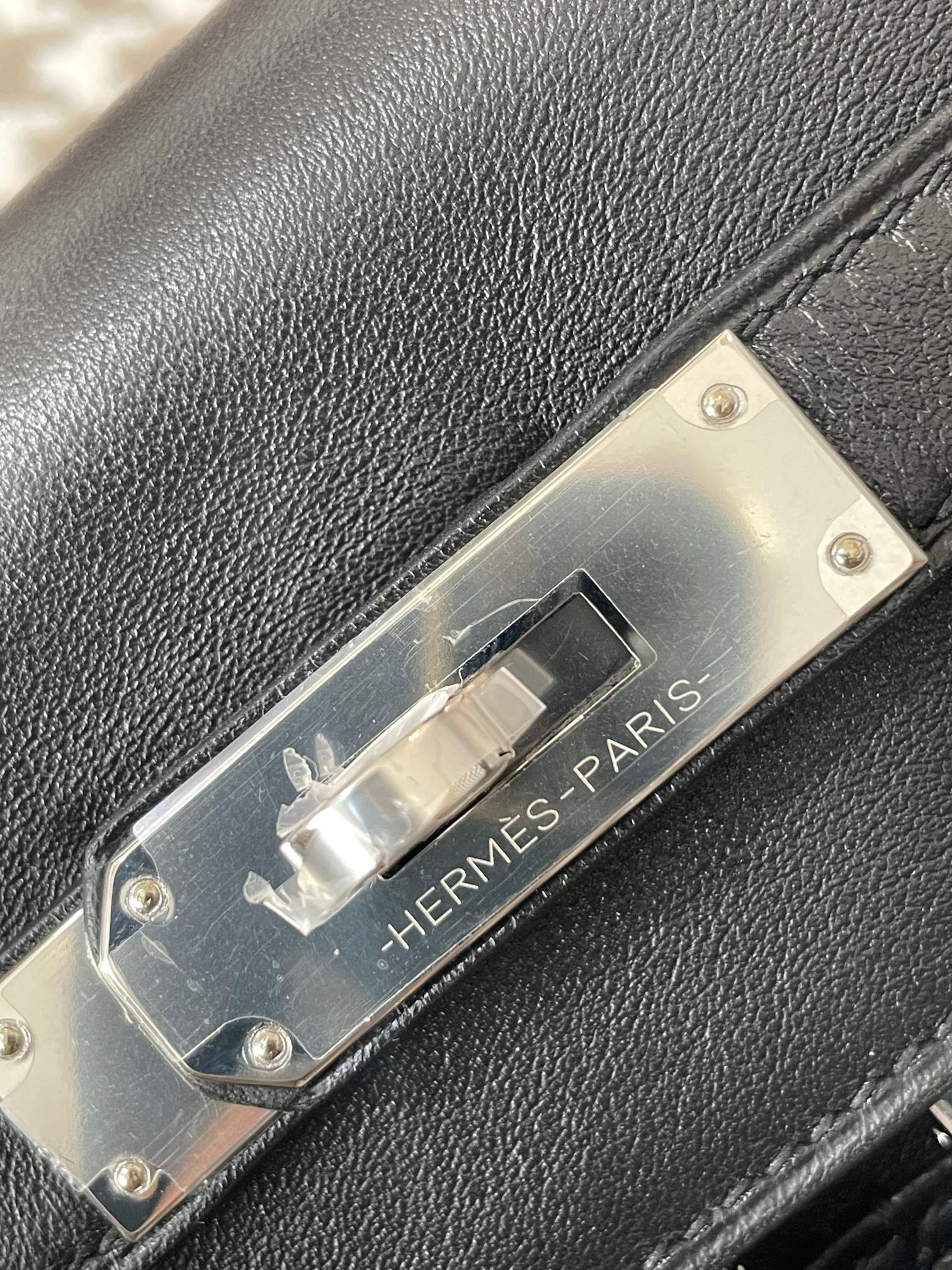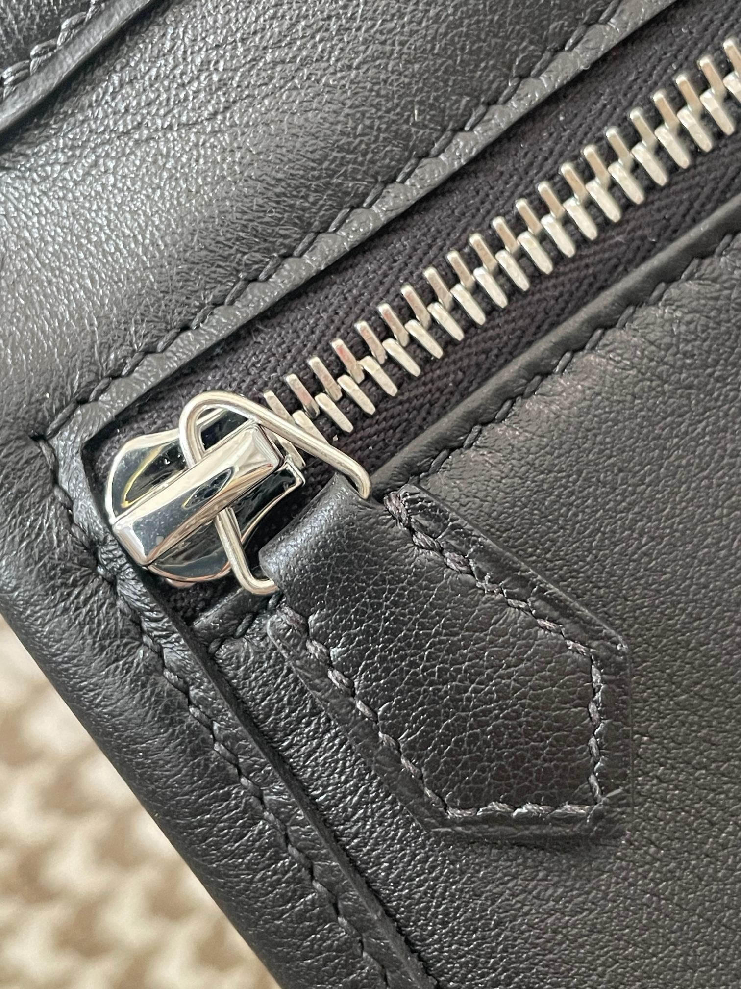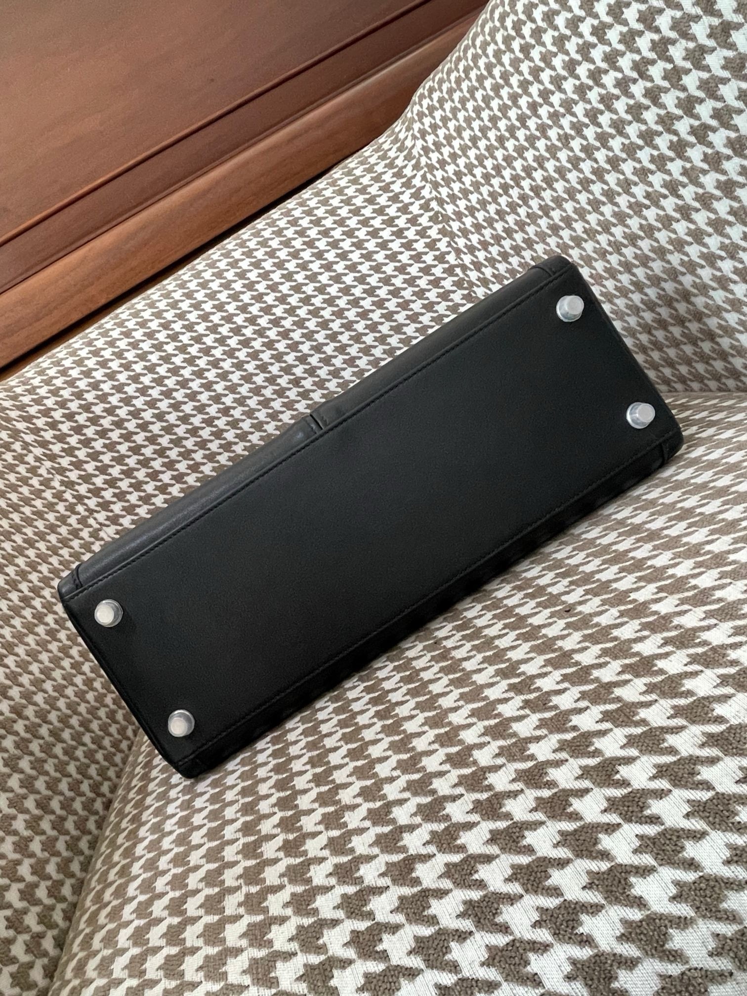 Includes lock, two keys, clochette, clochette dust bag, ribbon, care booklet, raincoat, felt protector, dust bag, and box