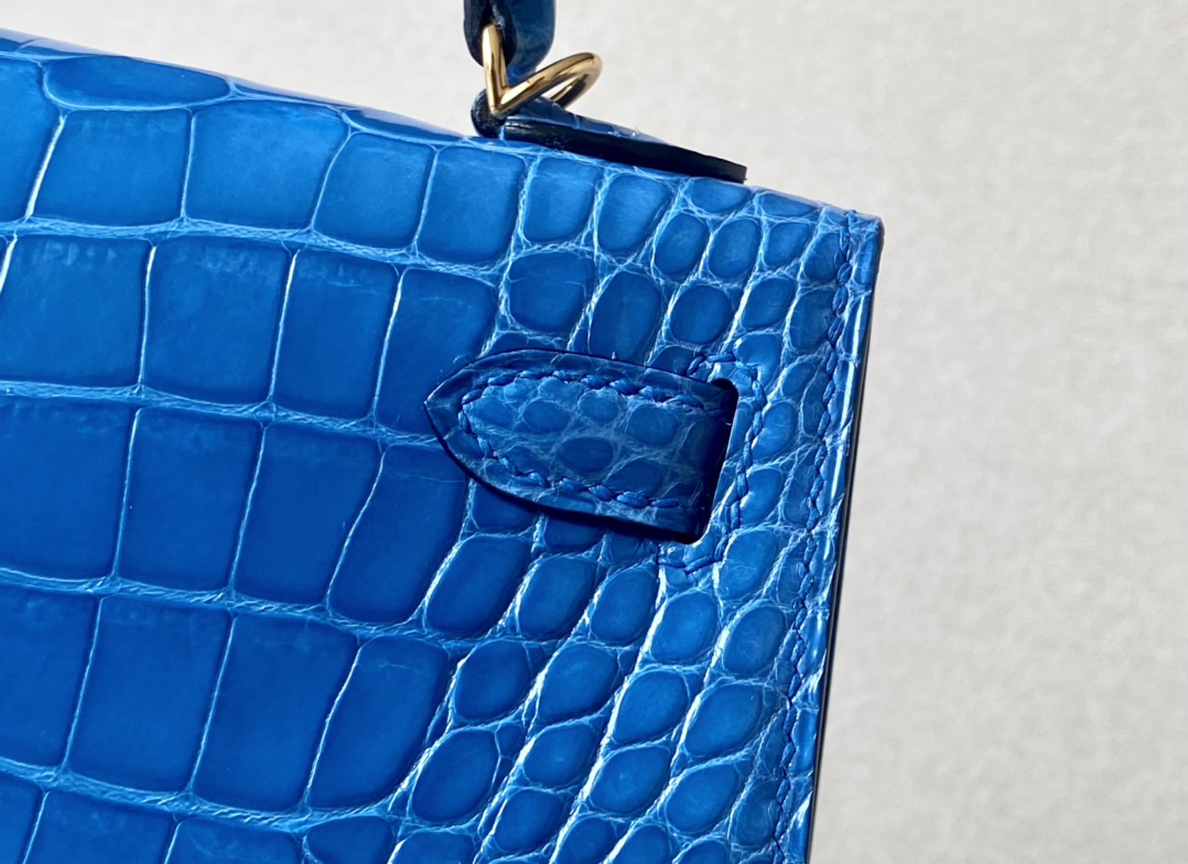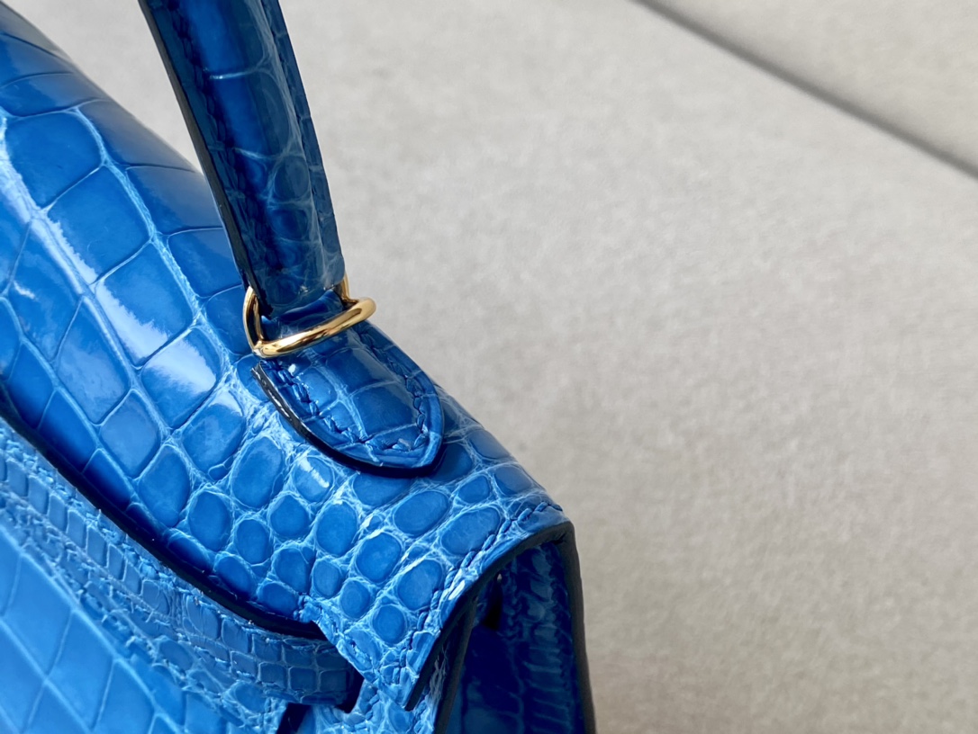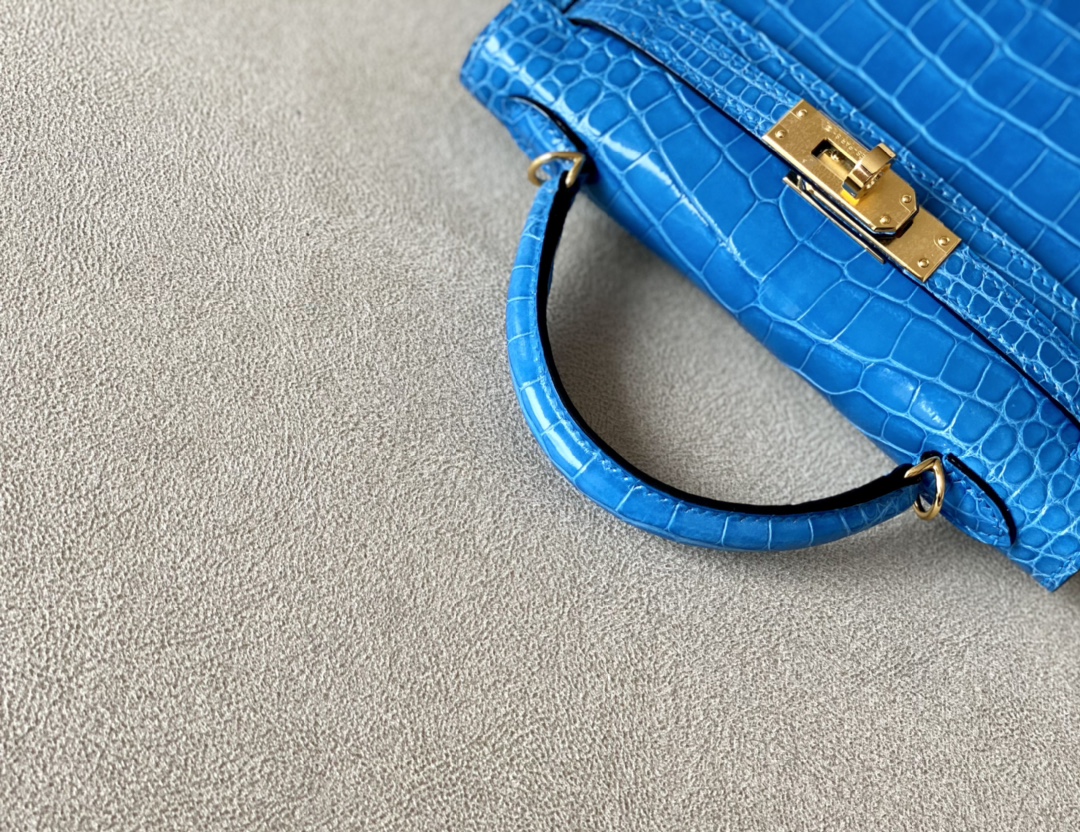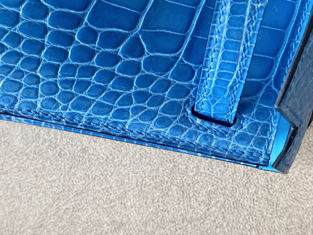 Kelly Mini Alligator Bleu Izmir (7W) Gold Hardware
