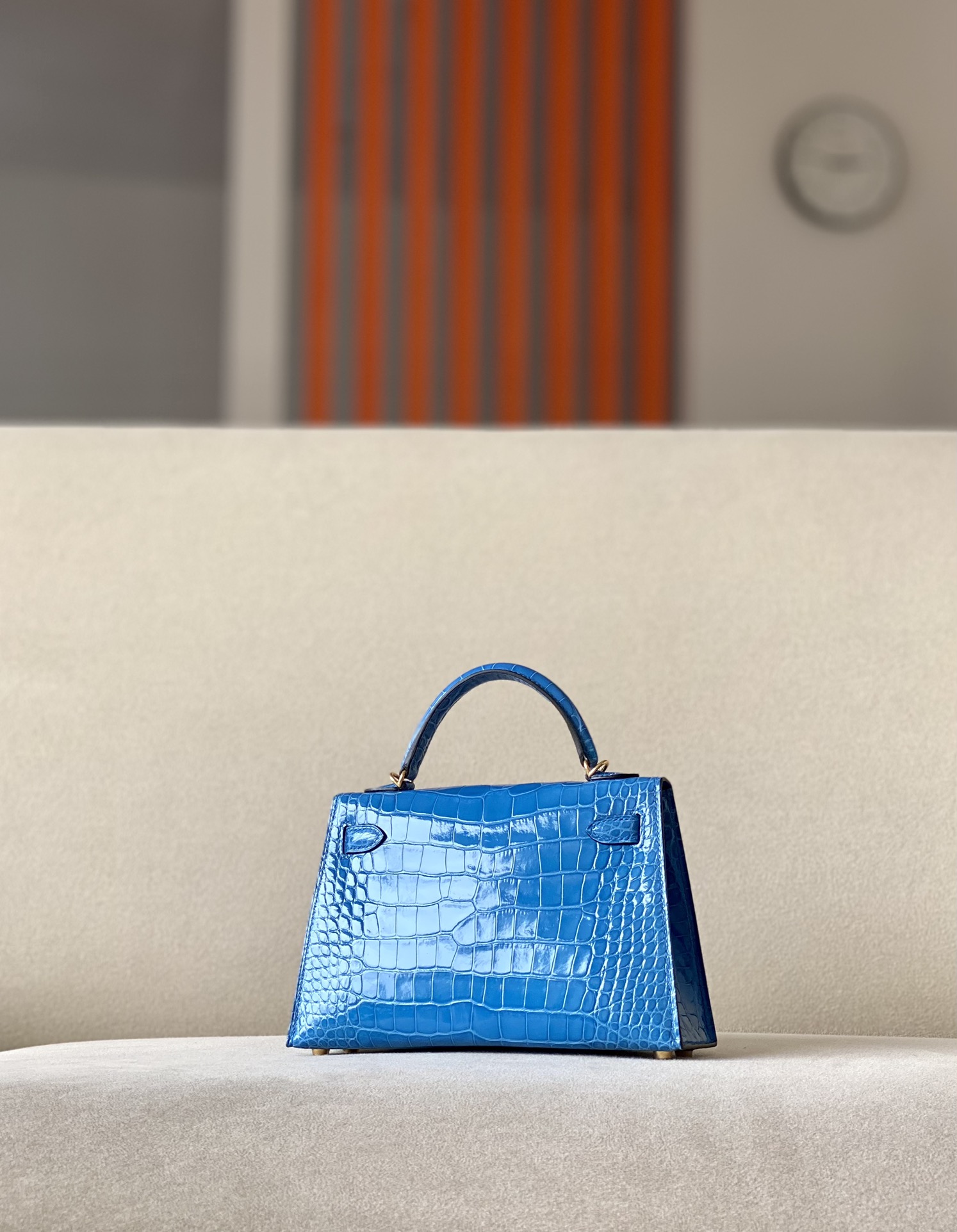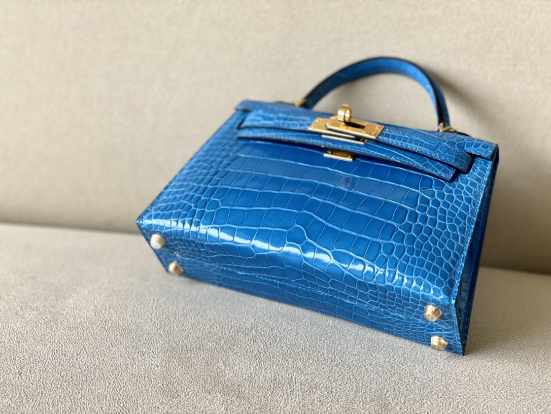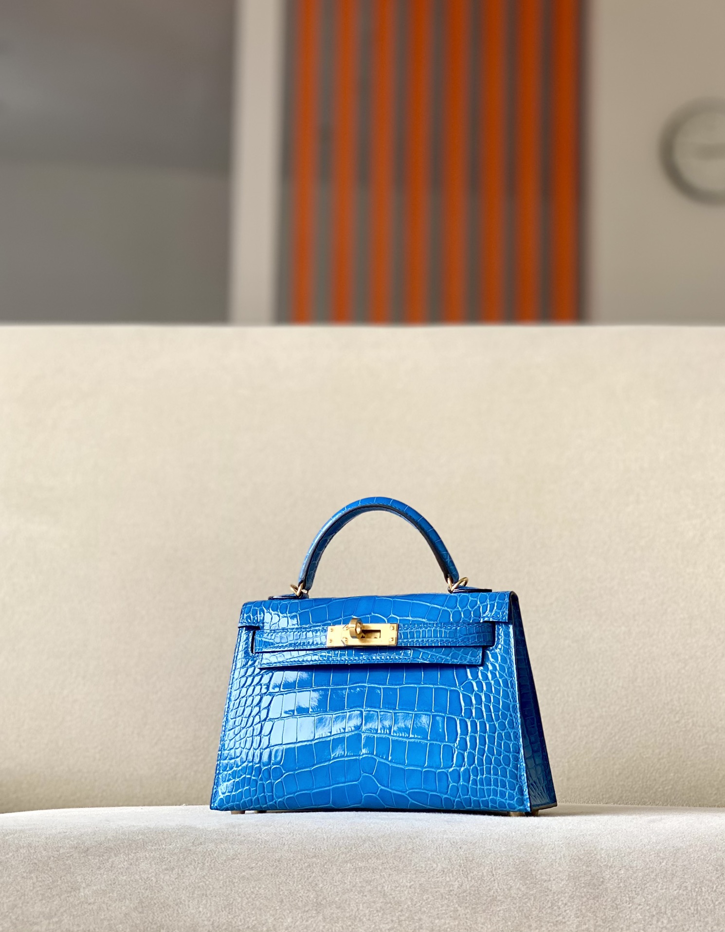 Kelly Mini Alligator Bleu Izmir (7W) Gold Hardware