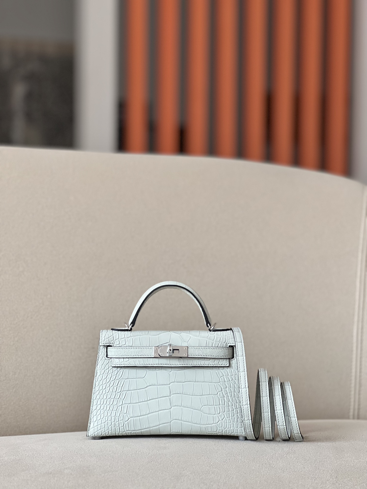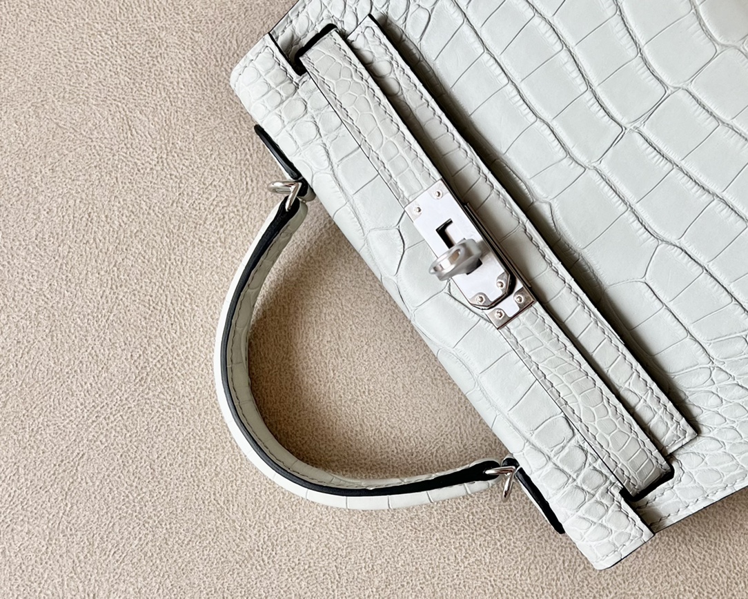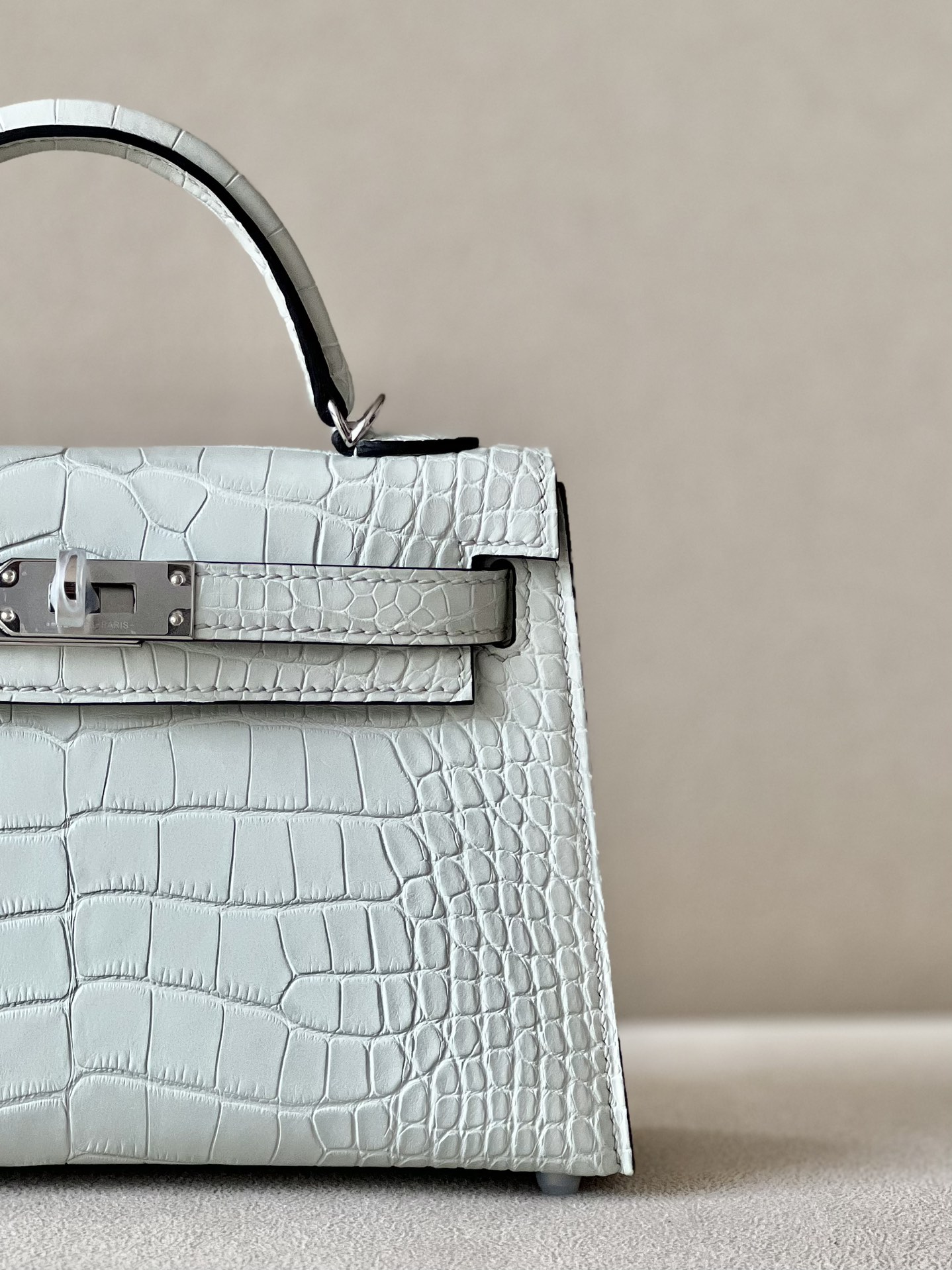 Kelly Mini Alligator Gris Ciment (OV) Palladium Hardware