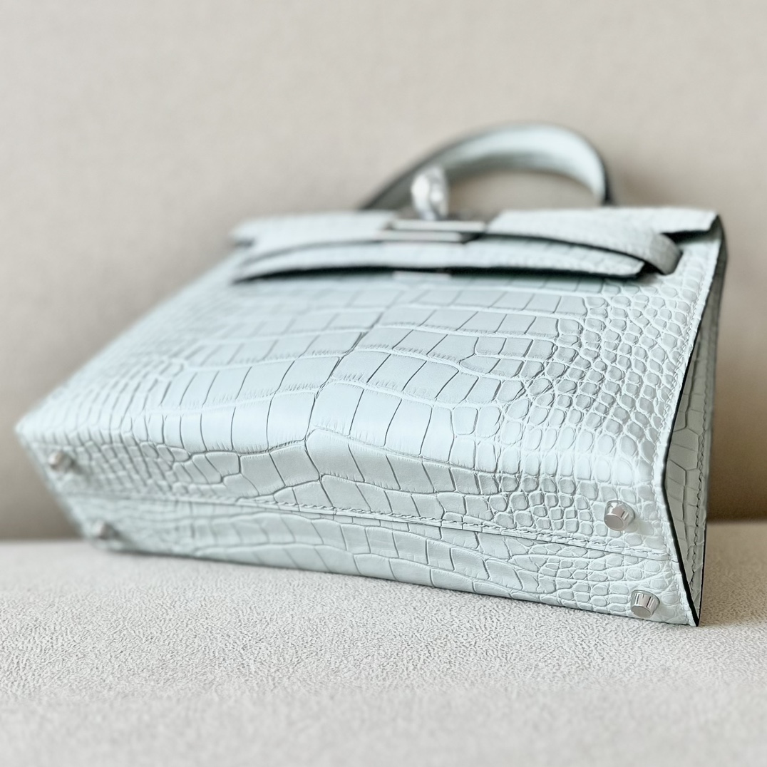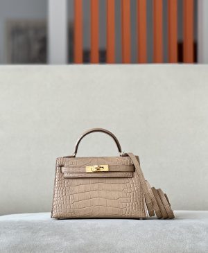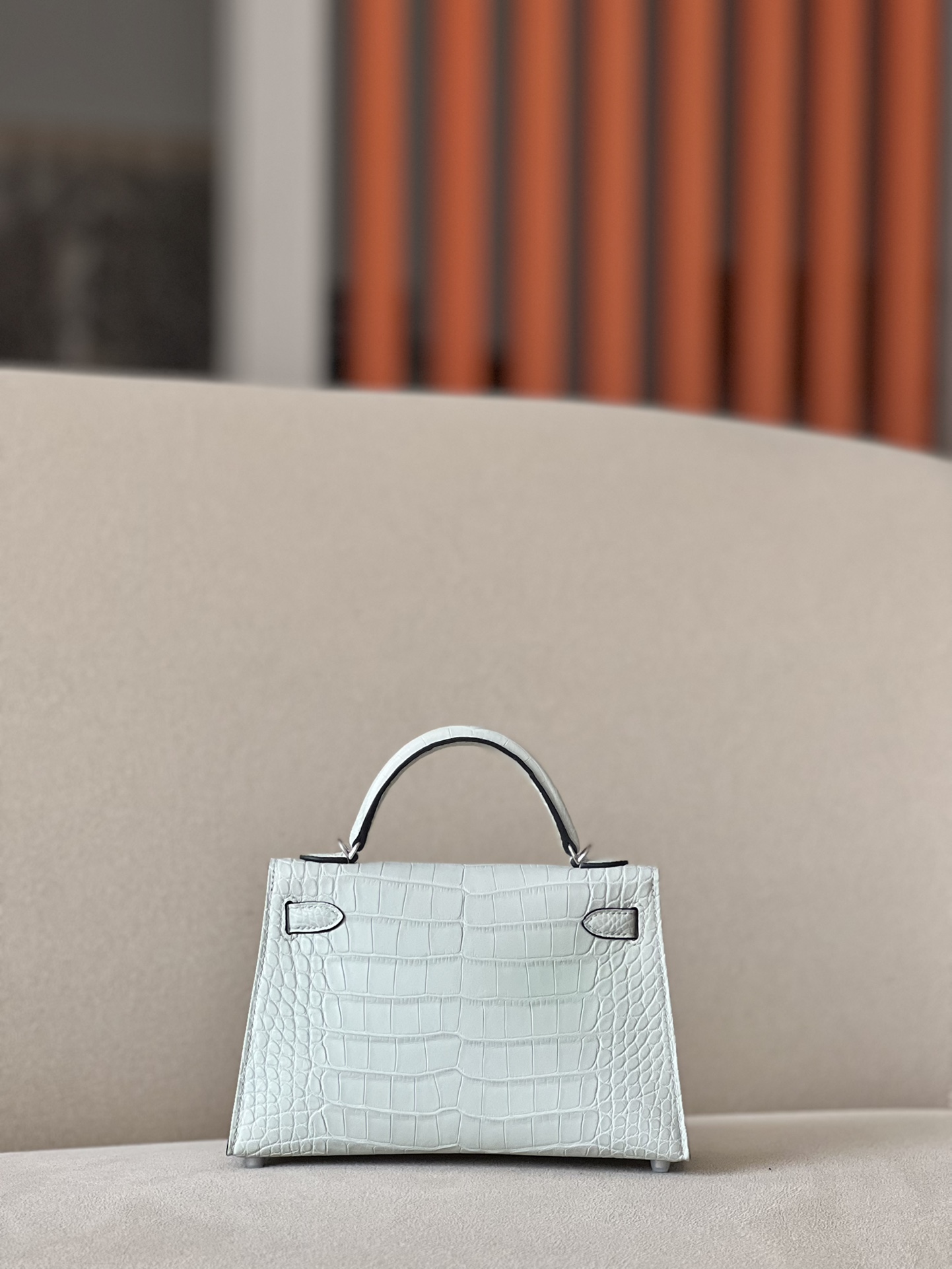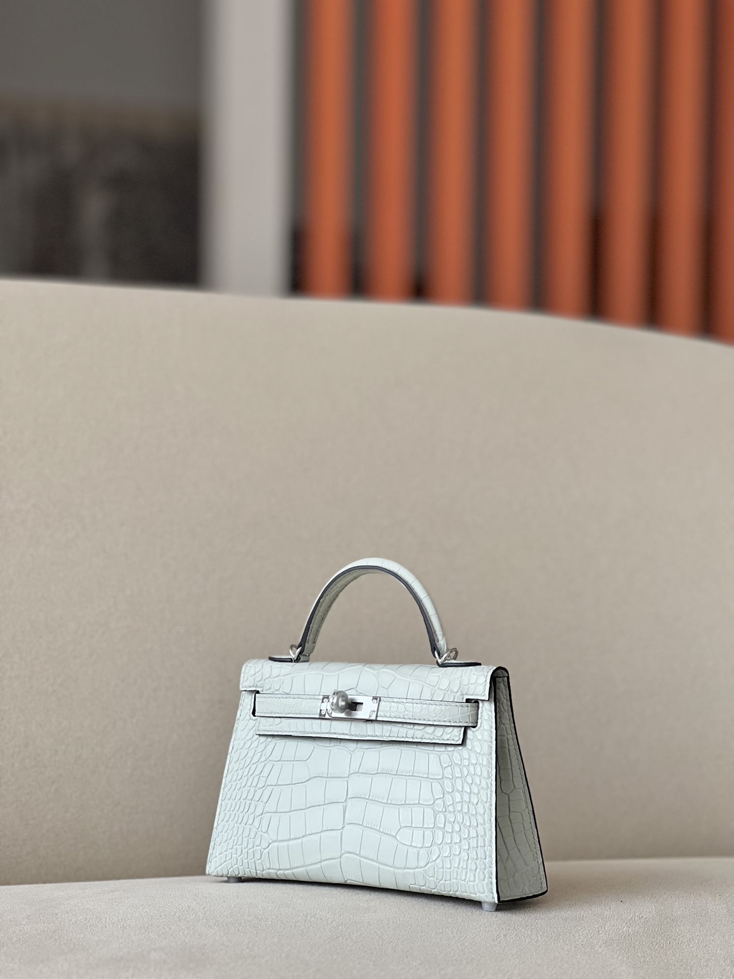 Kelly Mini Alligator Gris Ciment (OV) Palladium Hardware