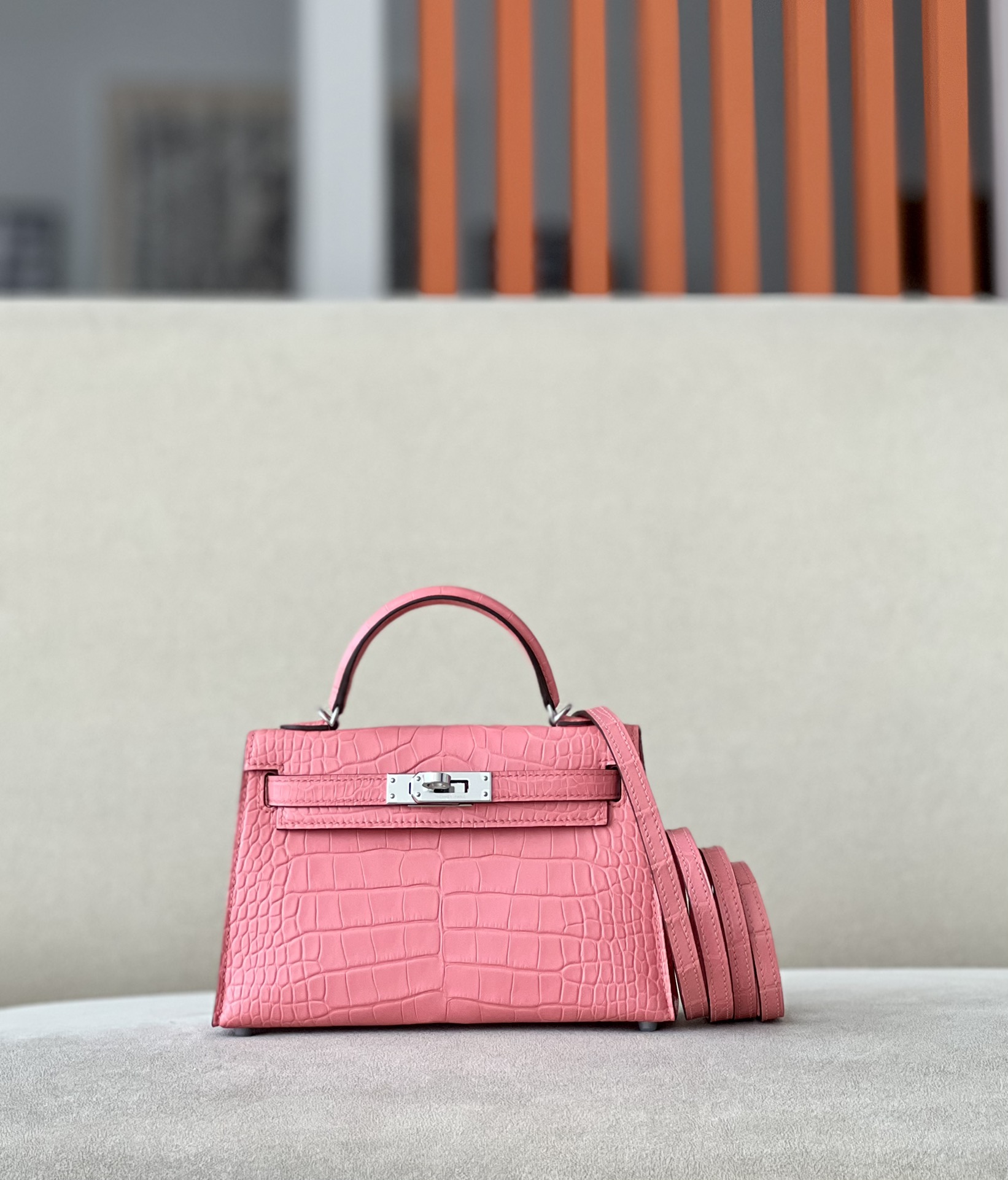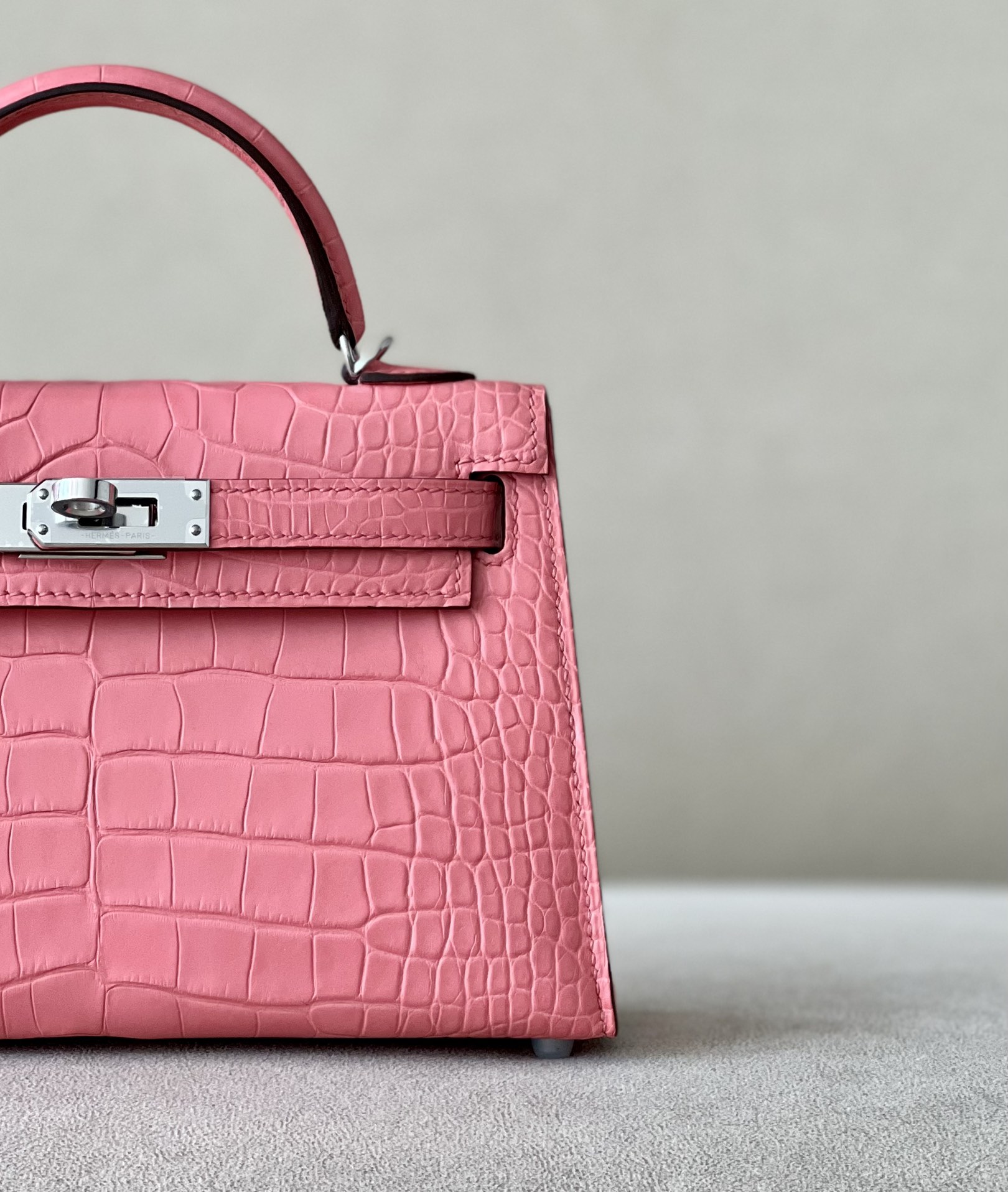 Kelly Mini Alligator Rose Confetti (1Q) Palladium Hardware