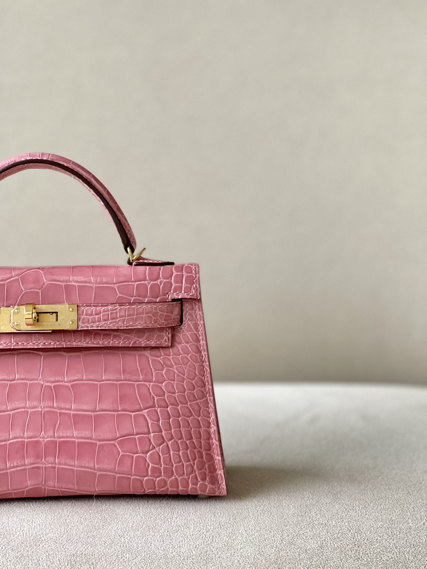 Kelly Mini Alligator Rose Sakura (3Q) Palladium Hardware