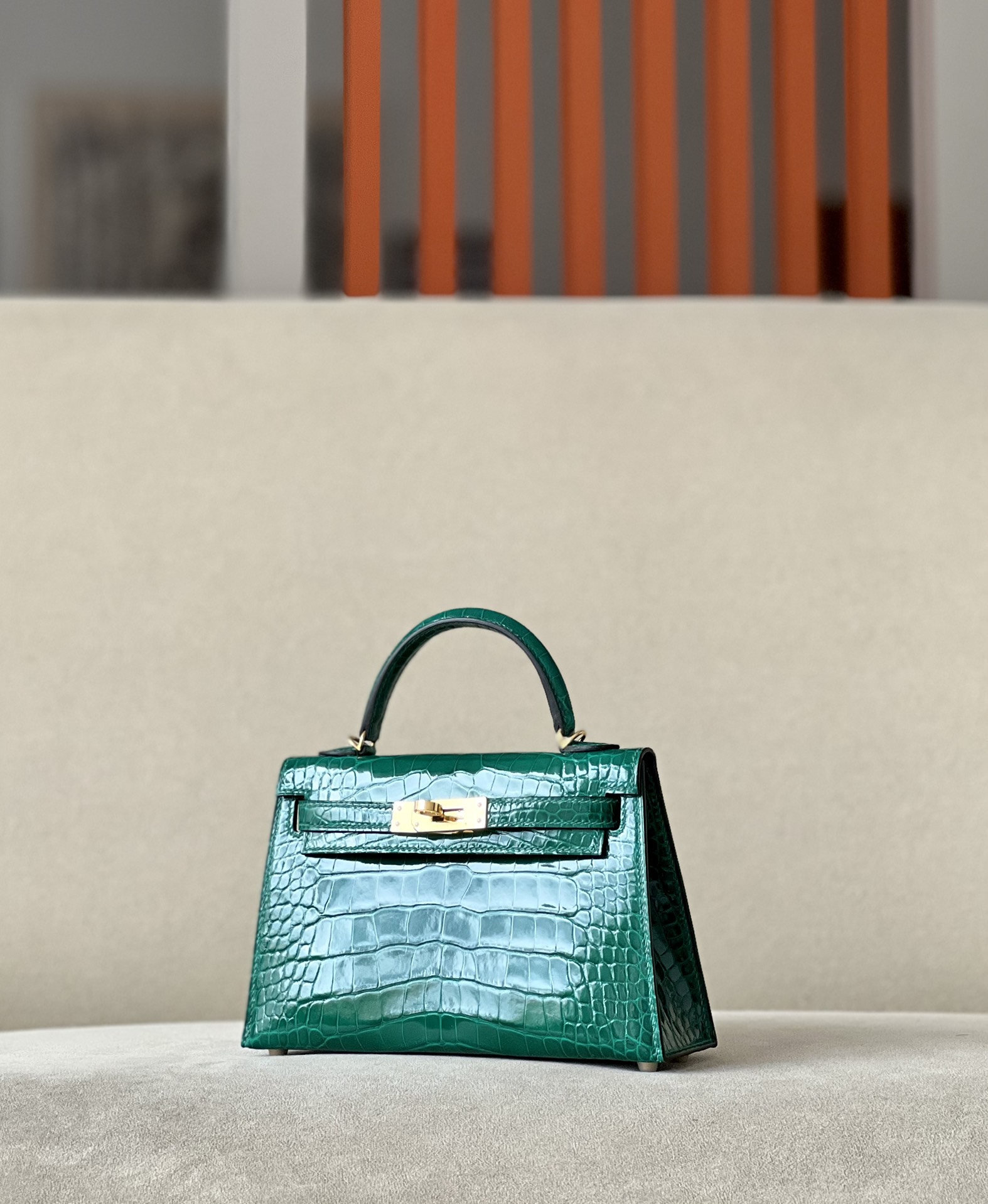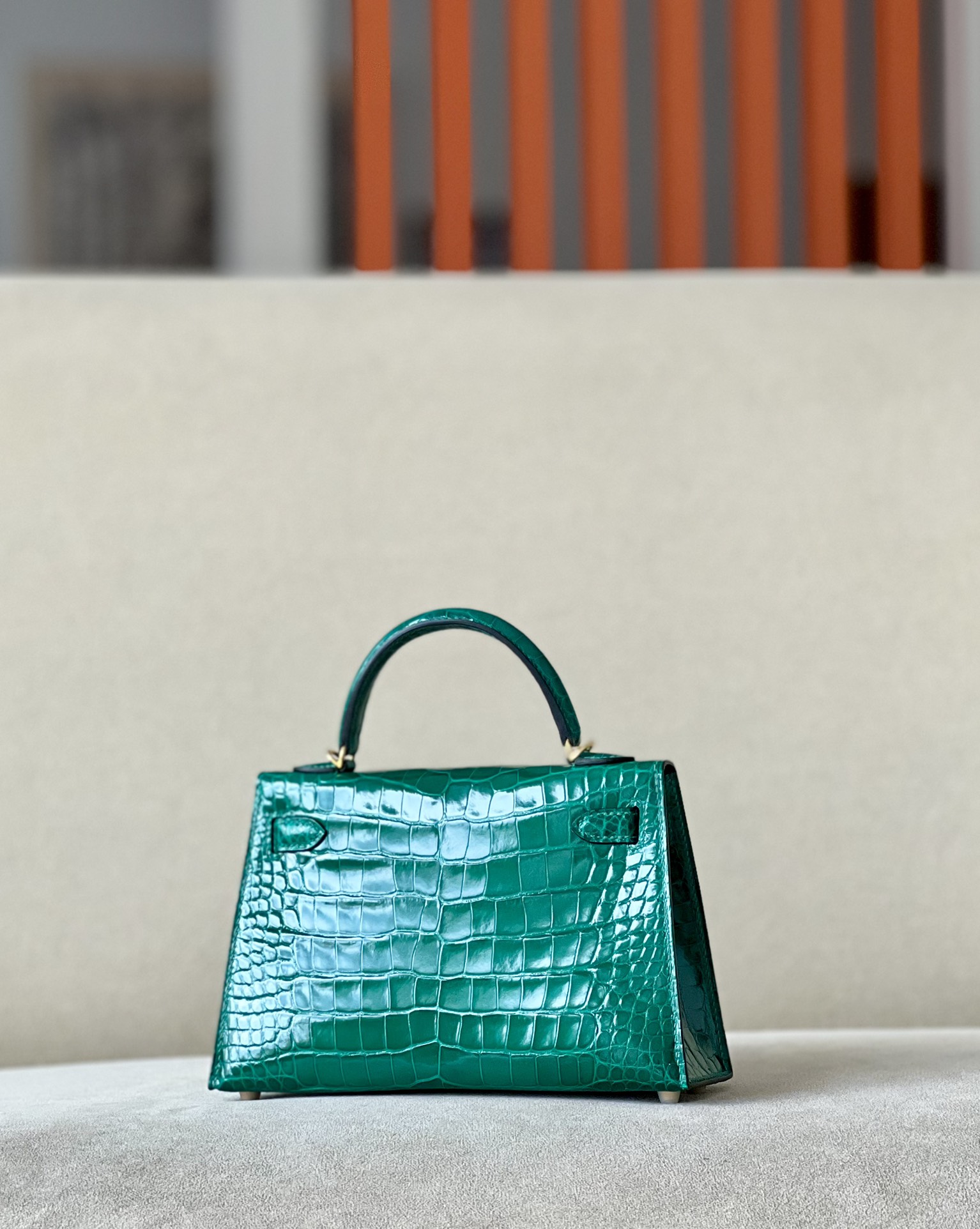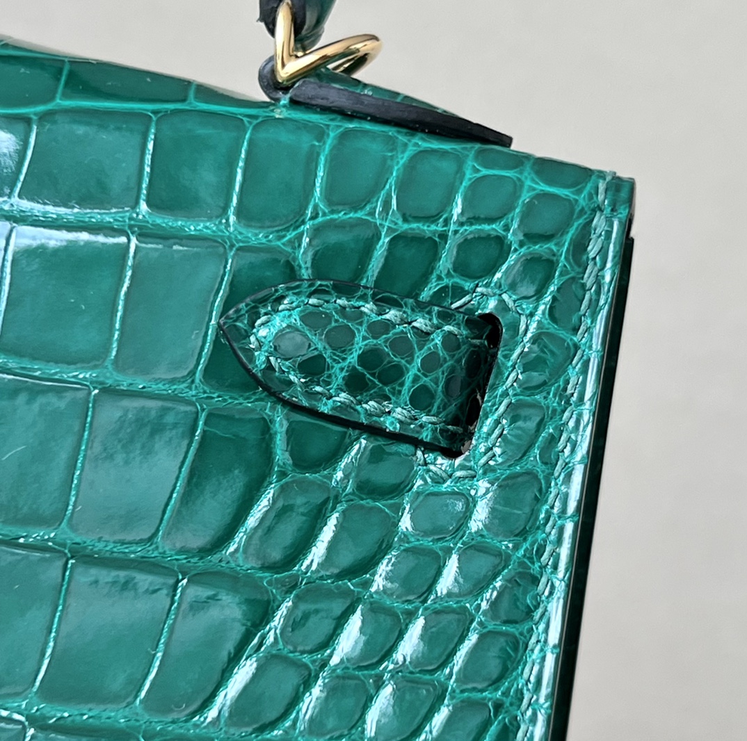 Kelly Mini Alligator Vert Emeraude (6Q) Gold Hardware
