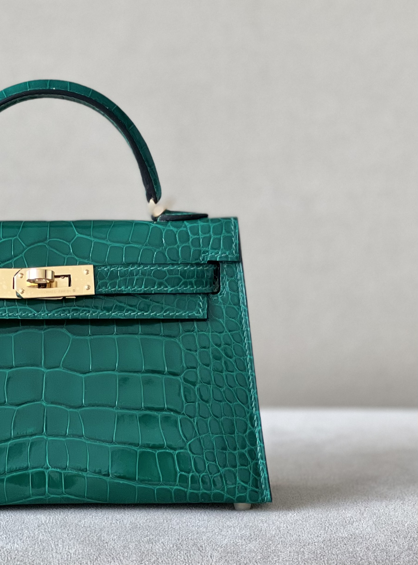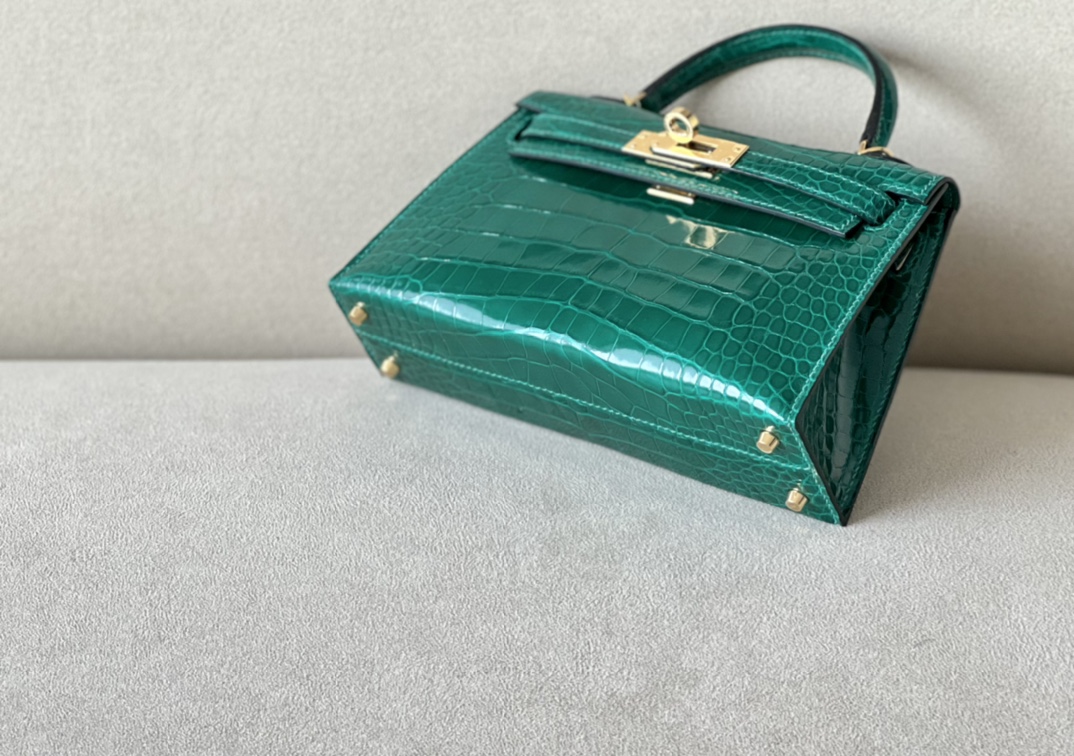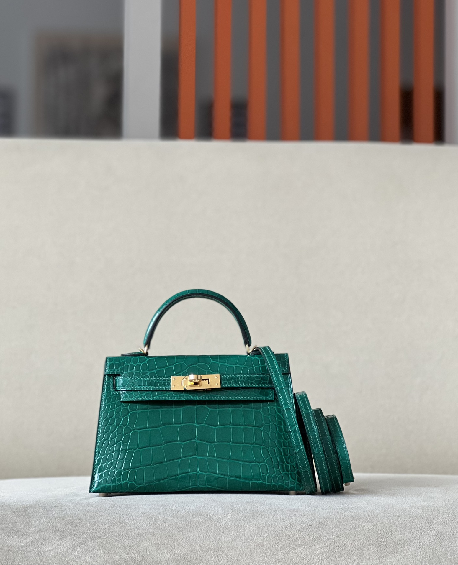 Kelly Mini Alligator Vert Emeraude (6Q) Gold Hardware