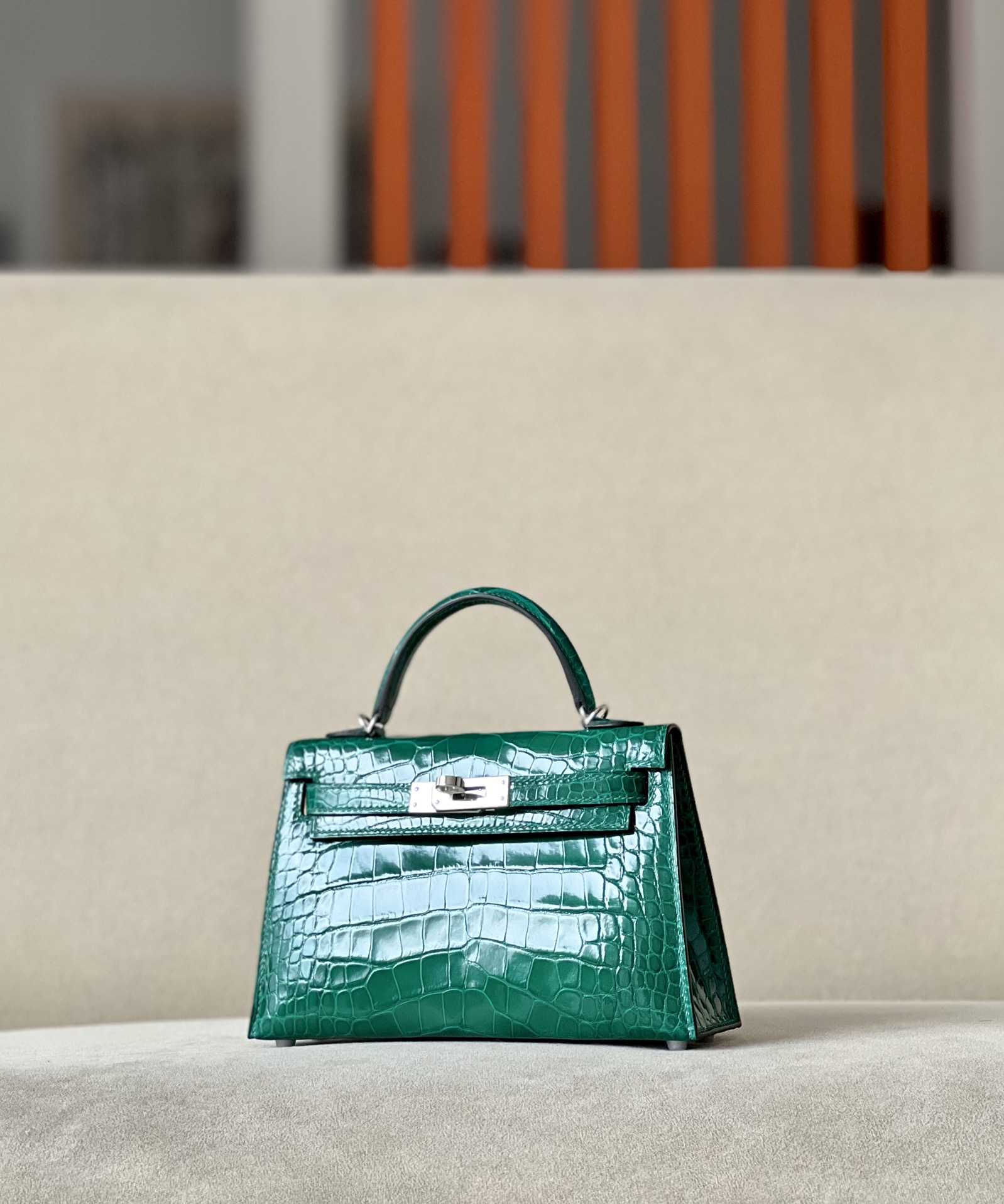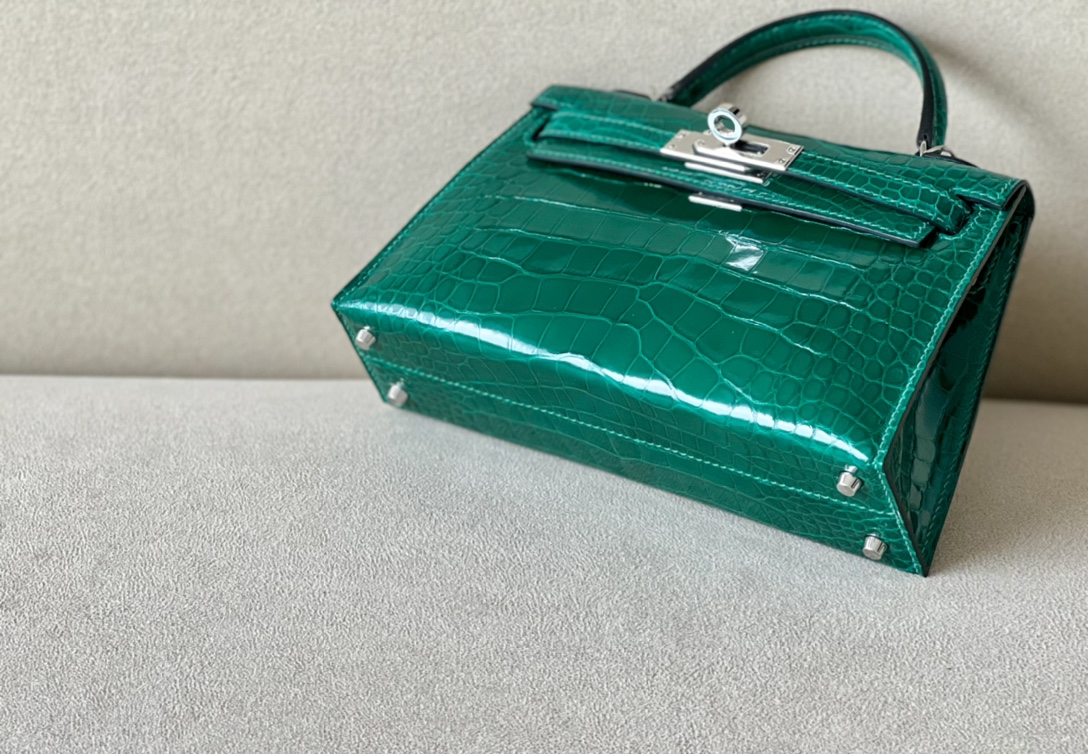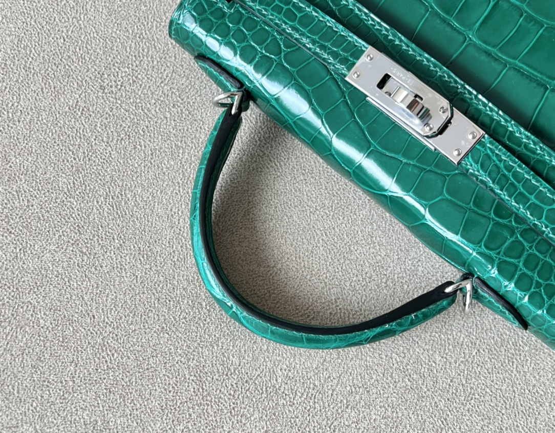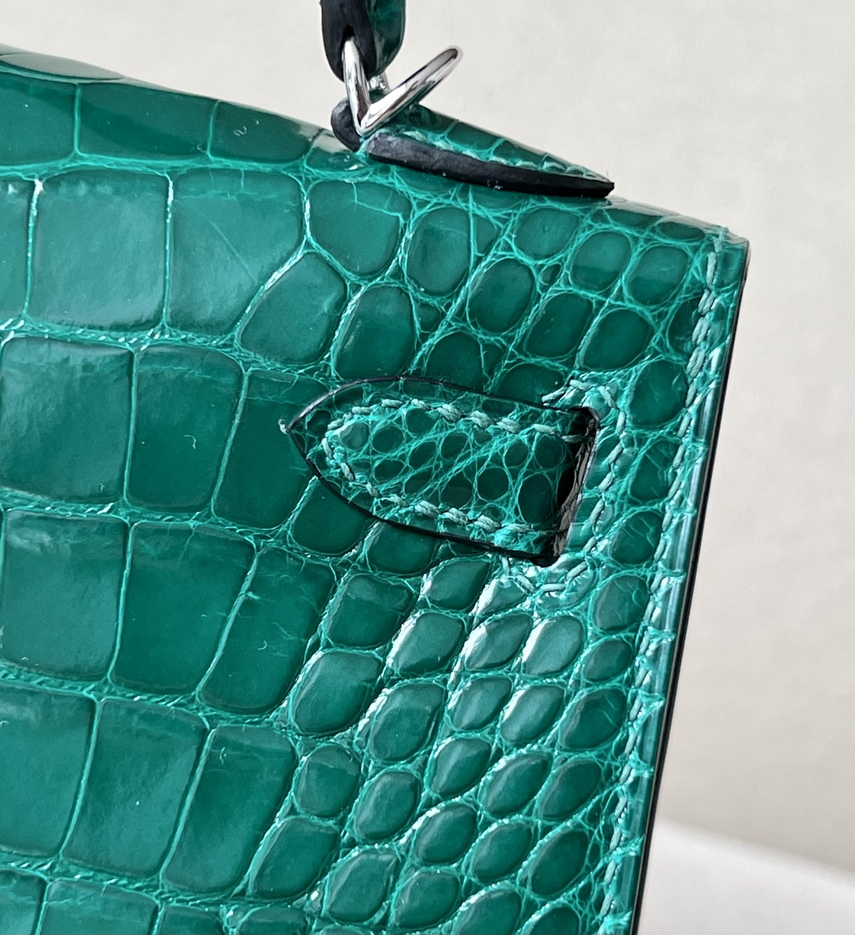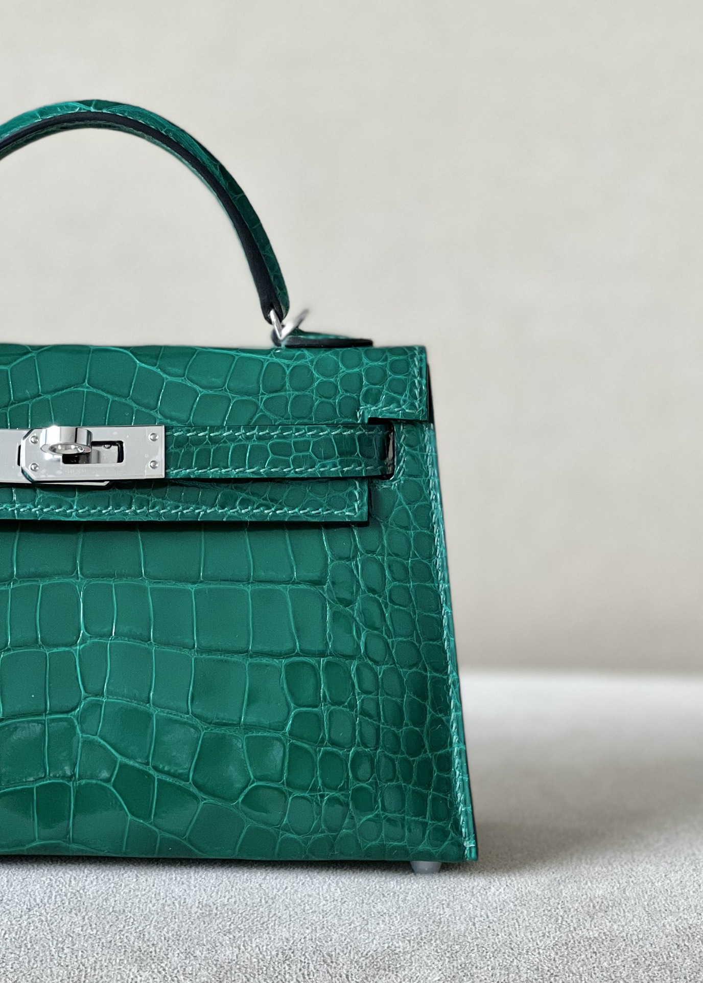 Kelly Mini Alligator Vert Emeraude (6Q) Palladium Hardware