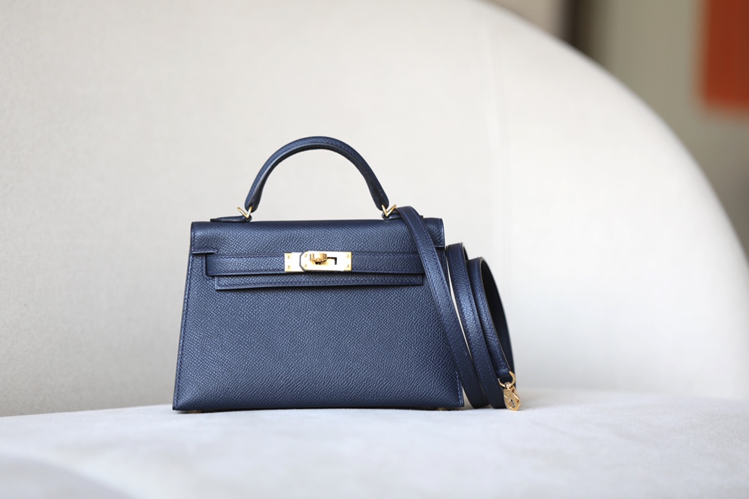 Kelly Mini Epsom Blue Nuit (2Z) Gold Hardware