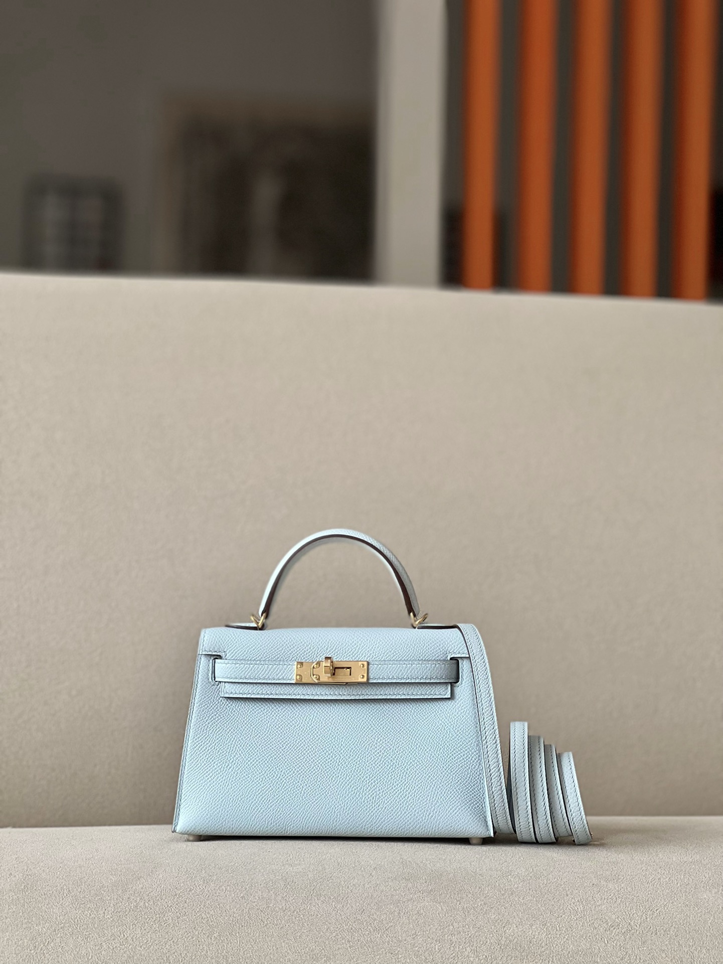 Kelly Mini Epsom Blue Pale (08) Gold Hardware