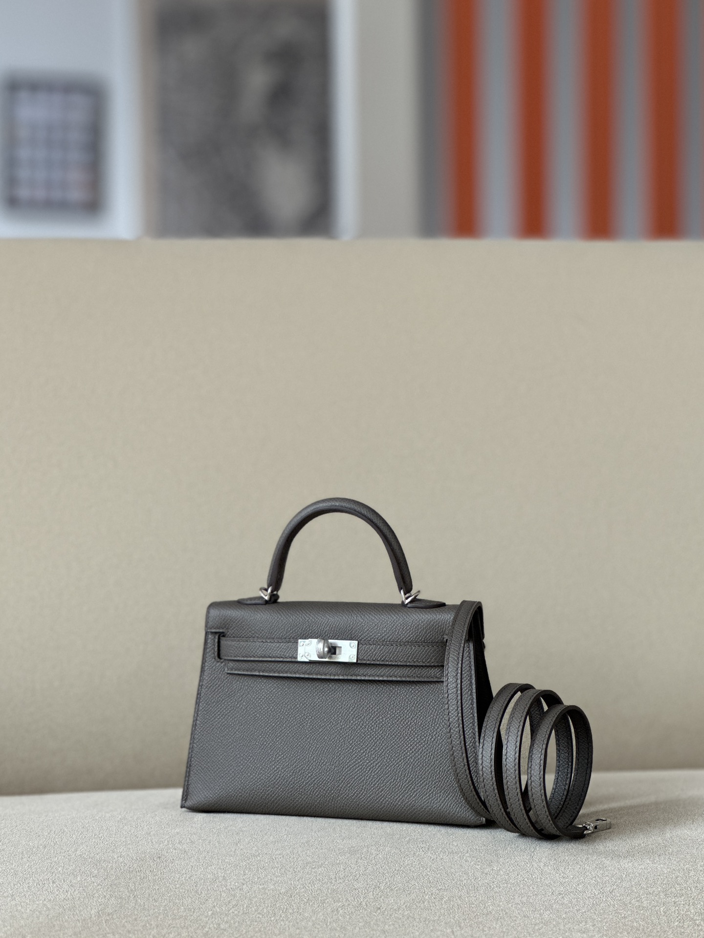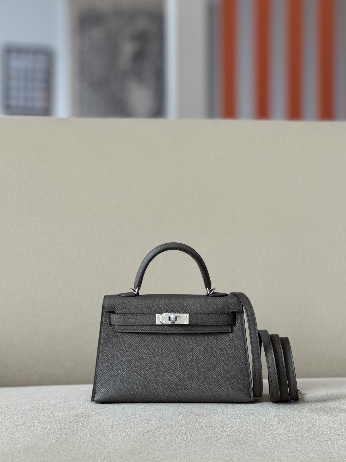 Kelly Mini Epsom Etain (8F) Palladium Hardware