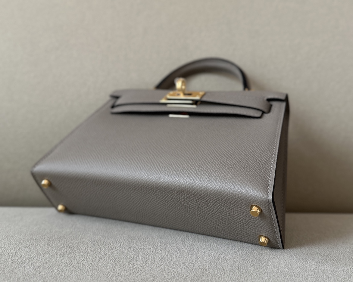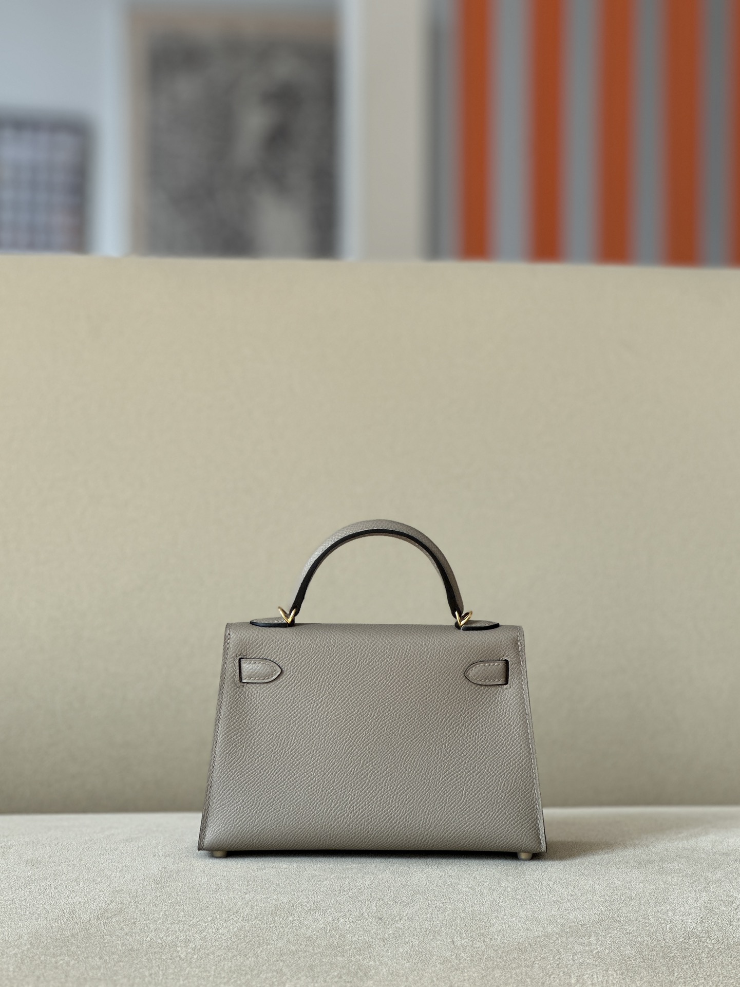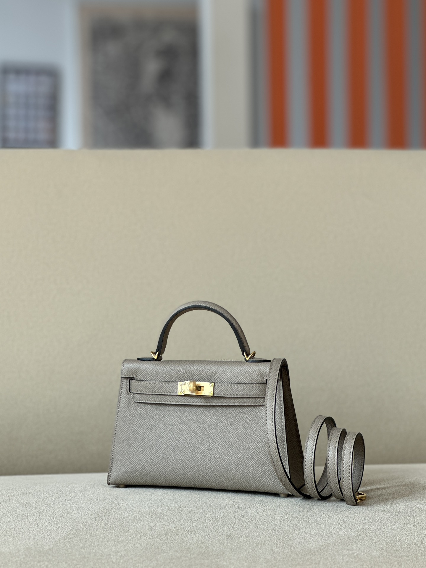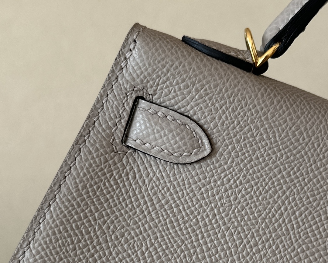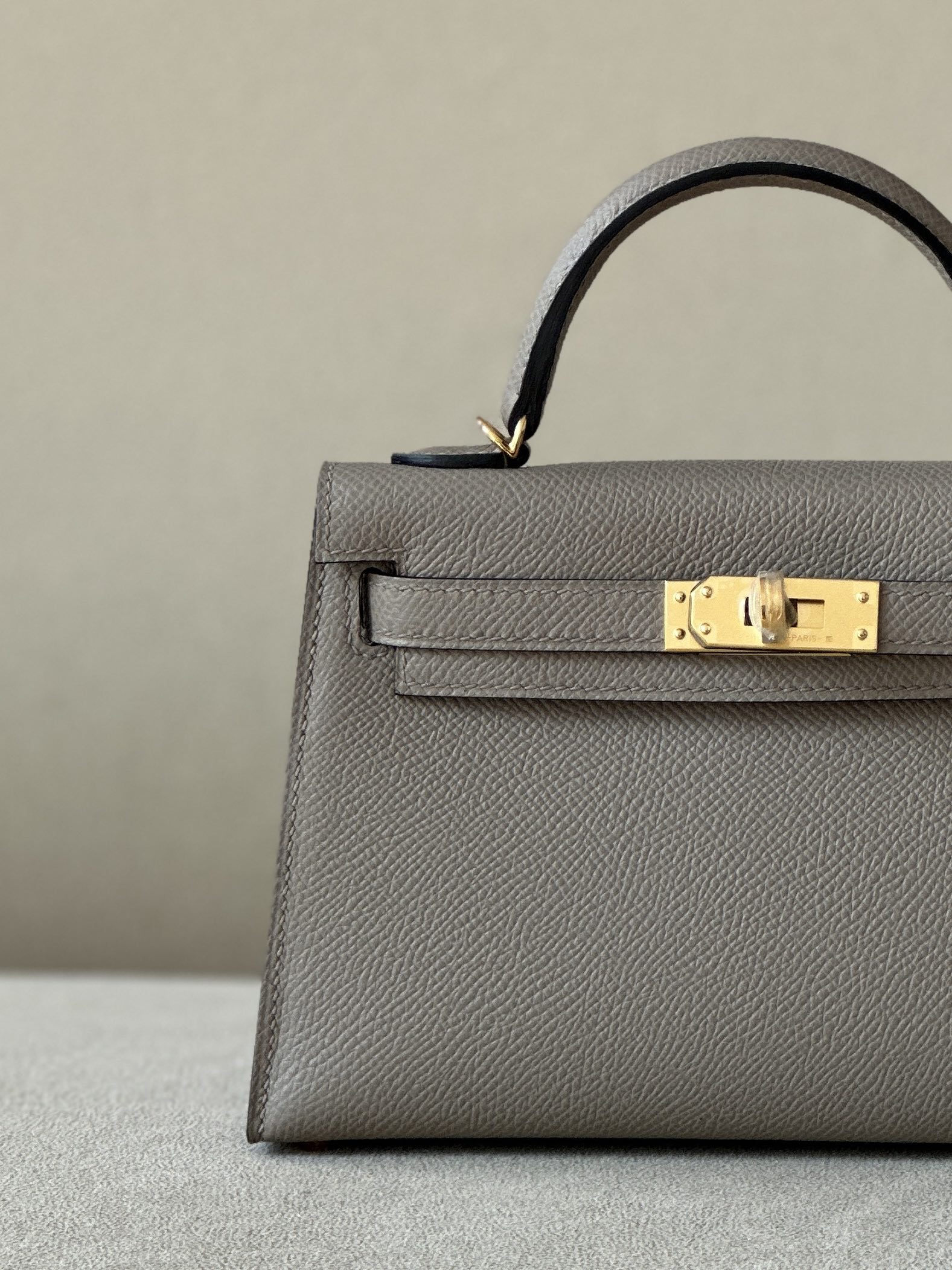 Kelly Mini Epsom Gris Asphalte (M8) Gold Hardware