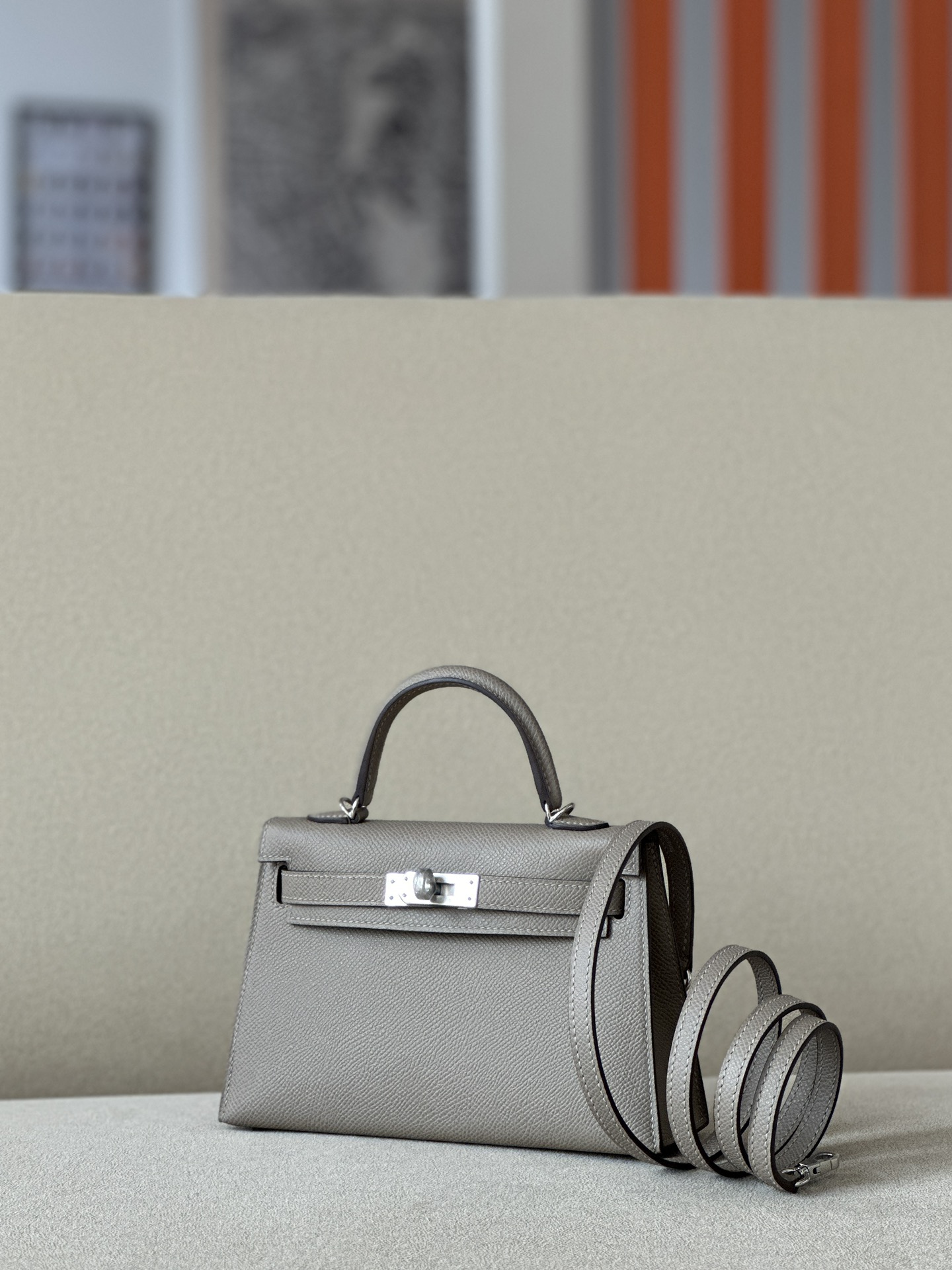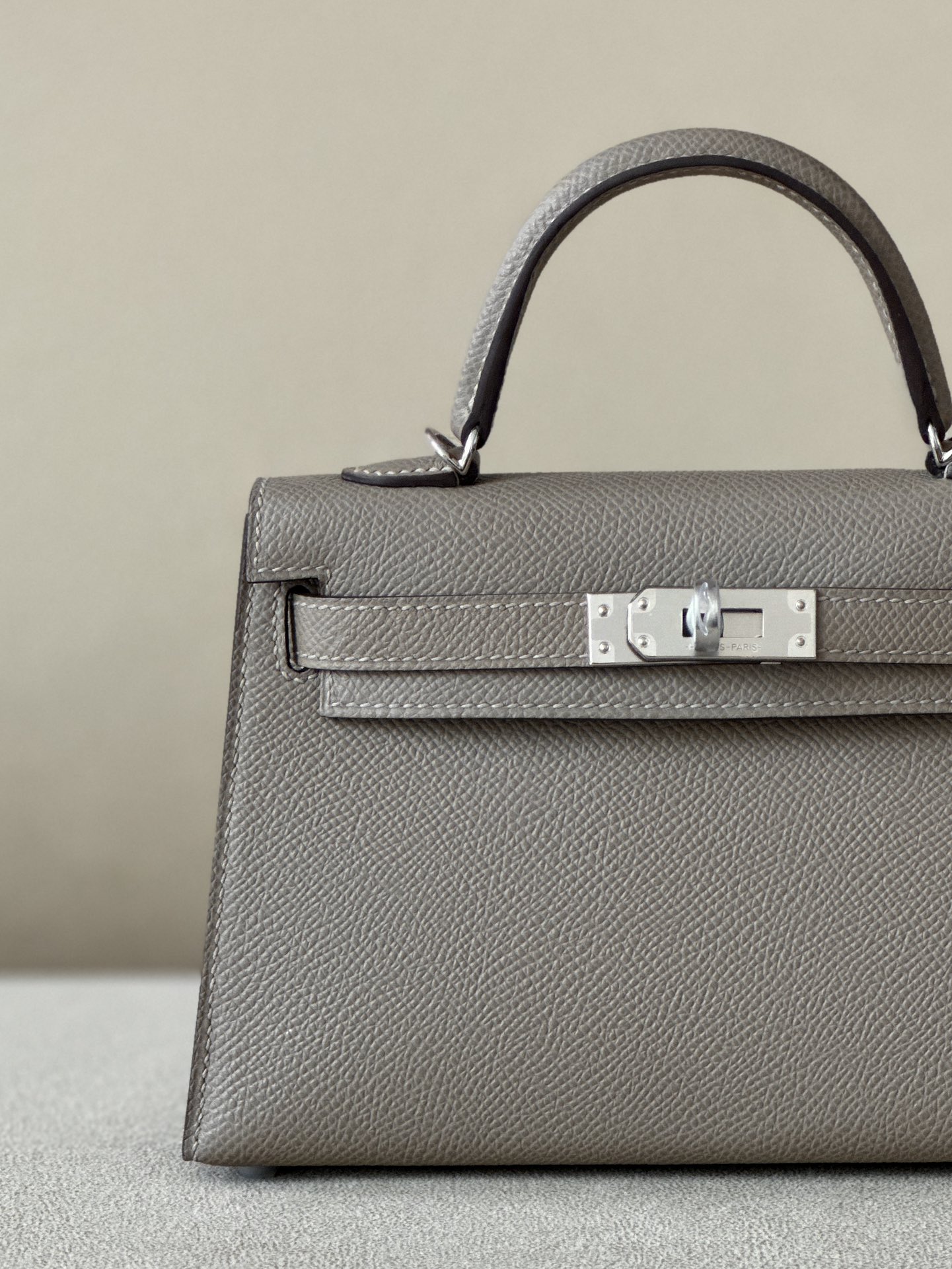 Kelly Mini Epsom Gris Asphalte (M8) Palladium Hardware
