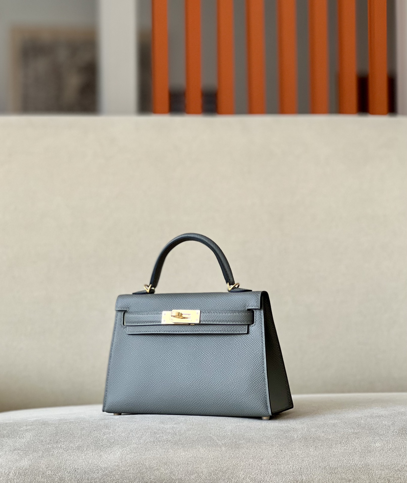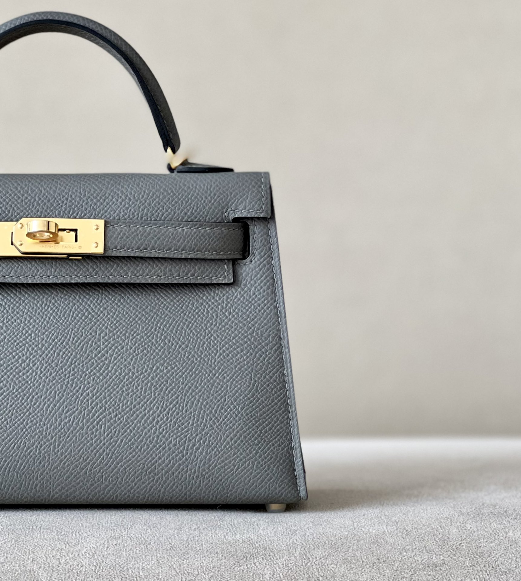 Kelly Mini Epsom Gris Meyer (0L) Gold Hardware