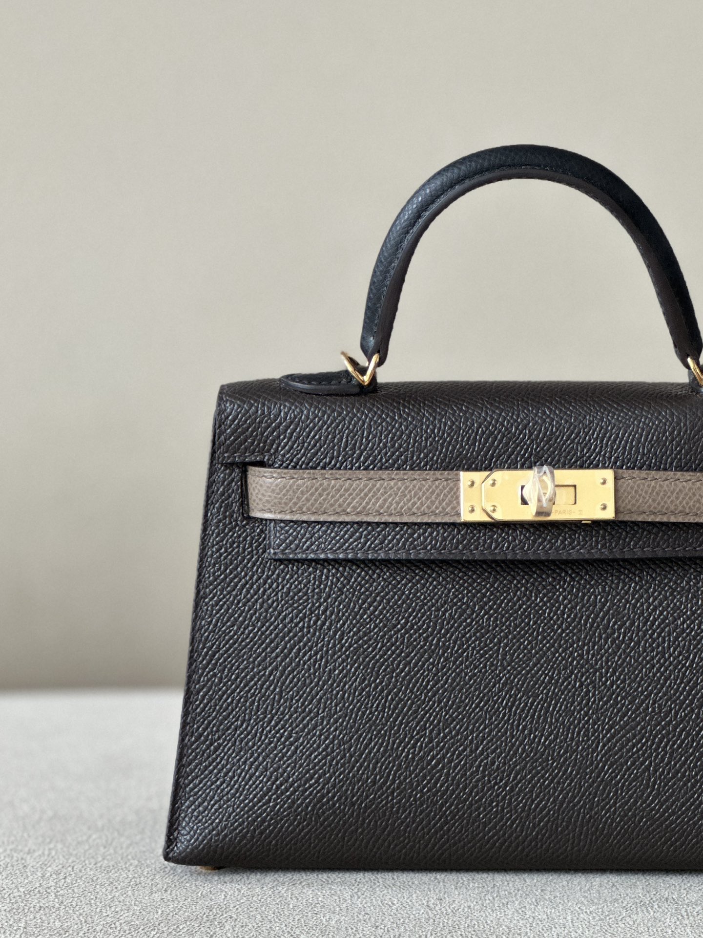 Kelly Mini HSS Epsom Ecorce(4C), Etoupe(18) And Nior(89) Gold Hardware
