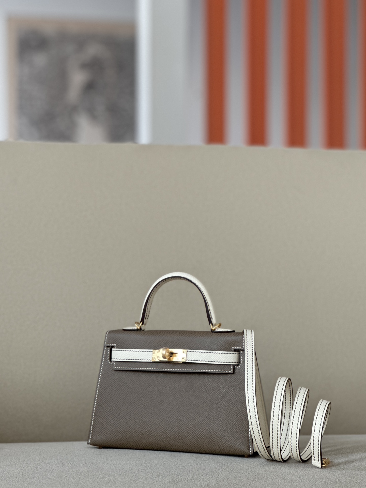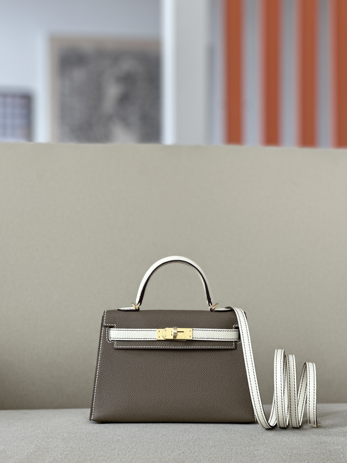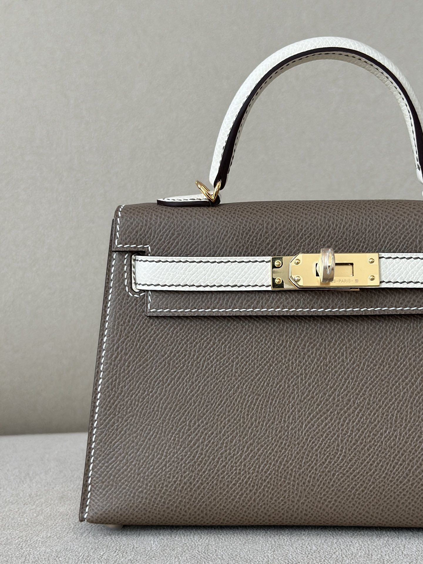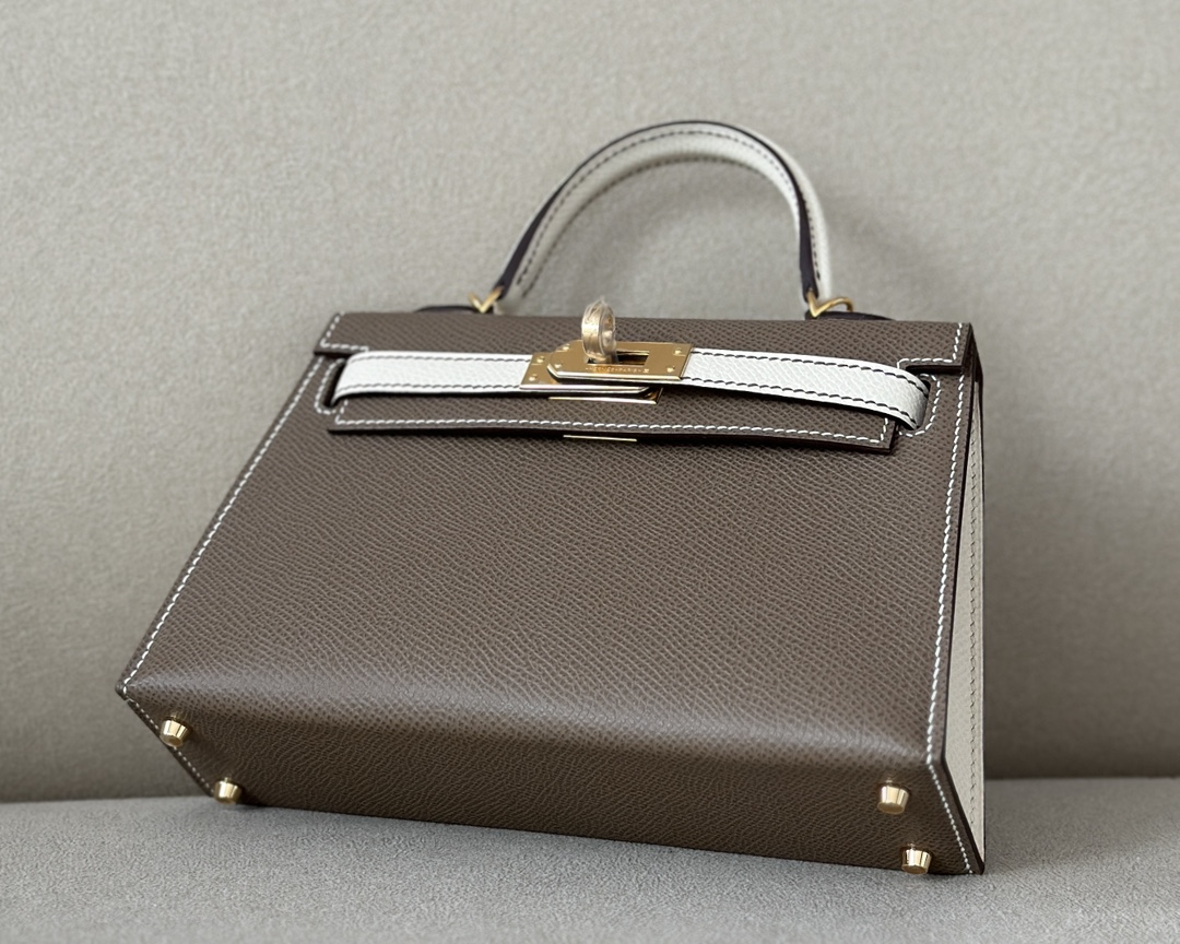 Kelly Mini HSS Epsom Etoupe(18) And Craie(10)Gold Hardware