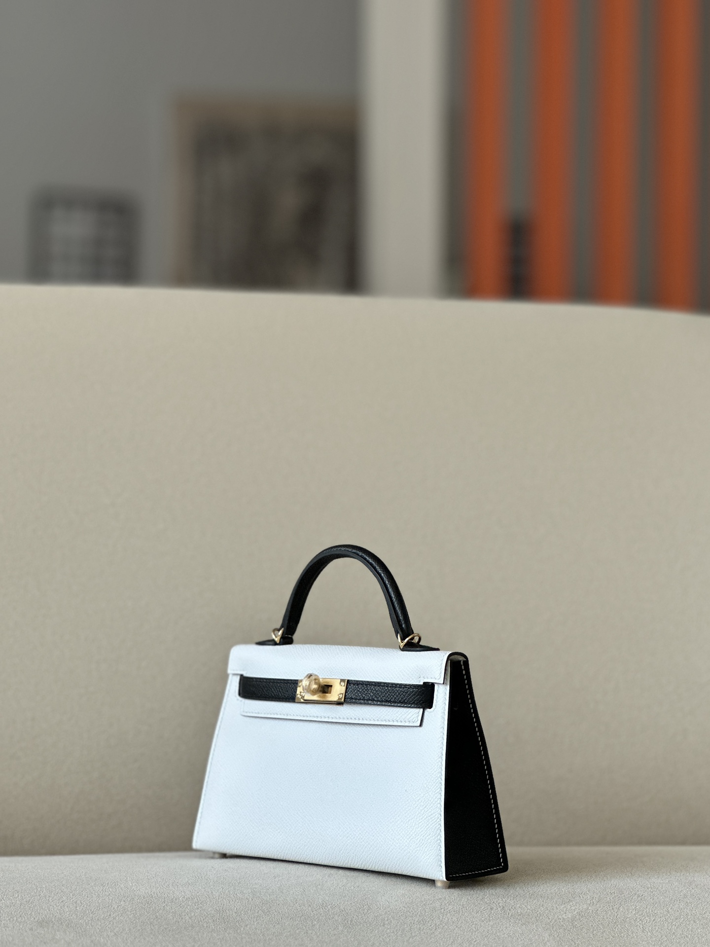 Kelly Mini HSS Epsom Nior(89) And Blanc(01)Gold Hardware