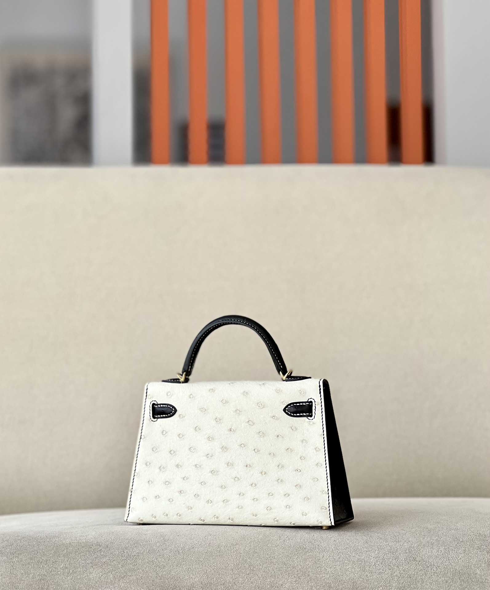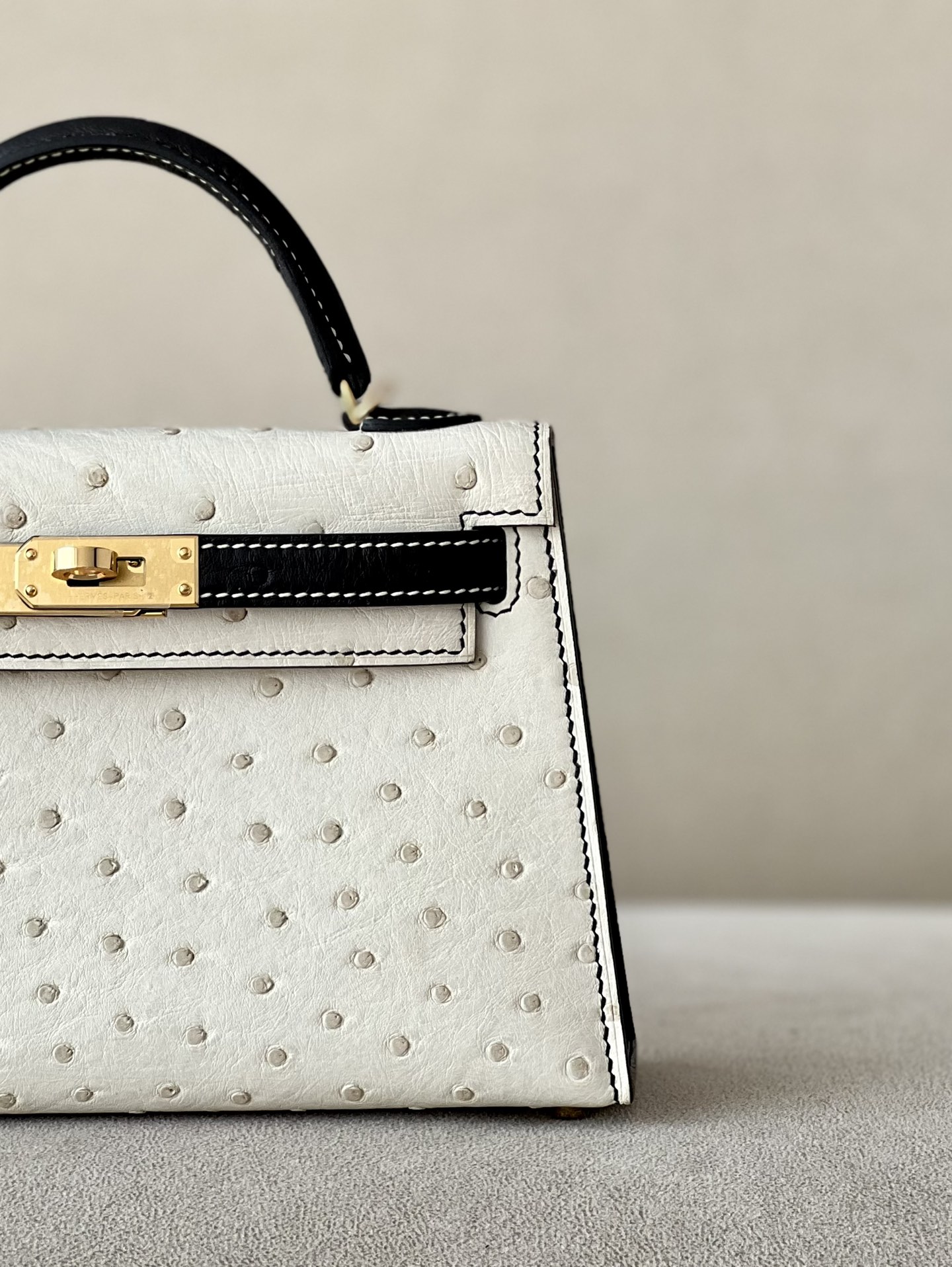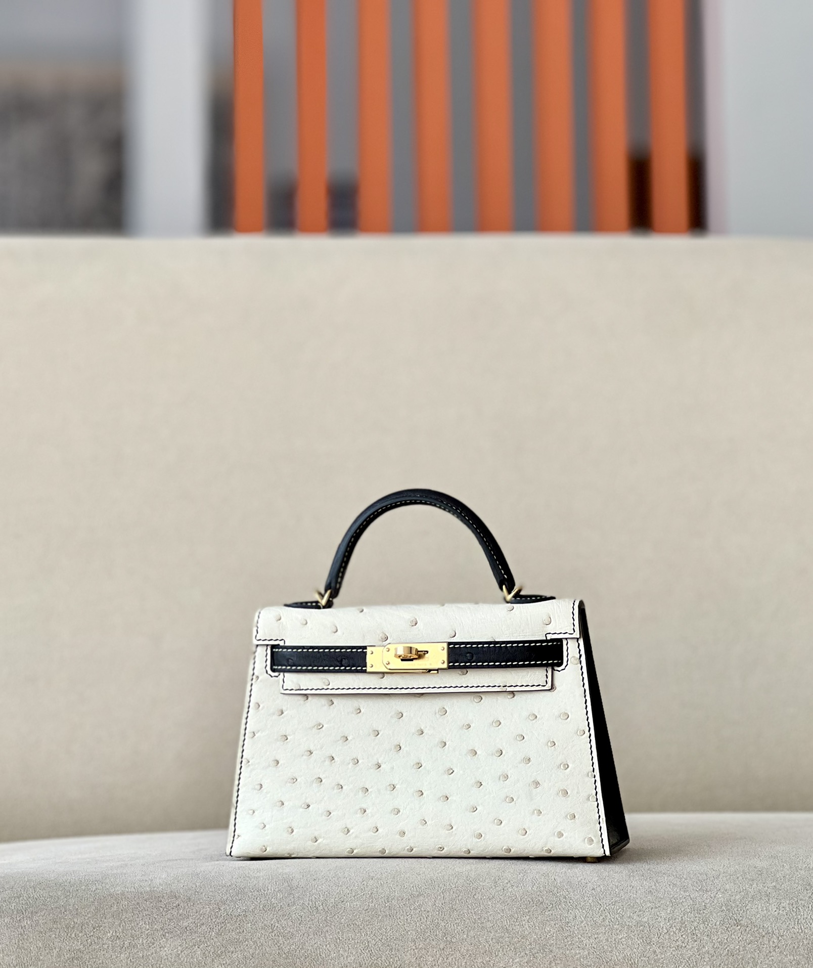 Kelly Mini HSS Ostrich Beton(8L) And Nior(89)Gold Hardware