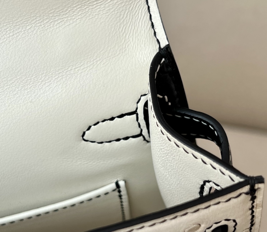 The interior is lined in chèvre leather.
