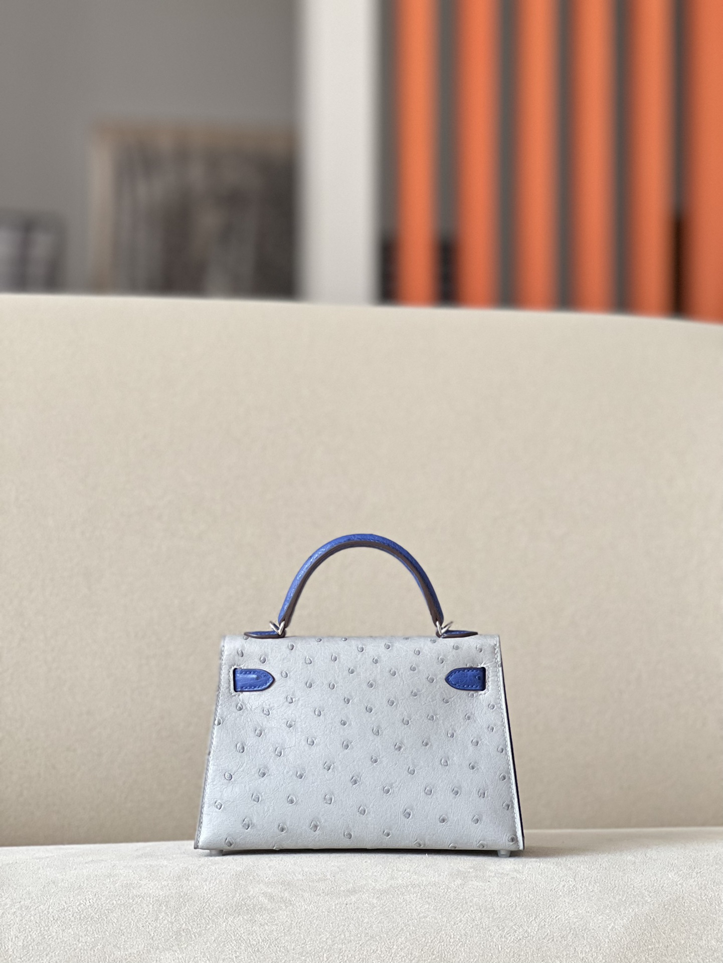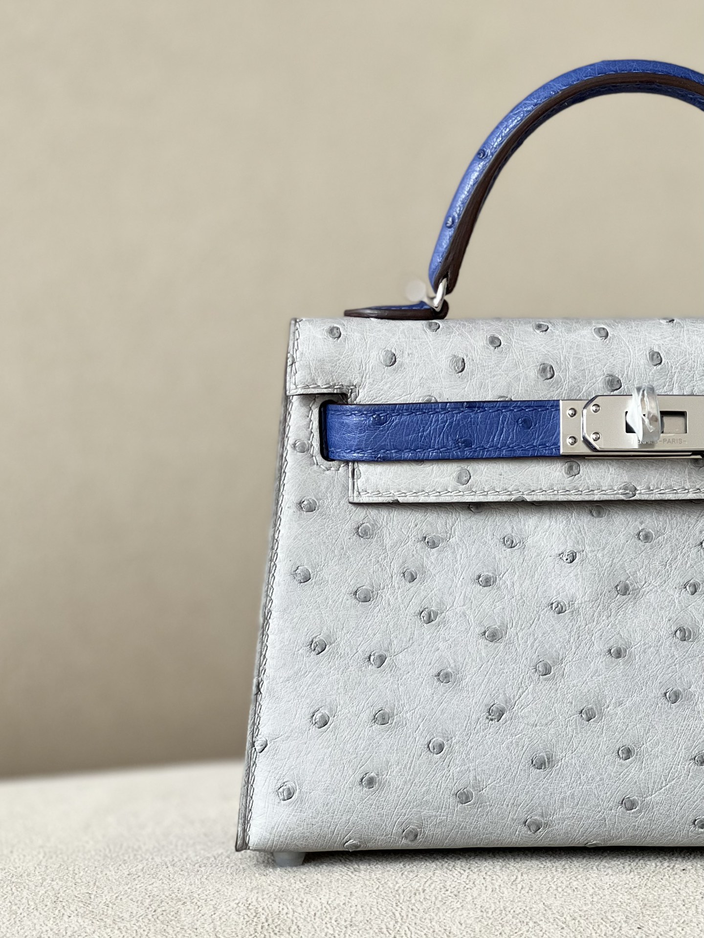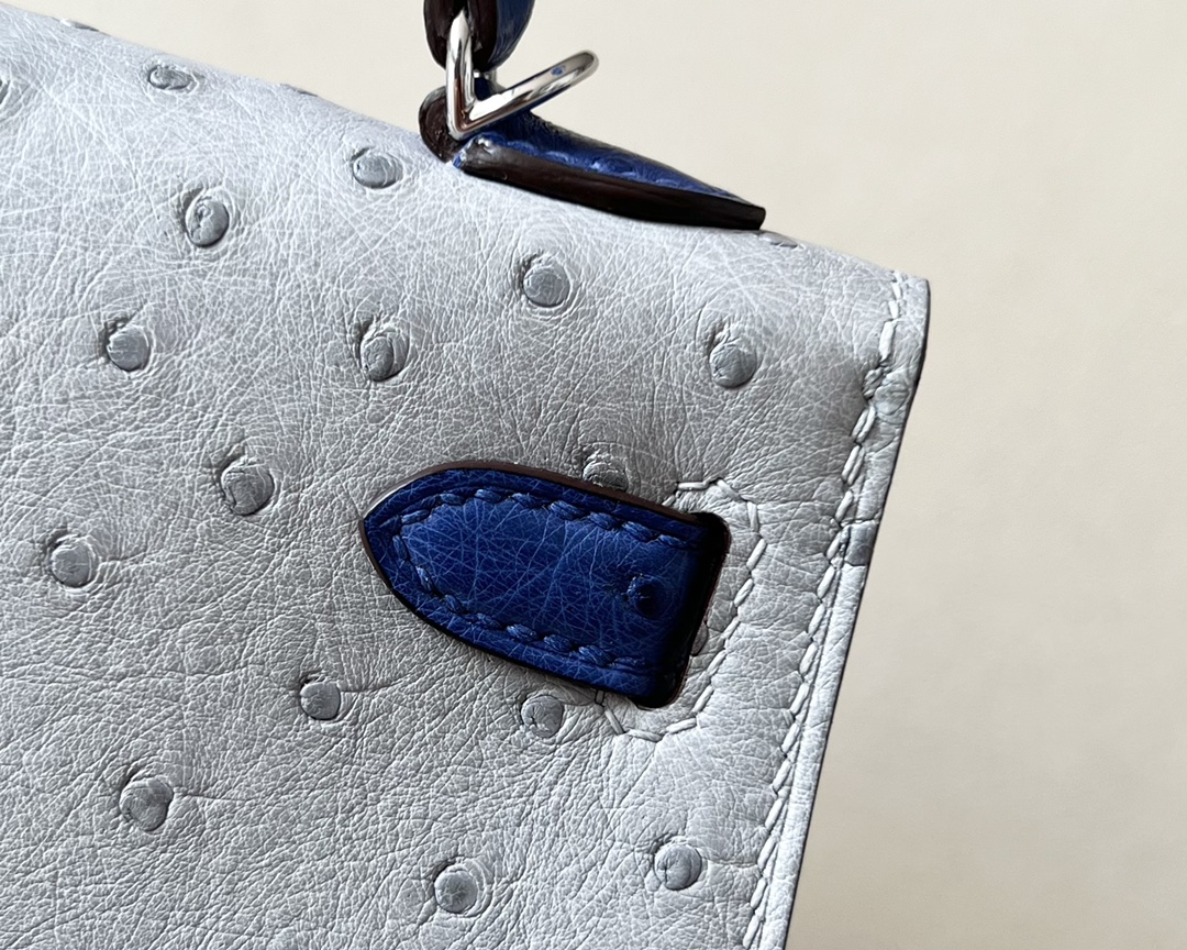 Kelly Mini HSS Ostrich Gris Perle(80) And Gris Agate(82)Palladium Hardware