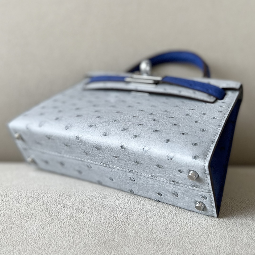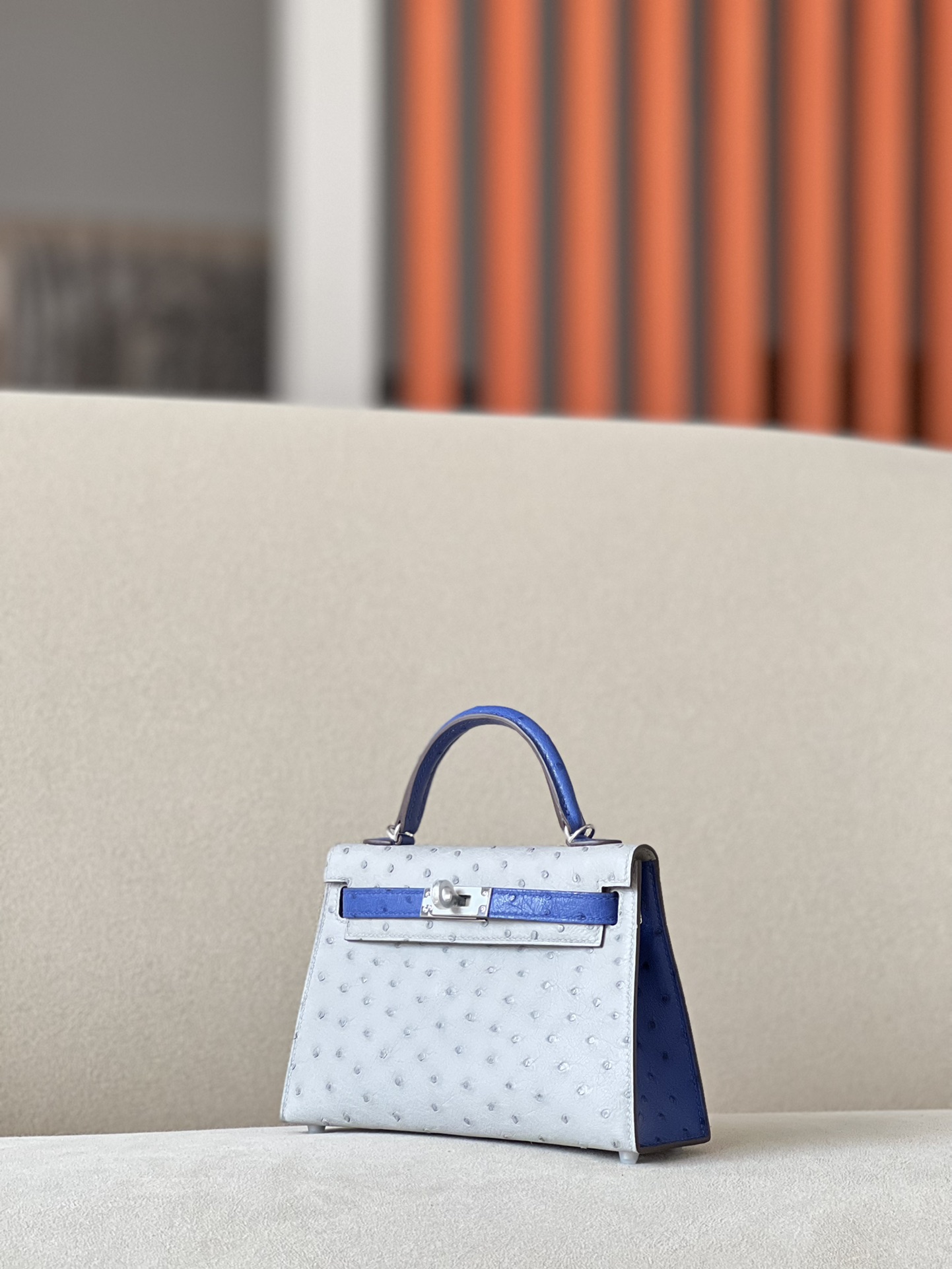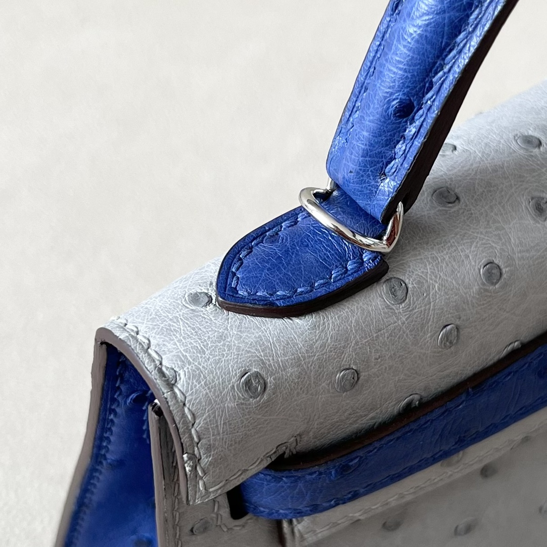 Kelly Mini HSS Ostrich Gris Perle(80) And Gris Agate(82)Palladium Hardware