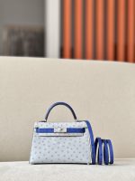 Kelly Mini HSS Ostrich Gris Perle(80) And Gris Agate(82)Palladium Hardware