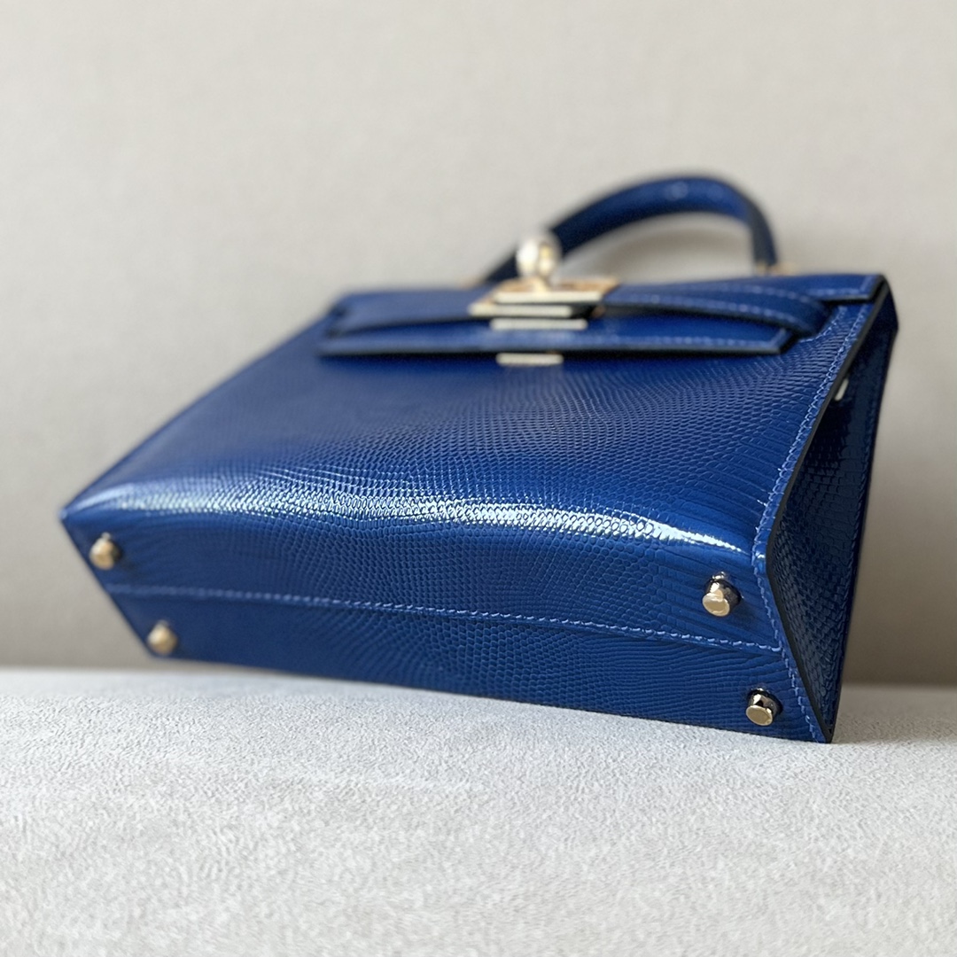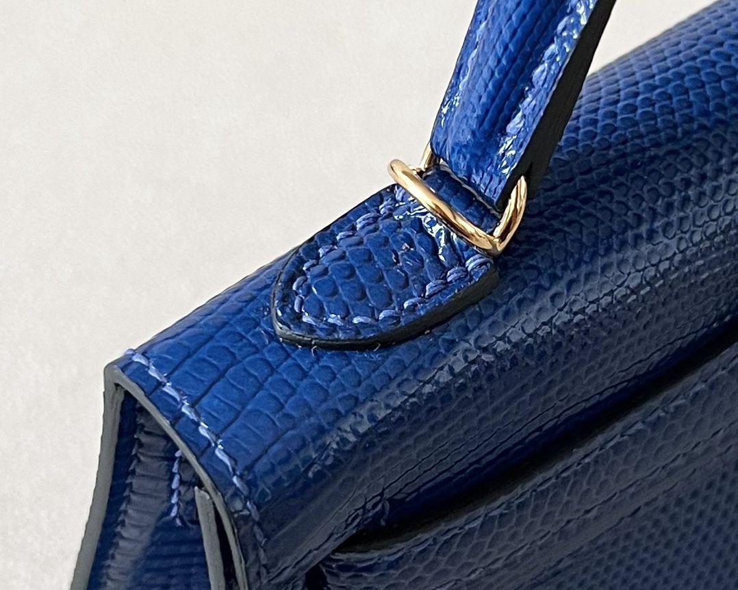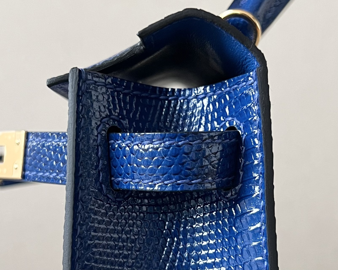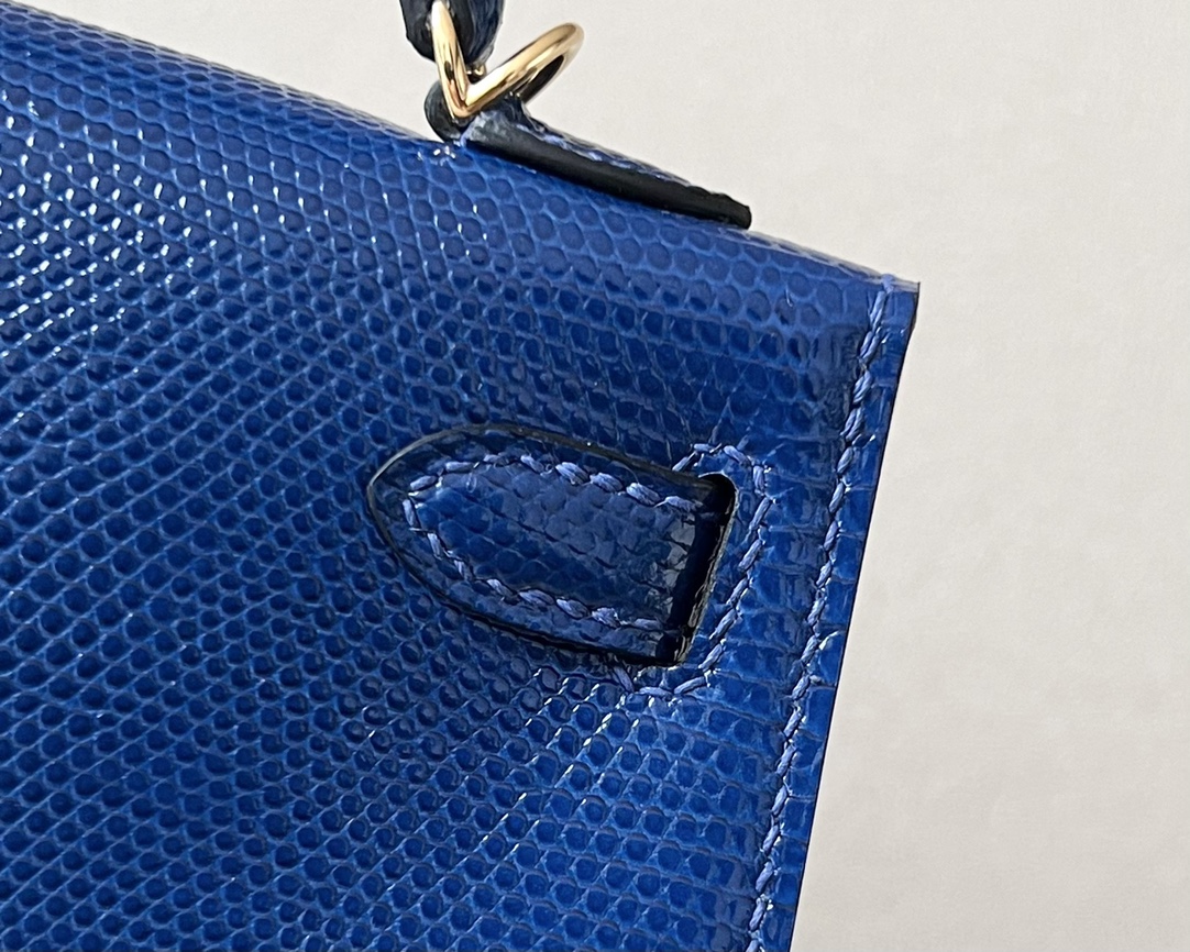 Kelly Mini Lizard Blue Saphir (73) Gold Hardware