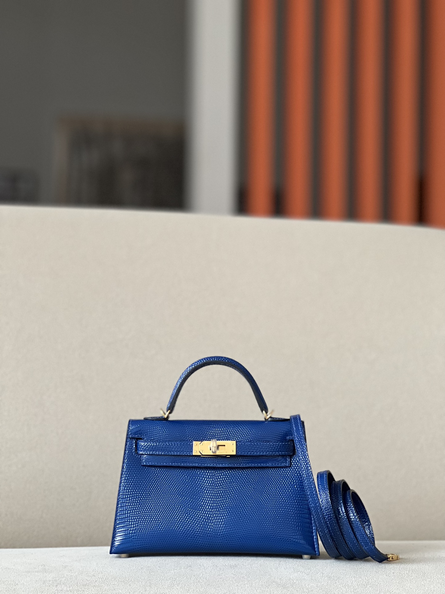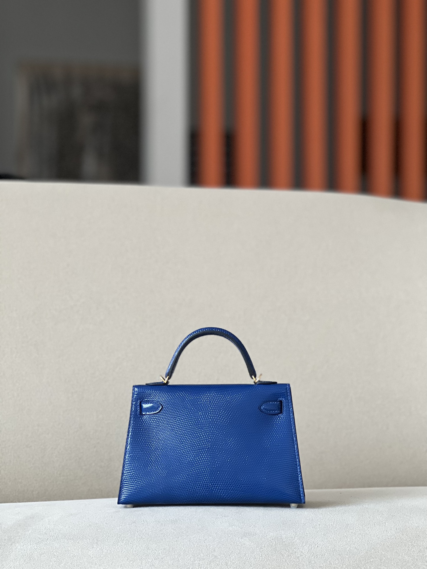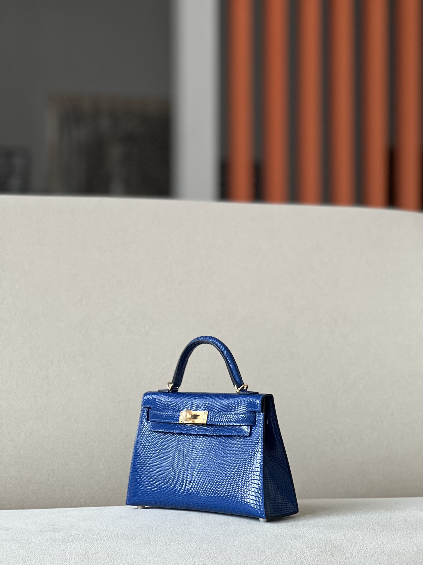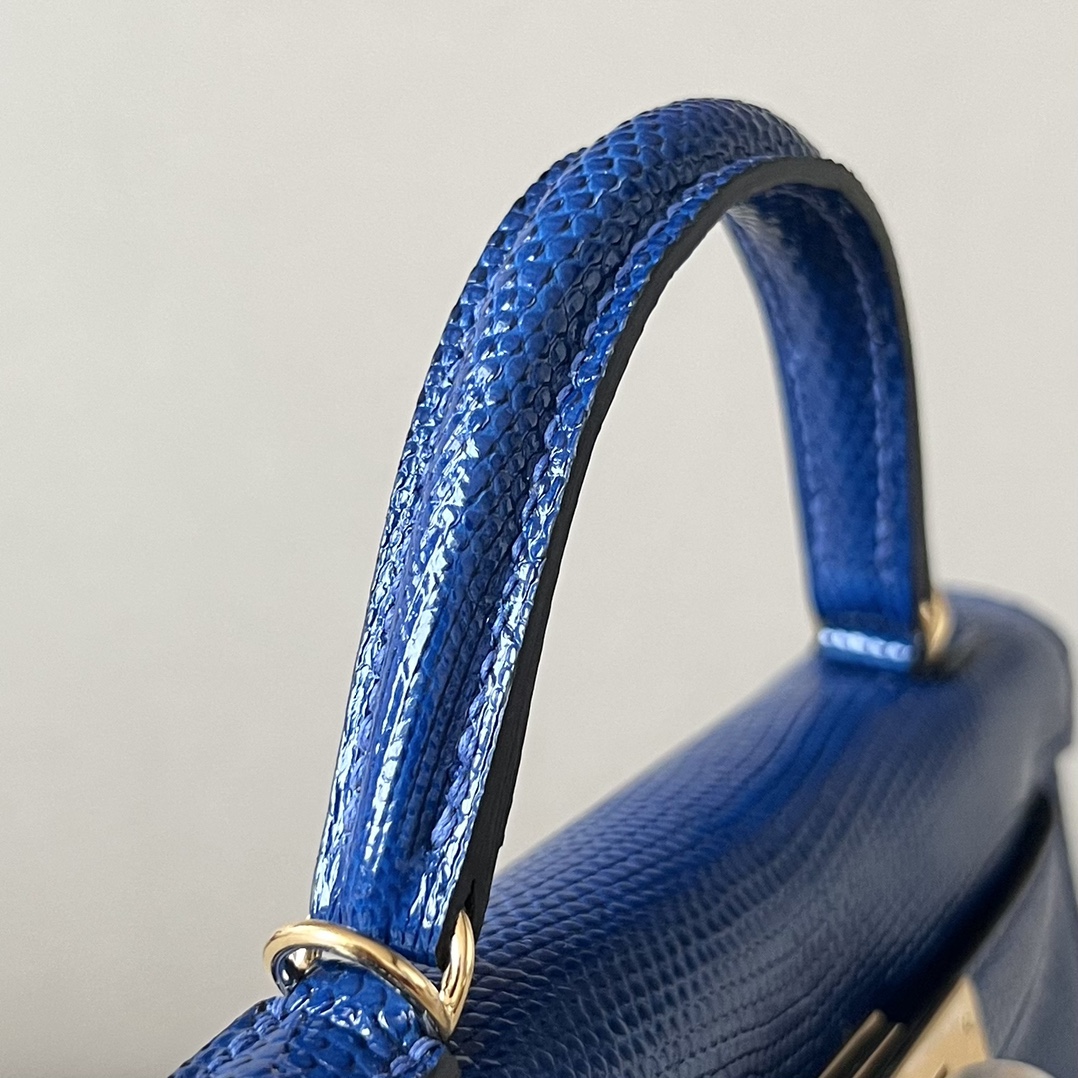 Kelly Mini Lizard Blue Saphir (73) Gold Hardware