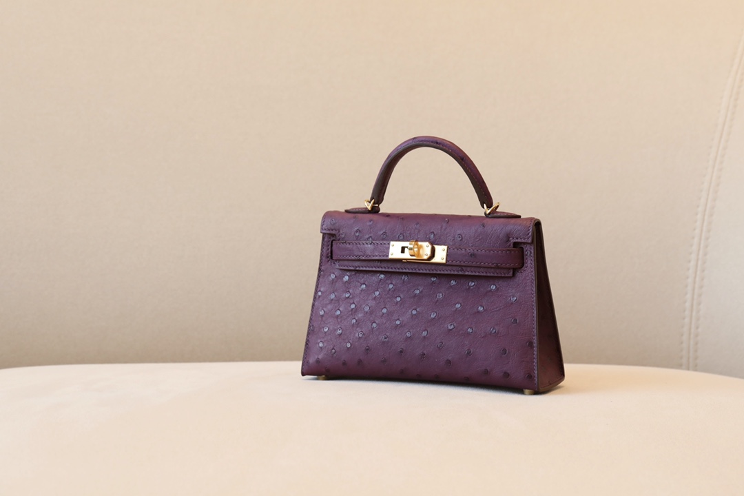 Kelly Mini Ostrich Anemone (P9) Gold Hardware