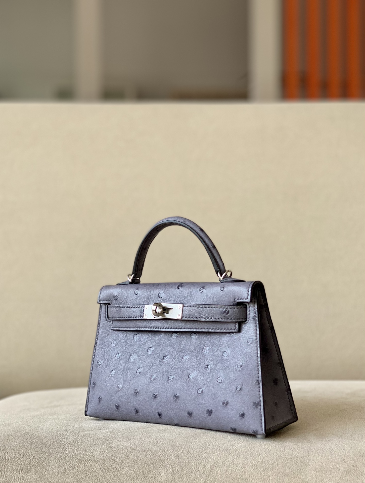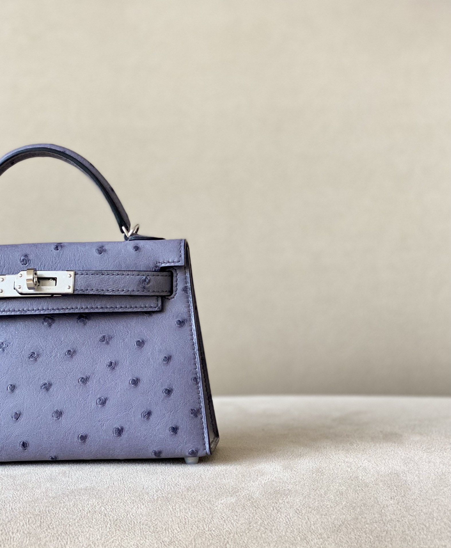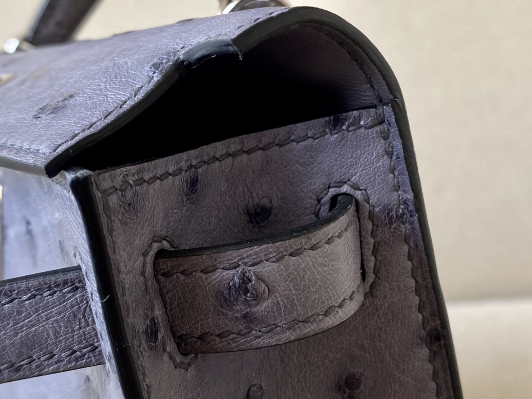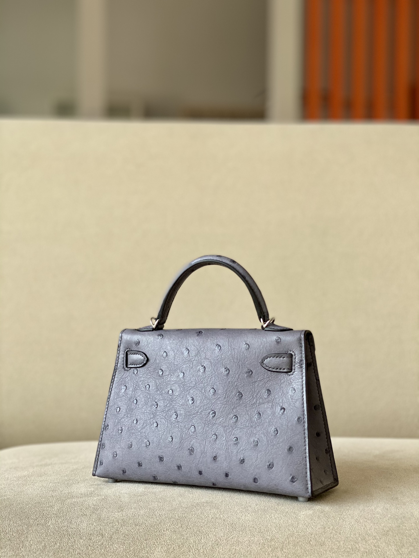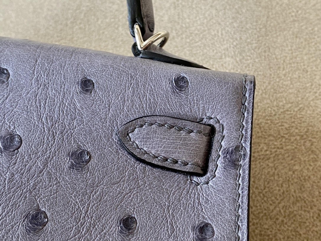 Kelly Mini Ostrich Gris Agate (82) Palladium Hardware