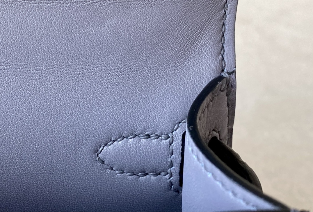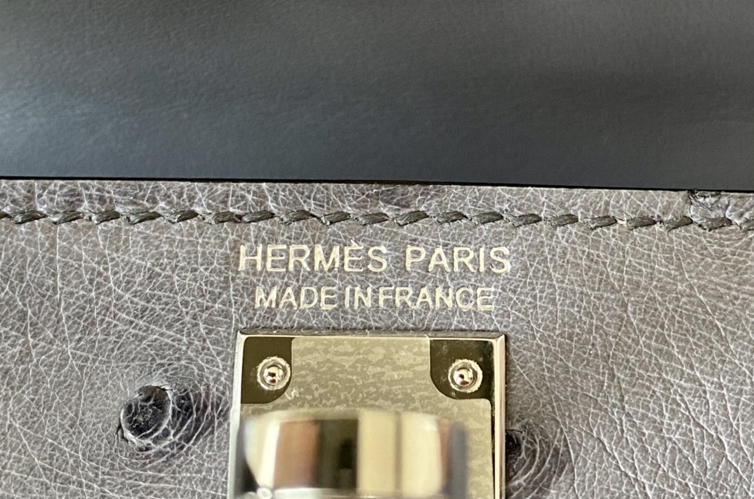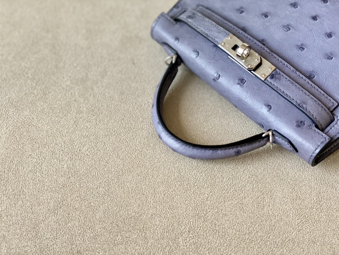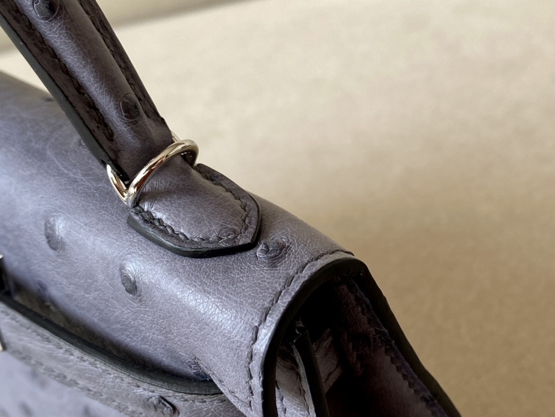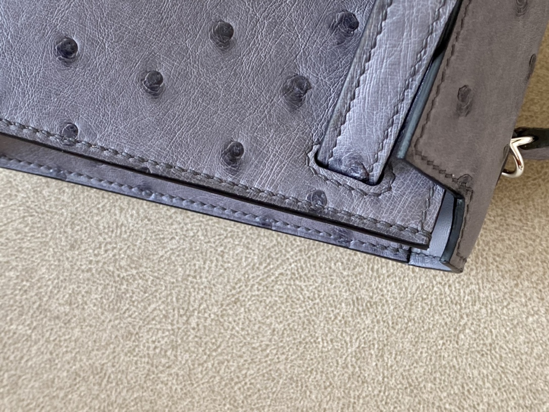 Kelly Mini Ostrich Gris Agate (82) Palladium Hardware