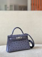 Kelly Mini Ostrich Gris Agate (82) Palladium Hardware