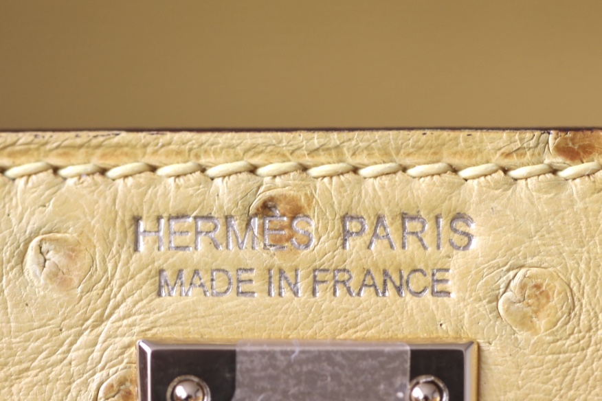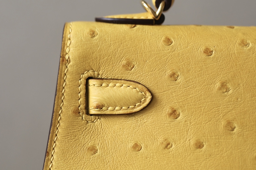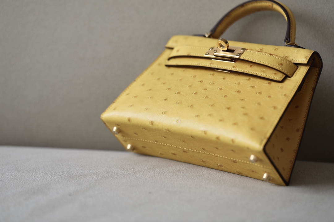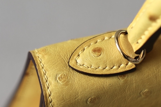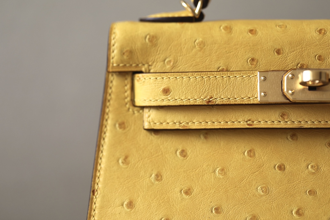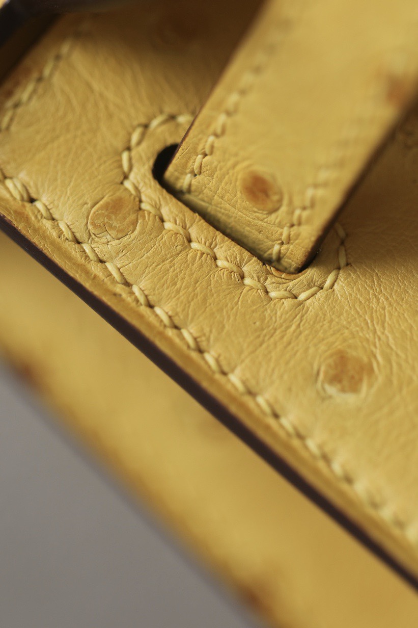 Kelly Mini Ostrich Jaune Amber (9D) Hardware