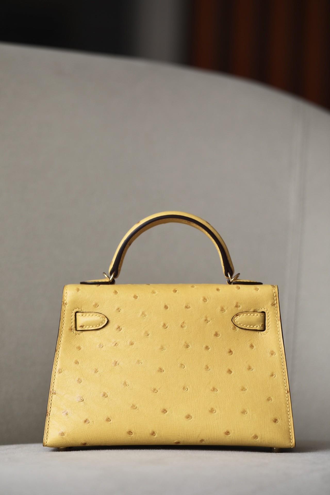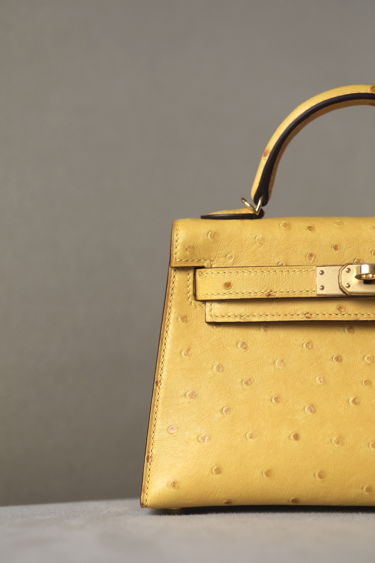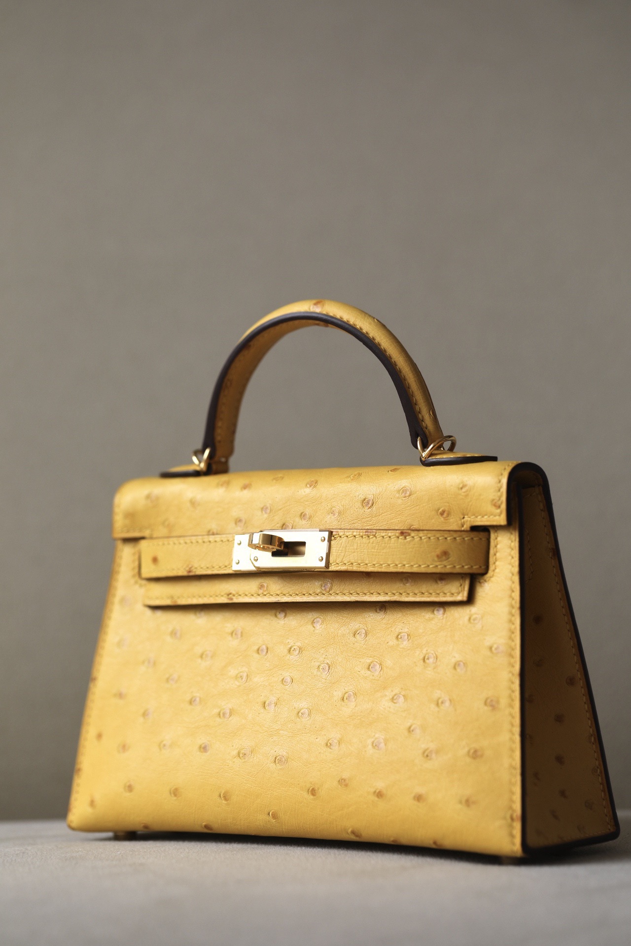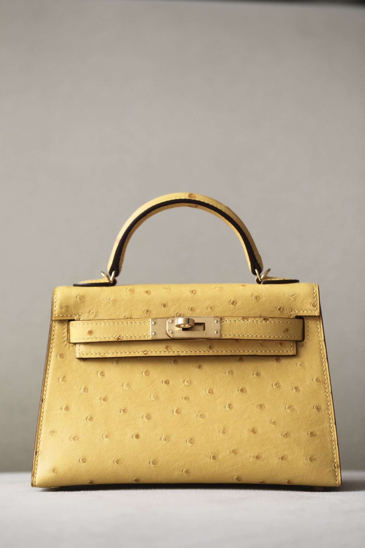 Kelly Mini Ostrich Jaune Amber (9D) Hardware