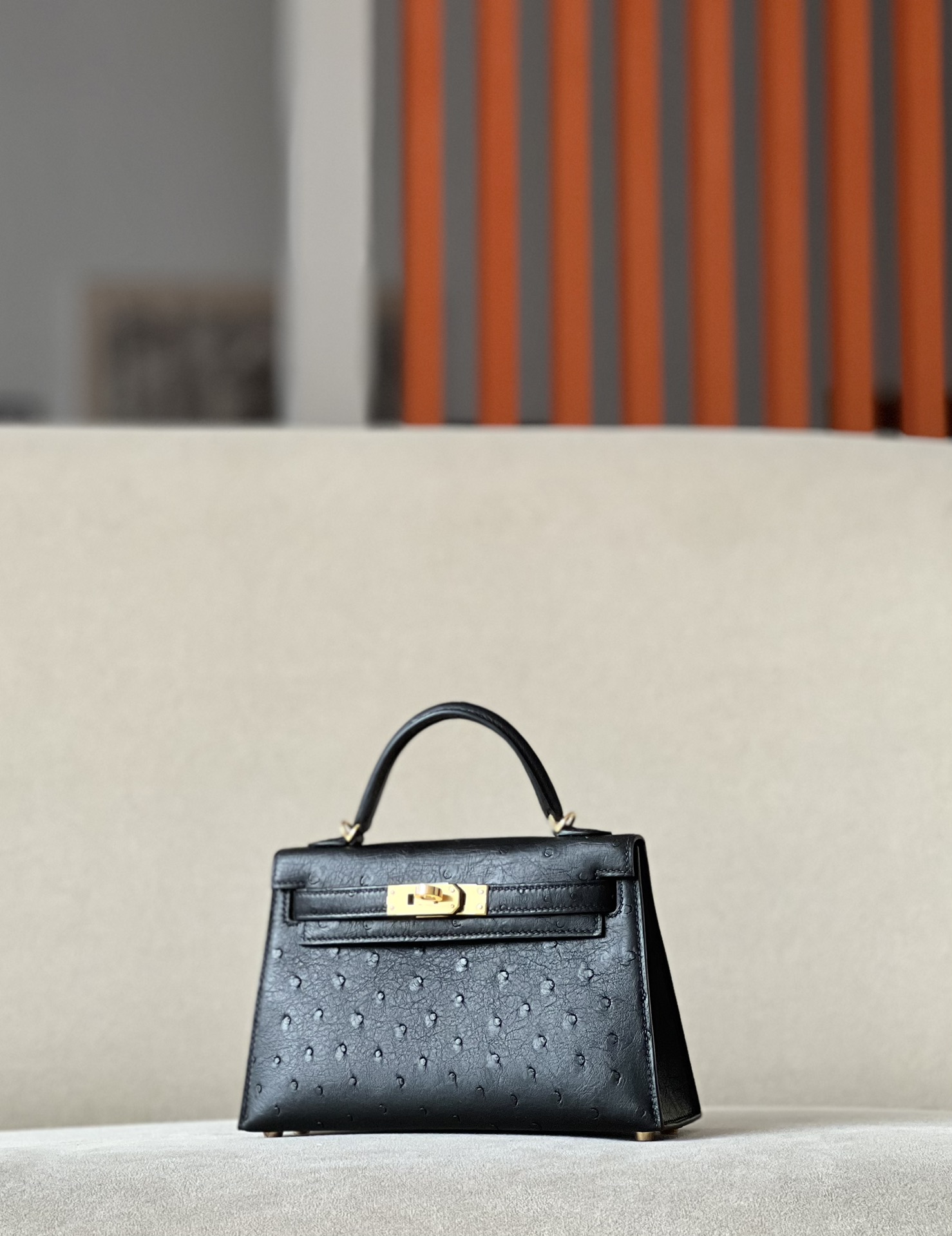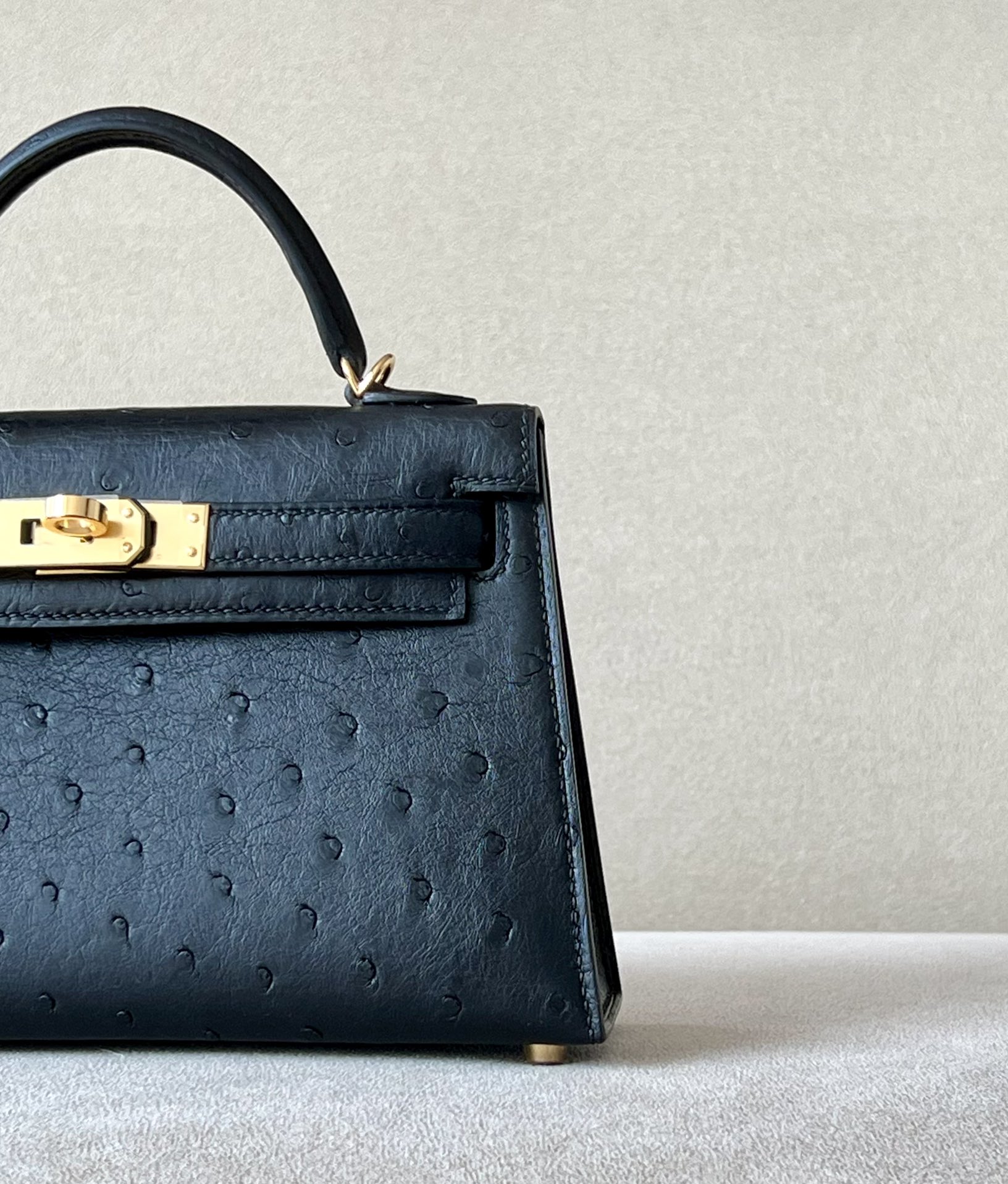 Kelly Mini Ostrich Nior (89) Gold Hardware