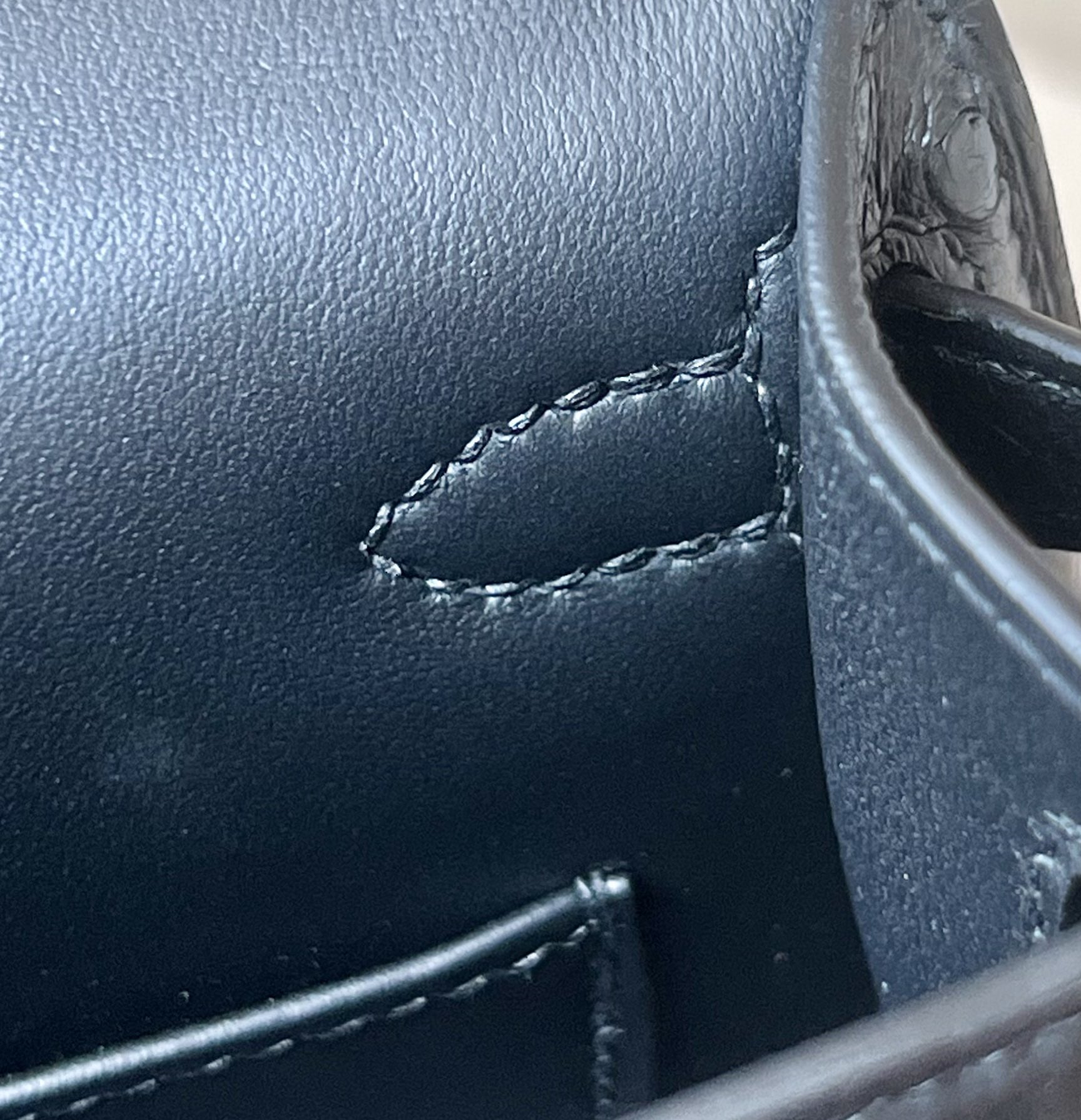 The interior is lined in chèvre leather.