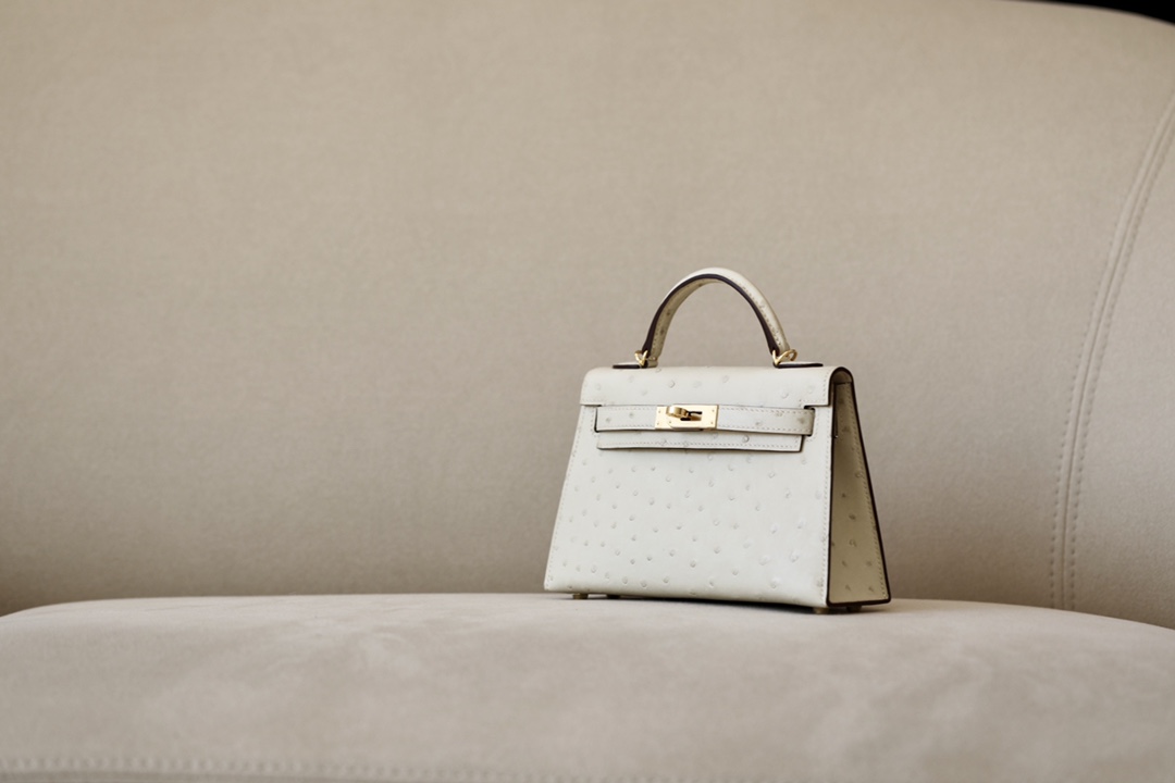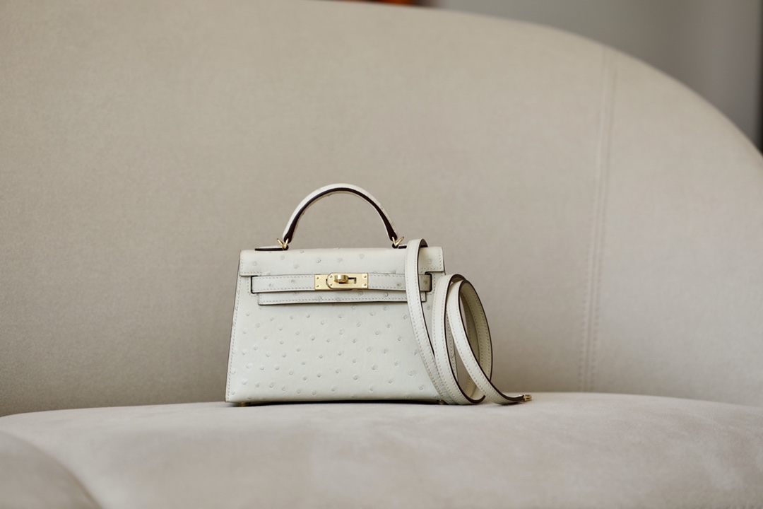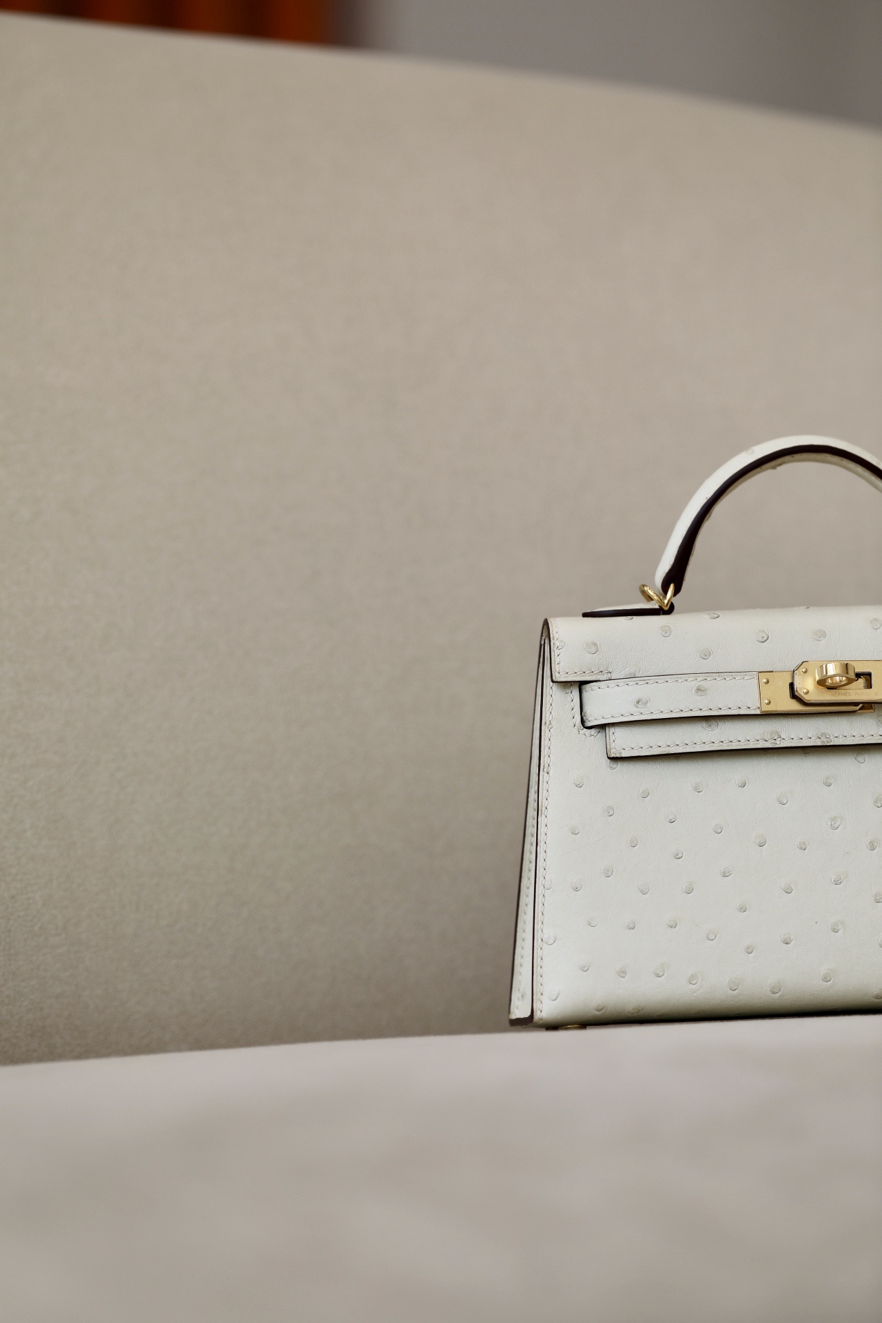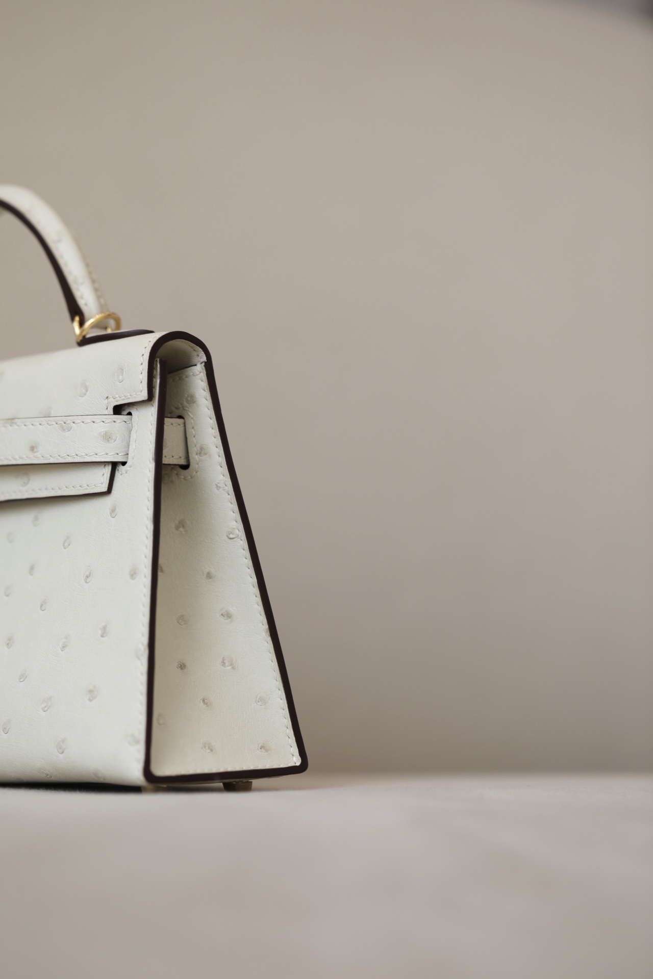 Kelly Mini Ostrich Parchemin (3C) Gold Hardware