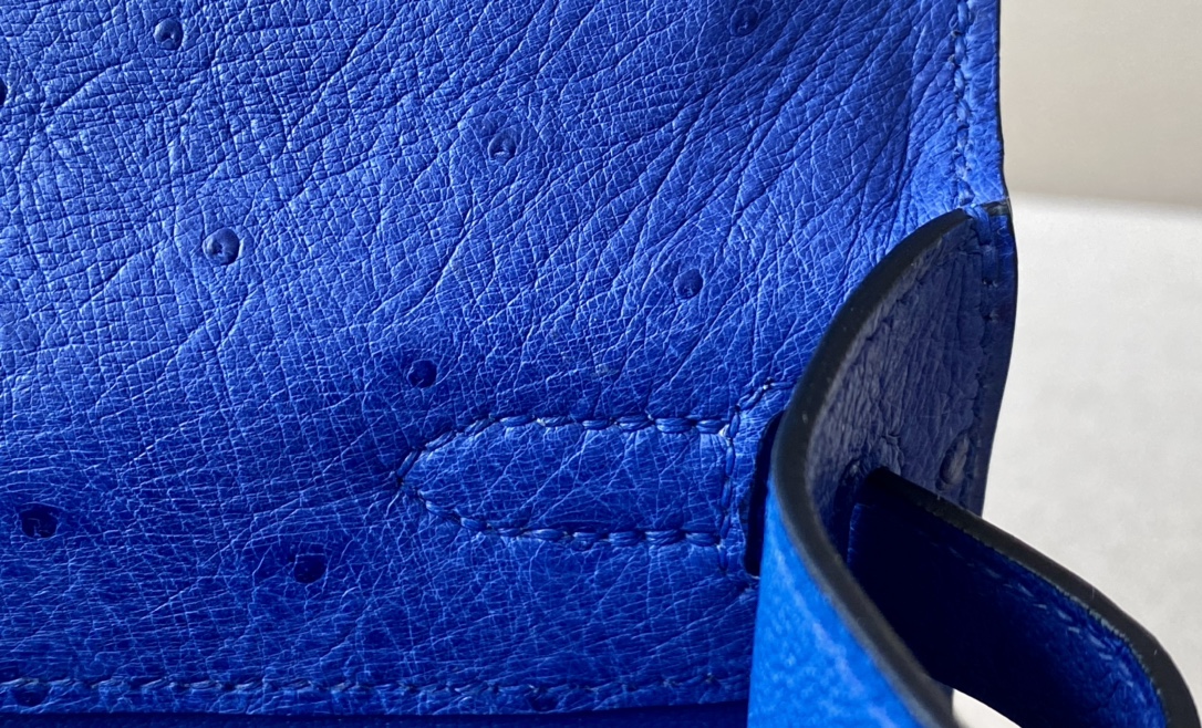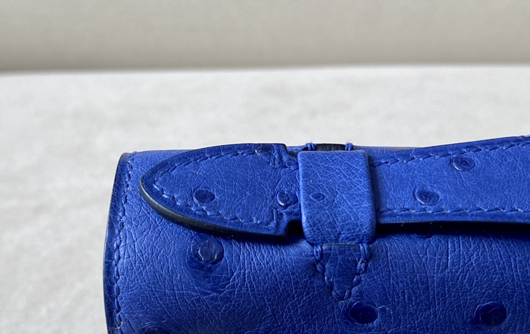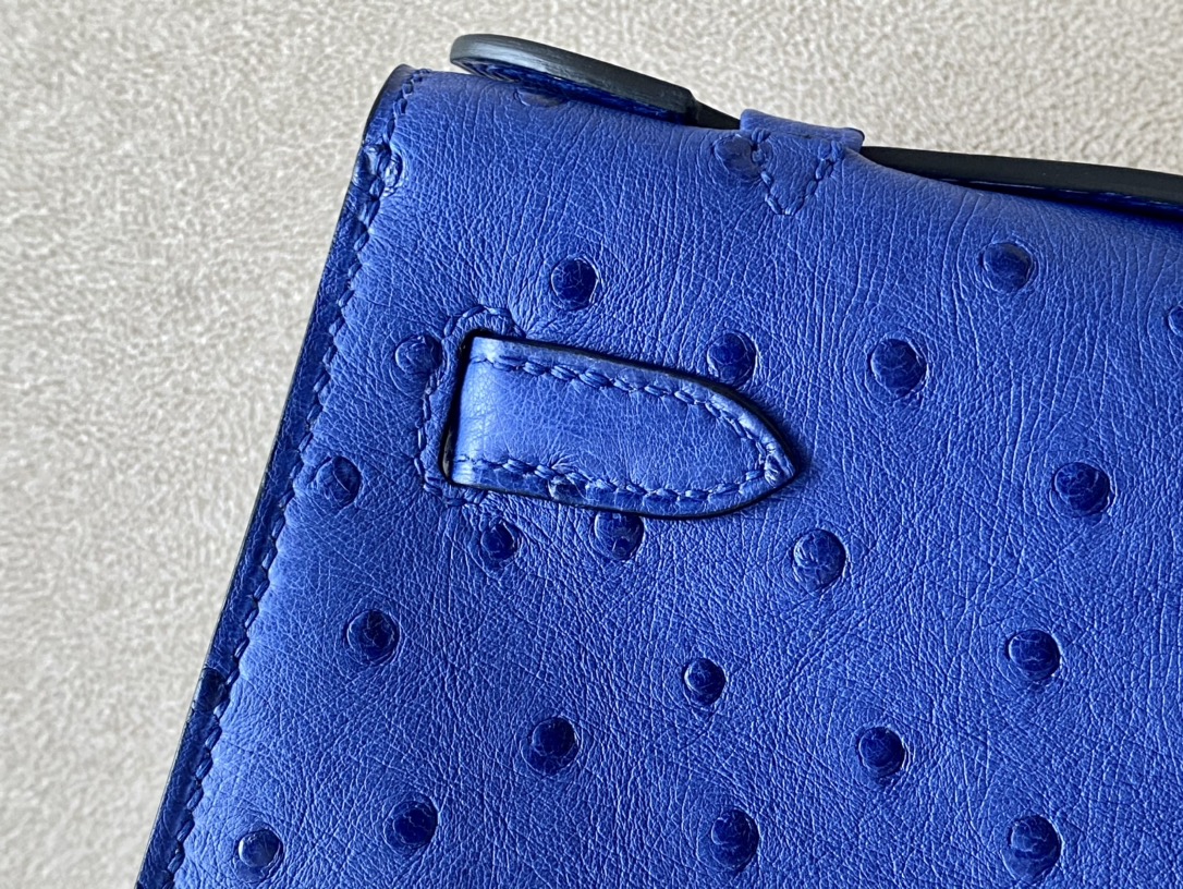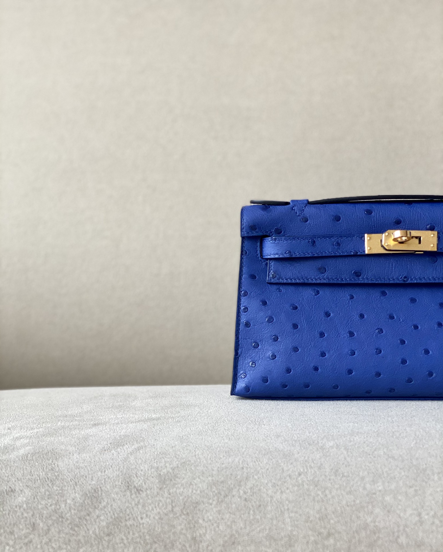 Kelly Pochette Ostrich Bleu Lin (J7) Gold Hardware