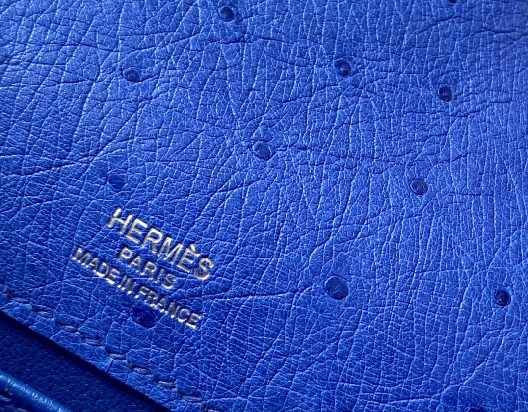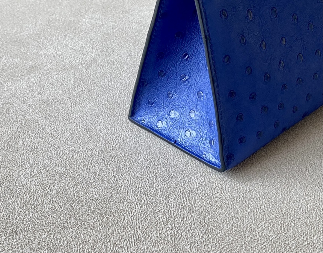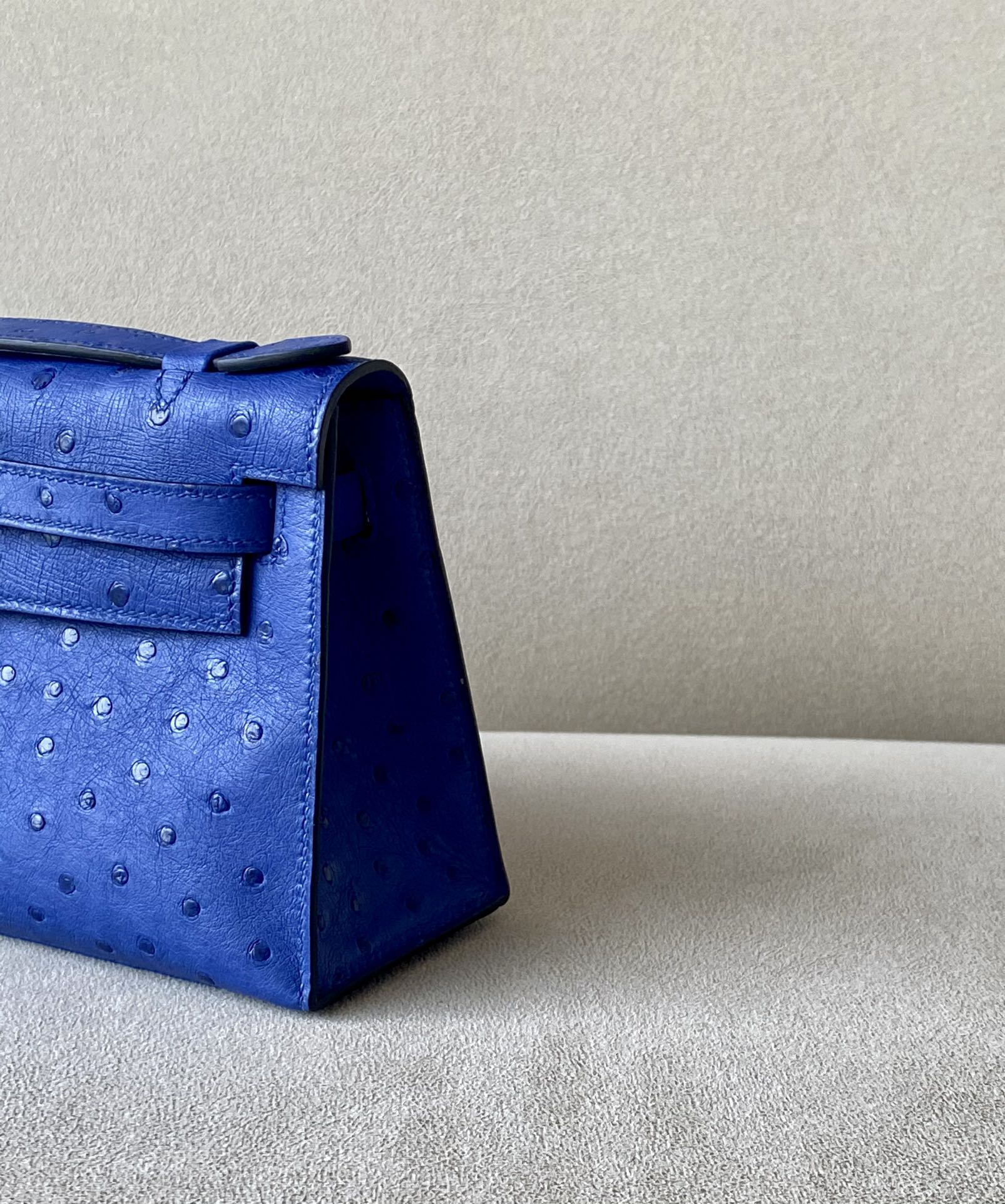 Kelly Pochette Ostrich Bleu Lin (J7) Gold Hardware