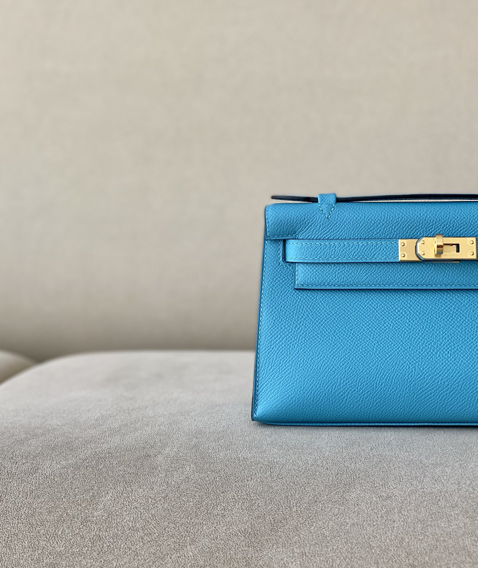 Kelly Pochette Epsom Blue du Nord (P3) Palladium Hardware