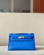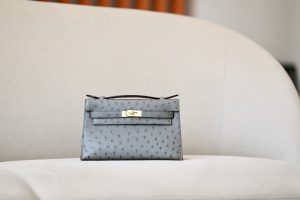 Kelly Pochette Ostrich Gris Tourterelle (81) Gold Hardware
