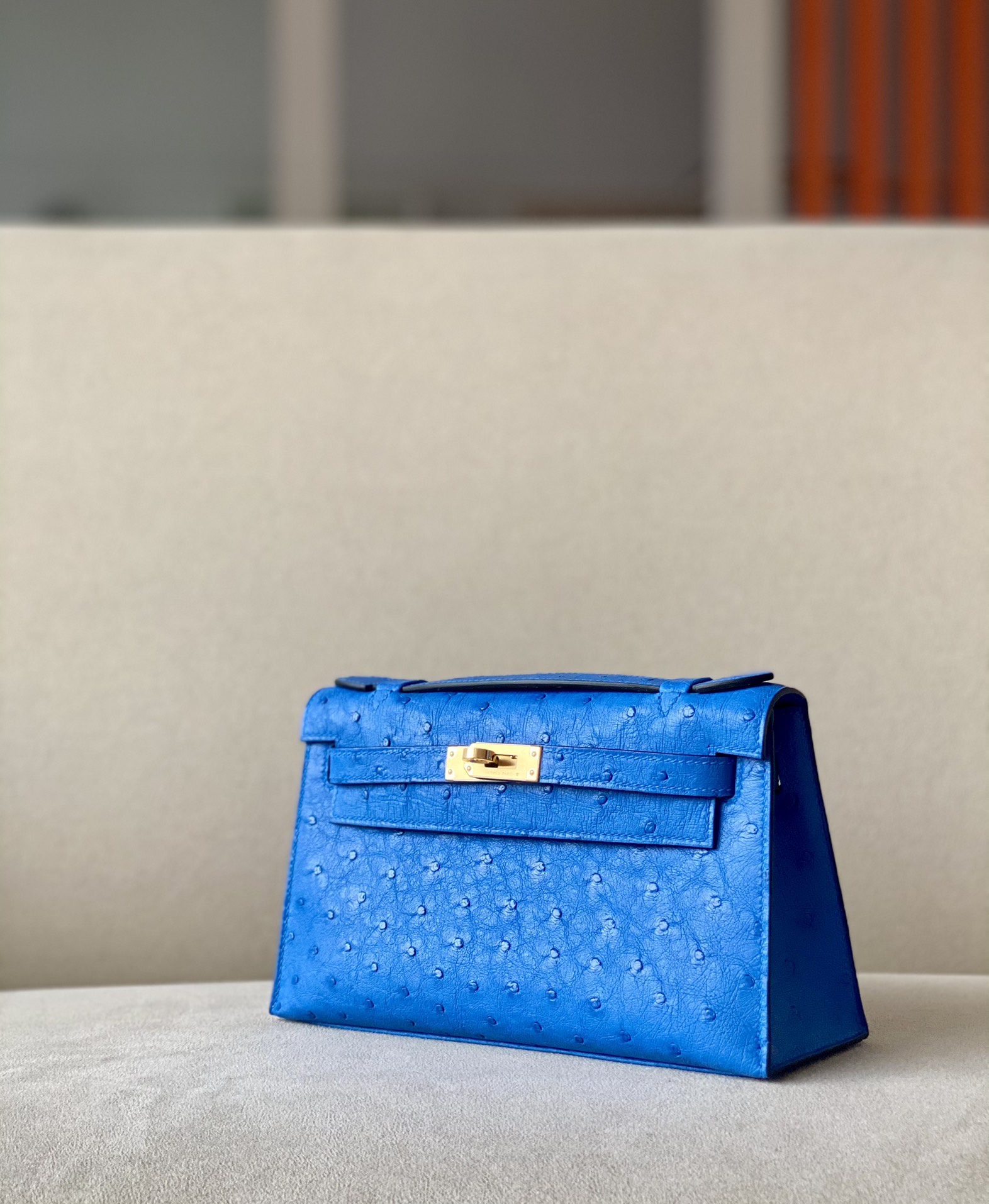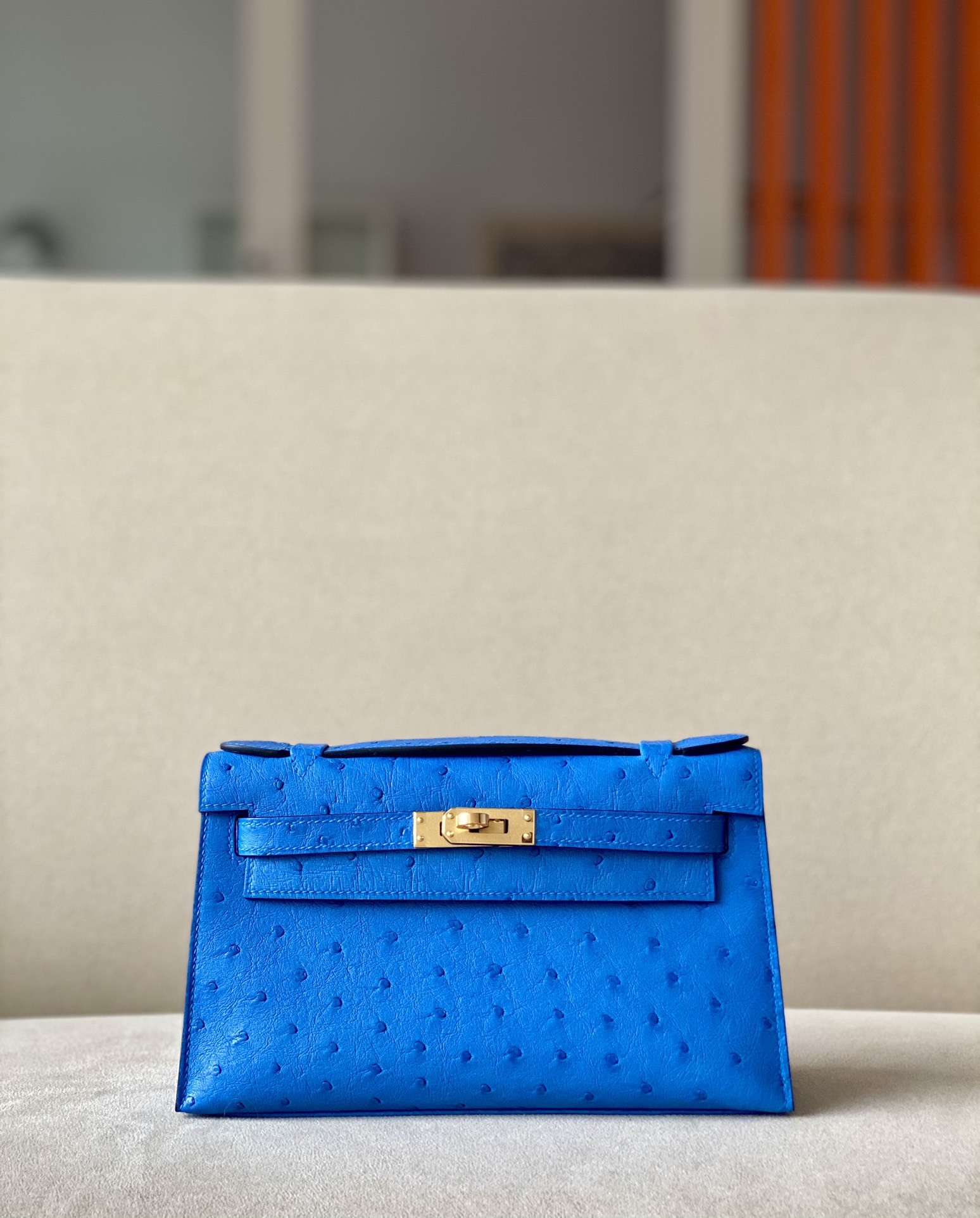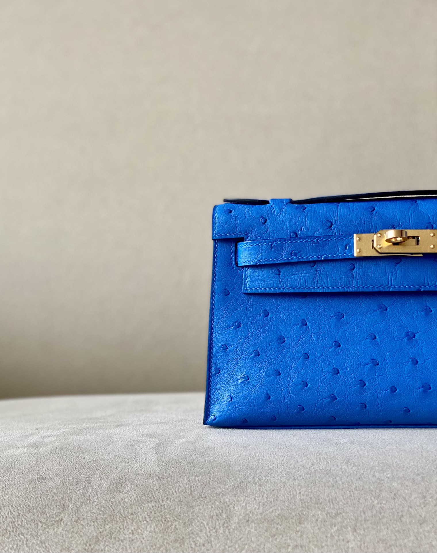 Kelly Pochette Ostrich Gris Asphalte (M8) Gold Hardware