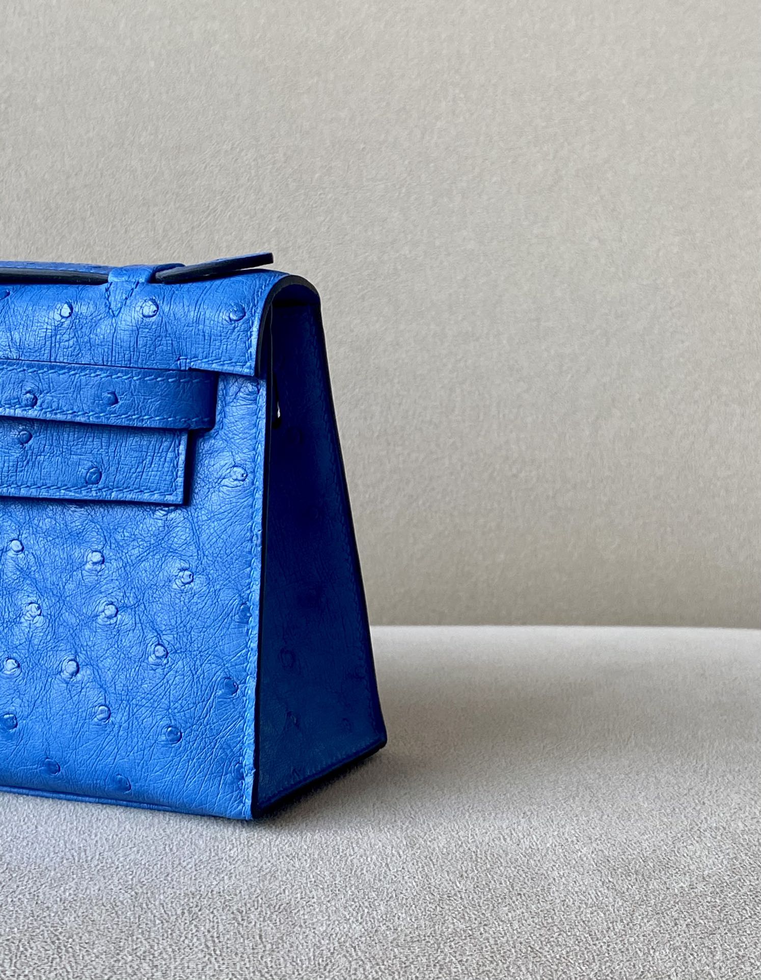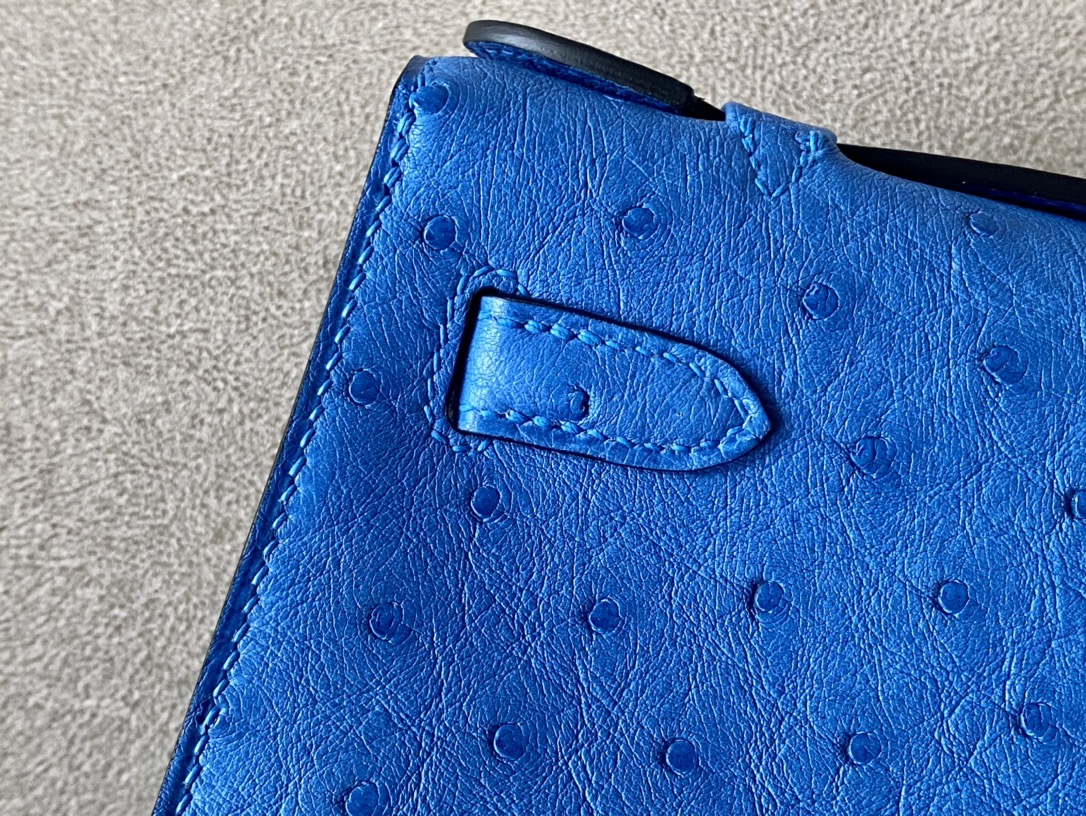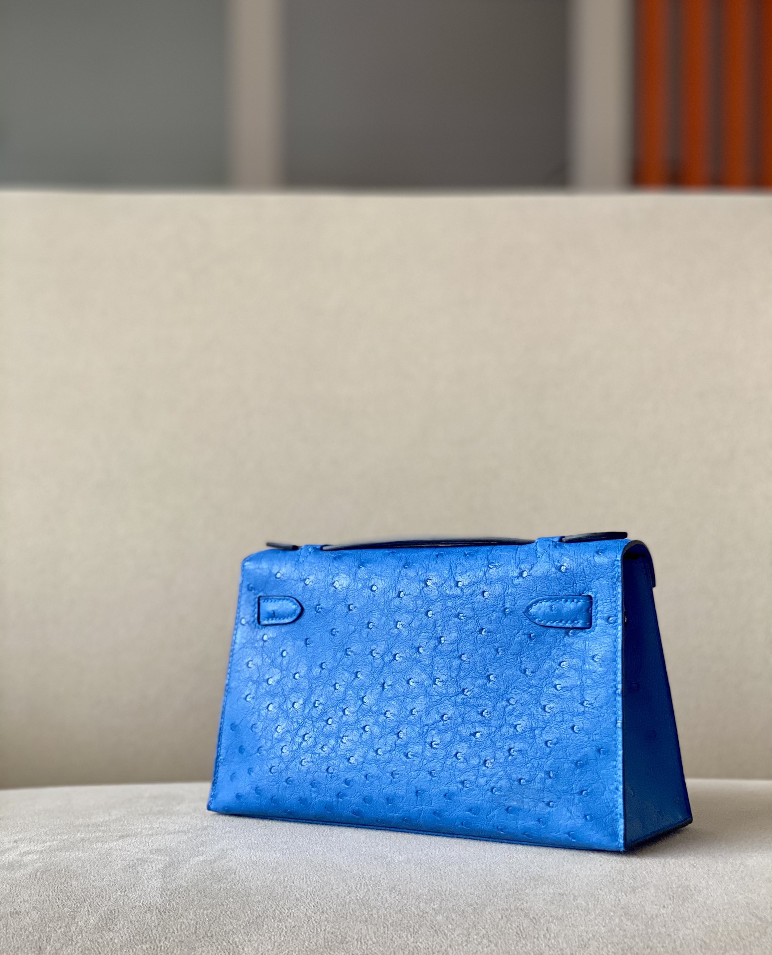 Kelly Pochette Ostrich Gris Asphalte (M8) Gold Hardware