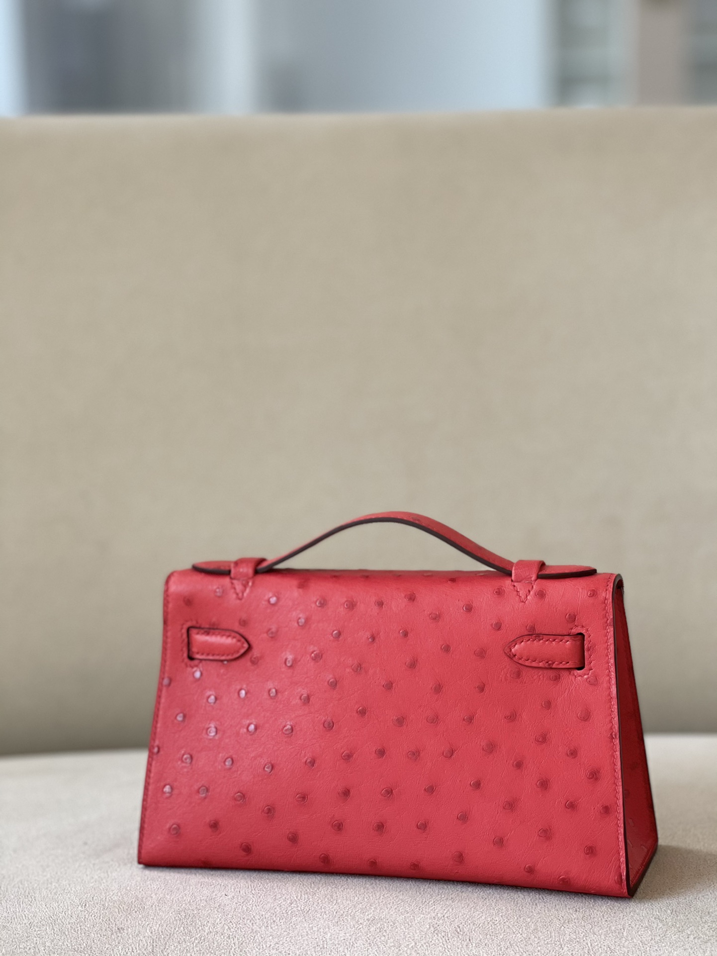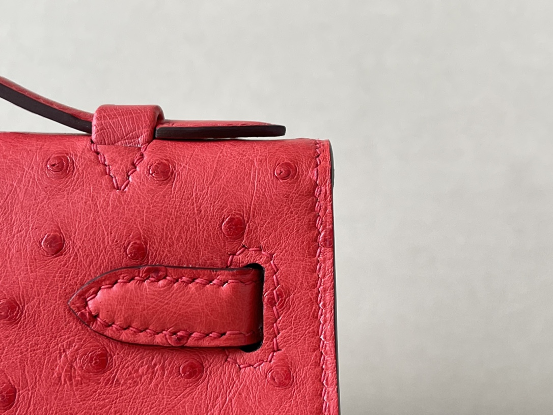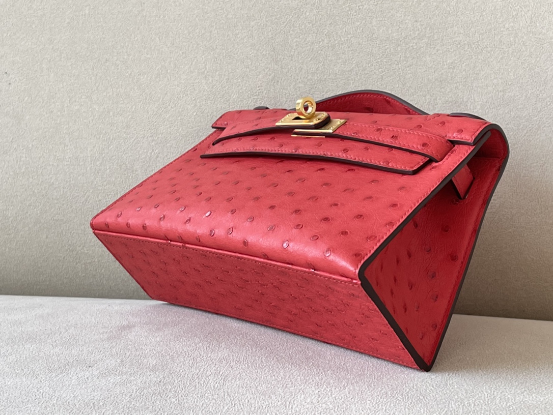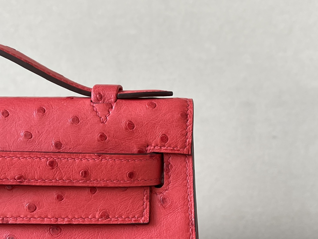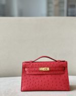 Kelly Pochette Ostrich Braise (95) Palladium Hardware